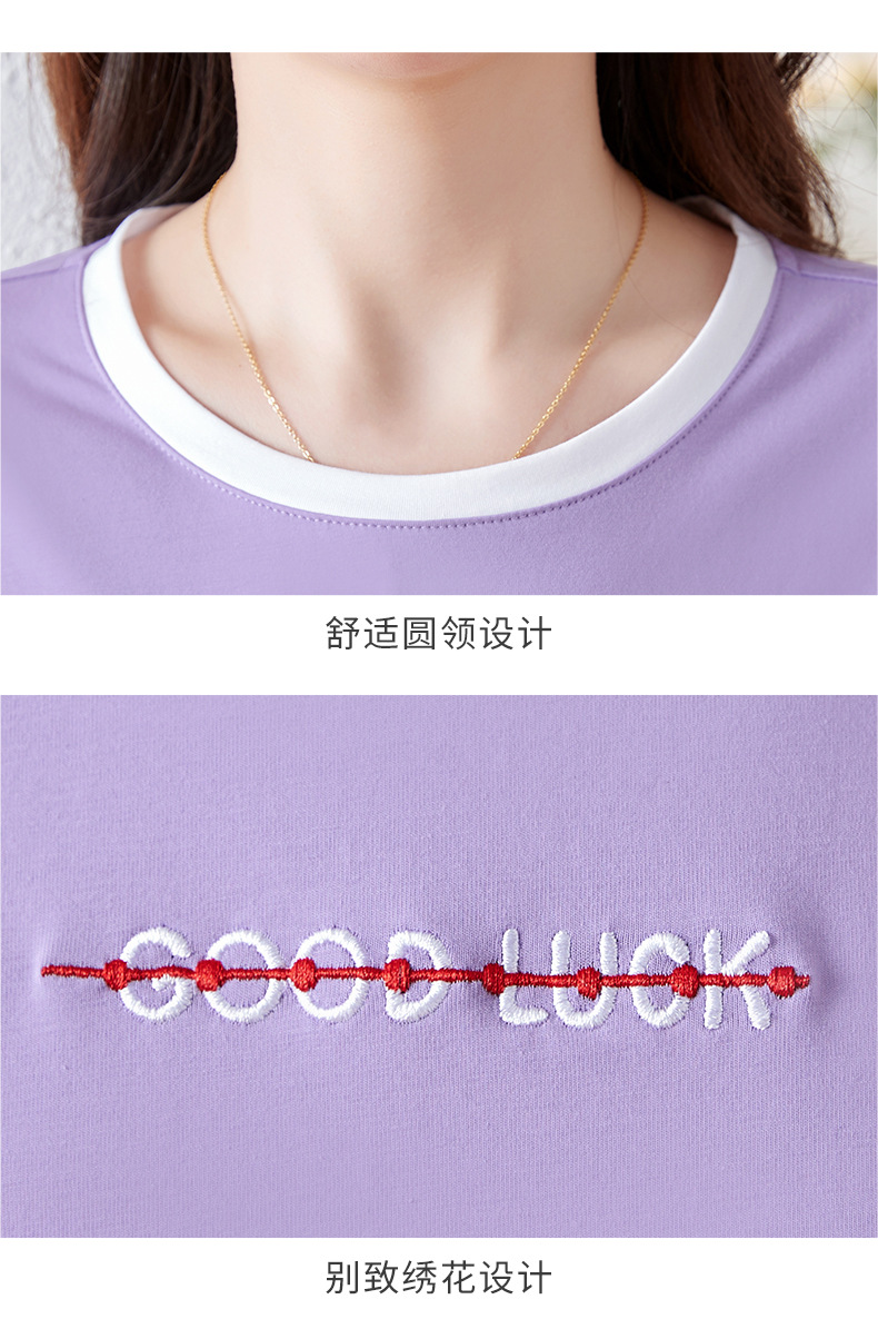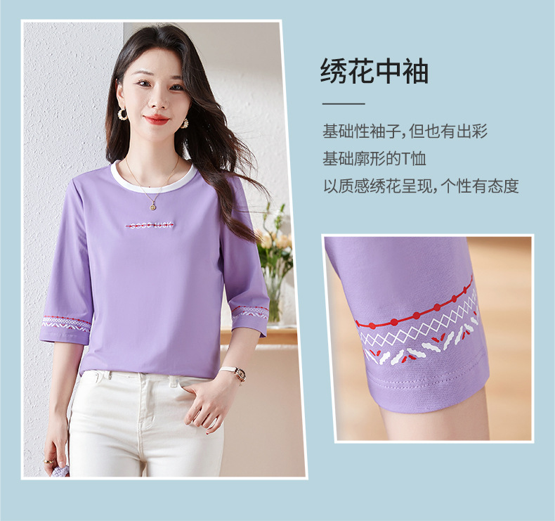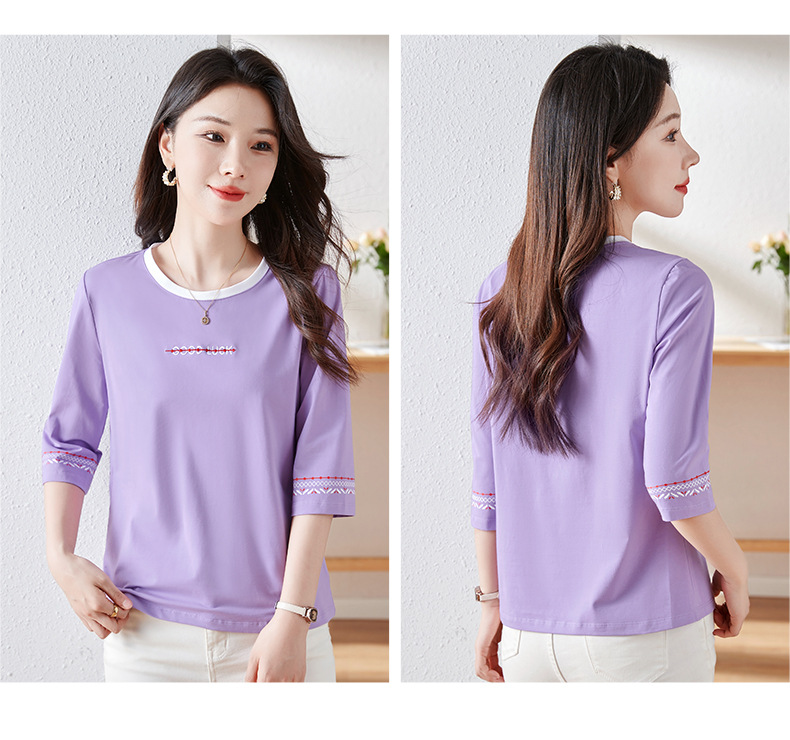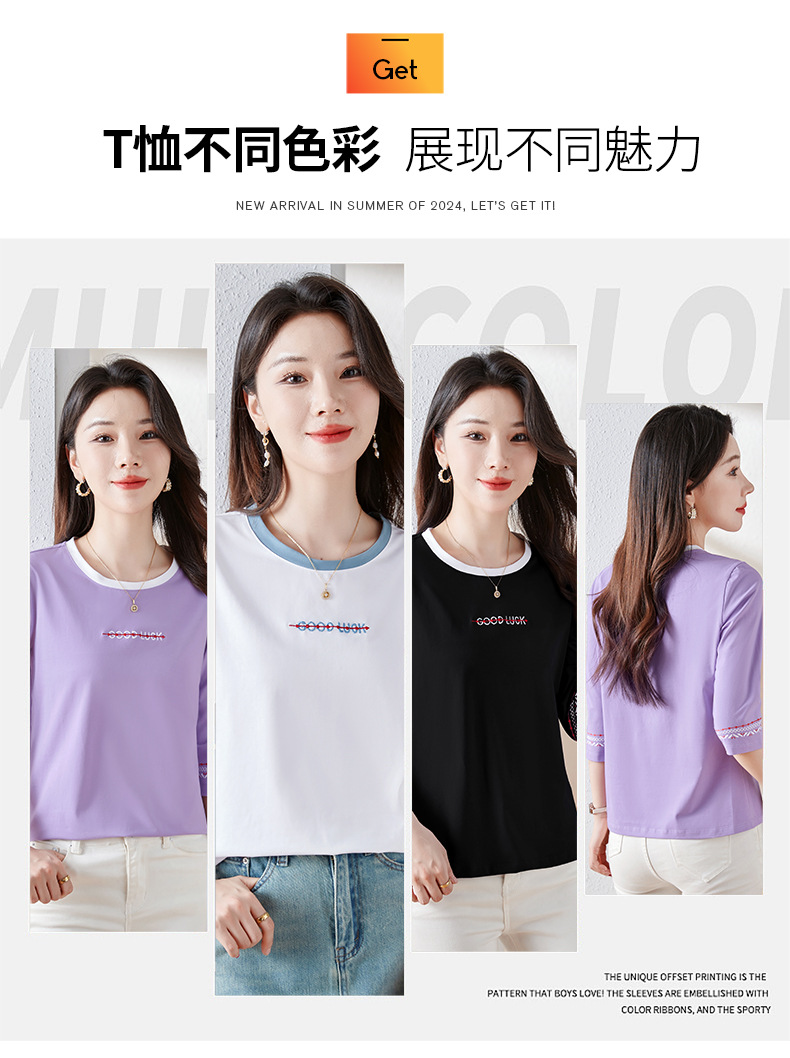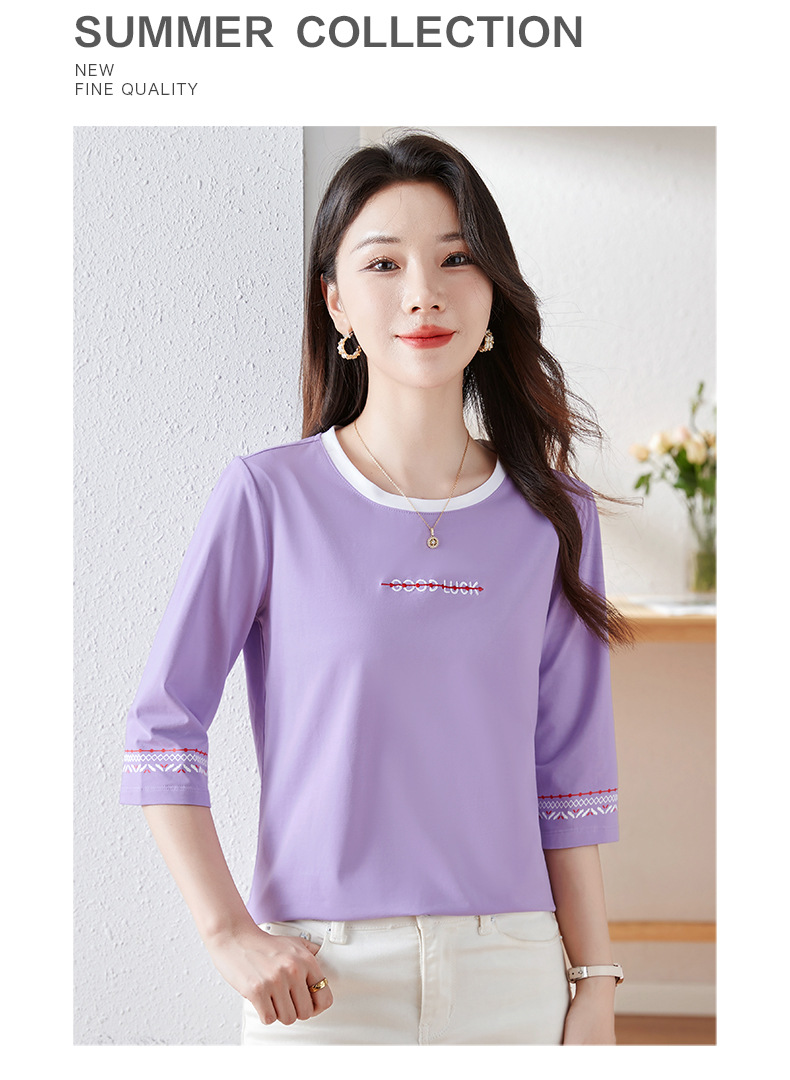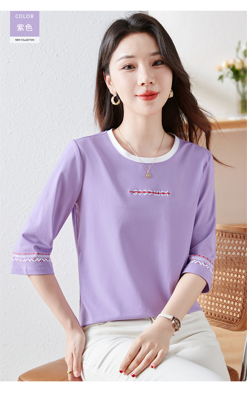 雀说纯棉紫色七分袖t恤女新款爆款宽松中袖五分袖上衣体恤AL20142
