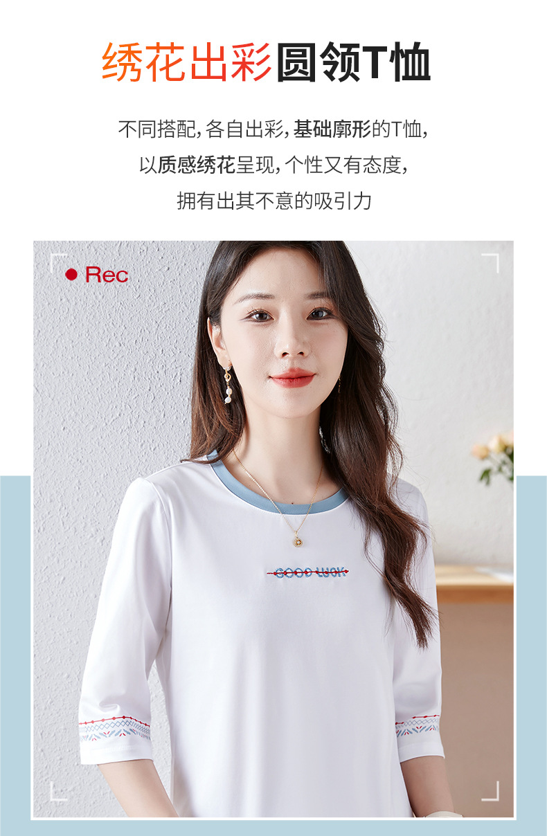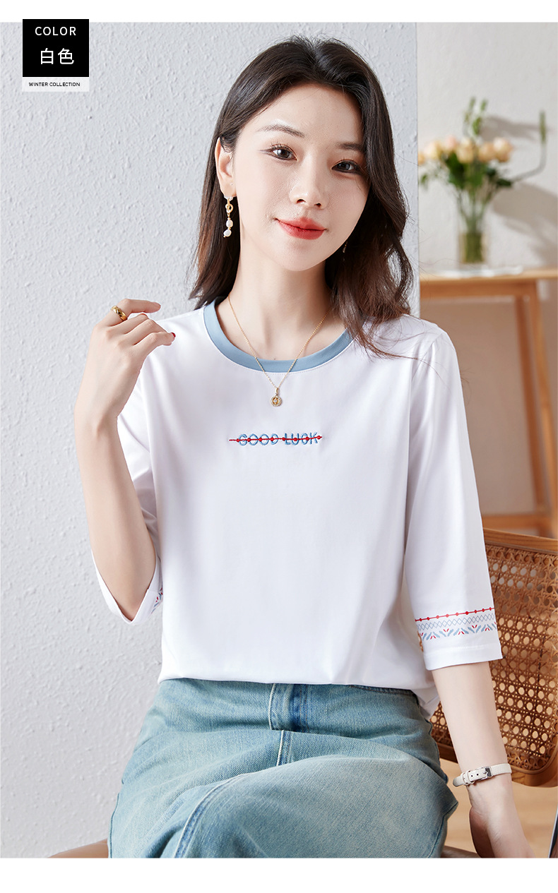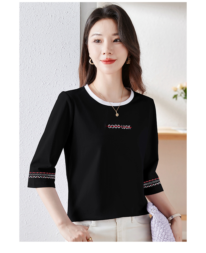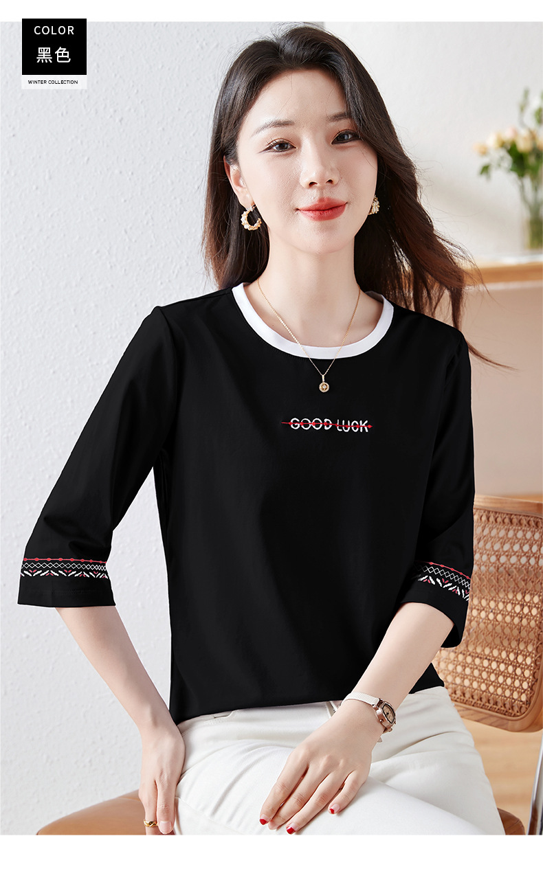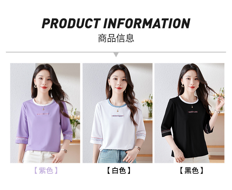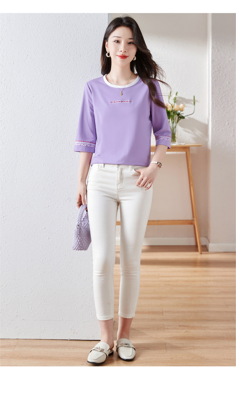 雀说纯棉紫色七分袖t恤女新款爆款宽松中袖五分袖上衣体恤AL20142