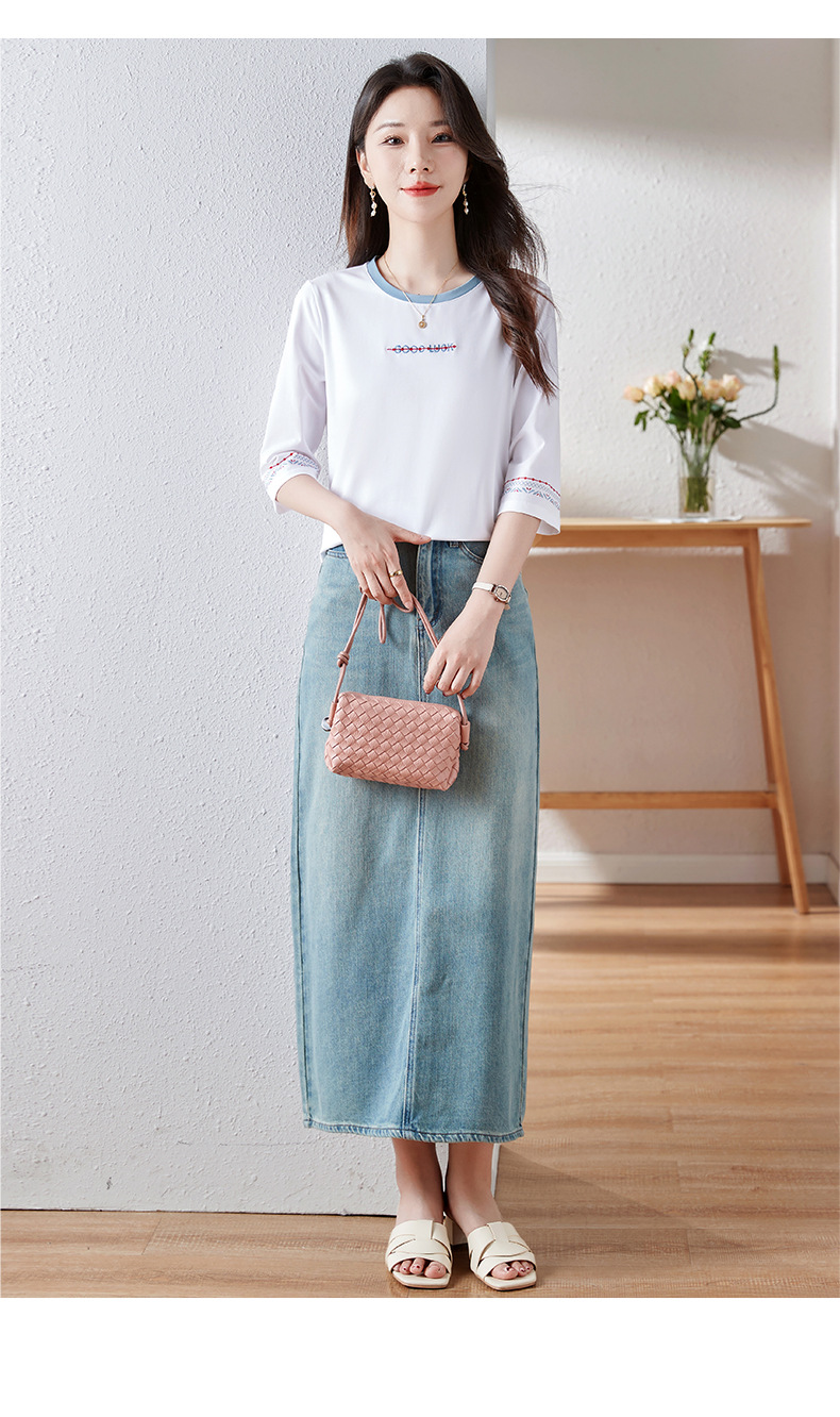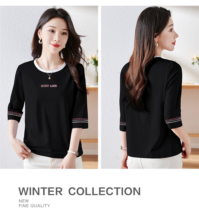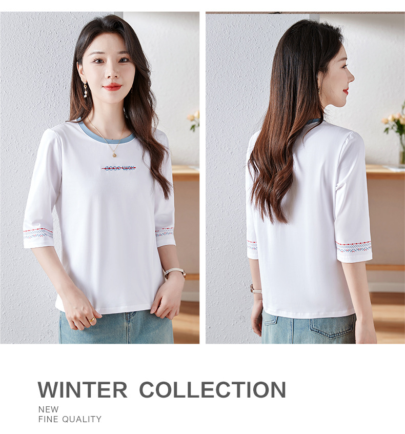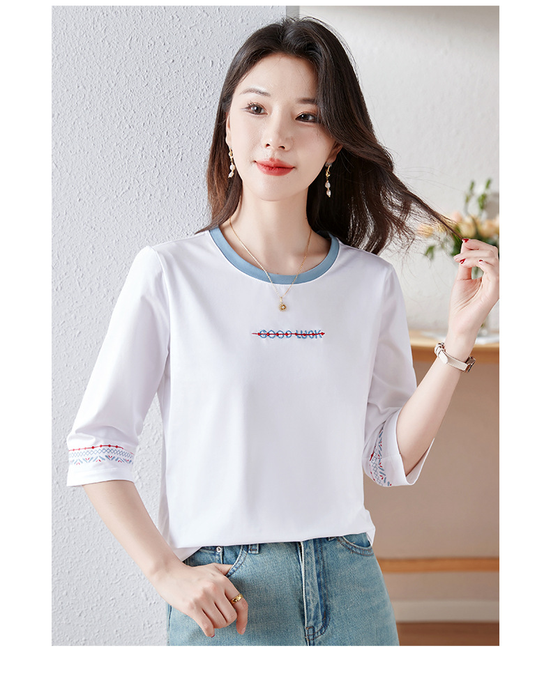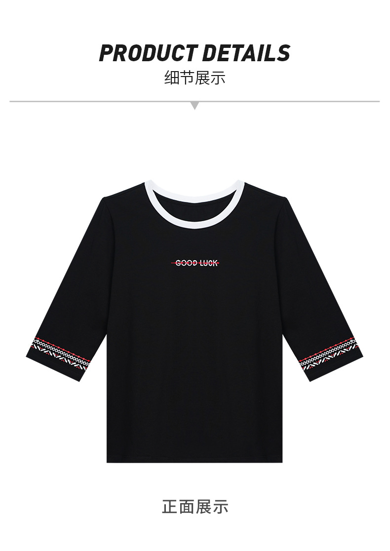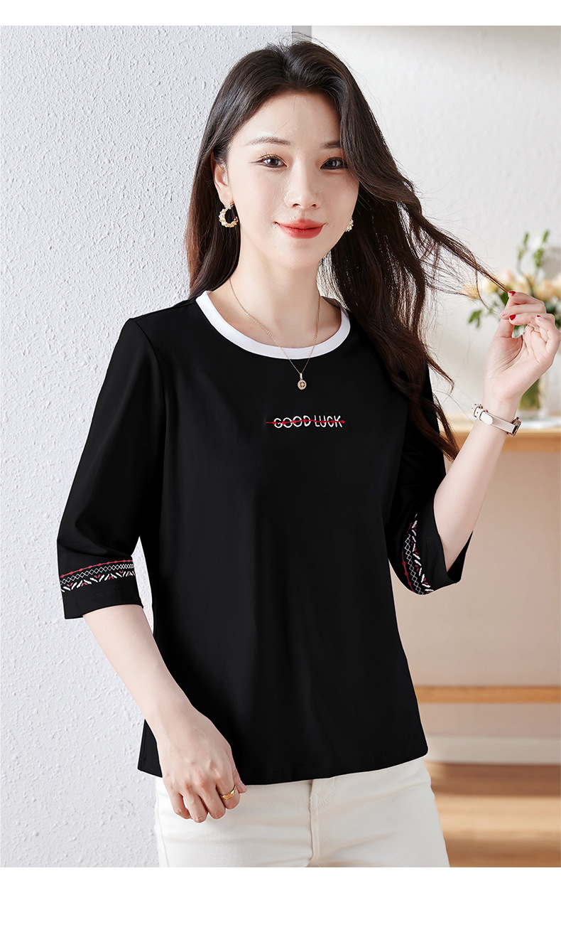 雀说纯棉紫色七分袖t恤女新款爆款宽松中袖五分袖上衣体恤AL20142
