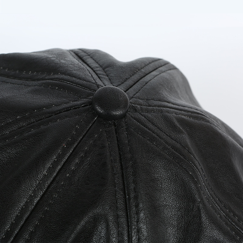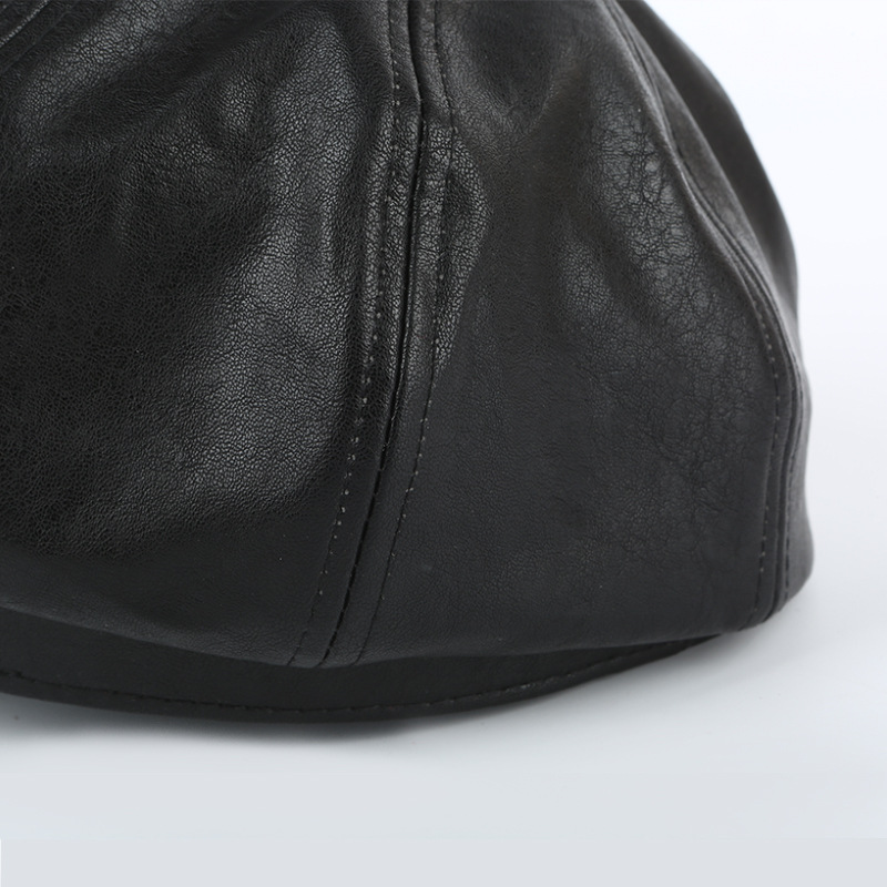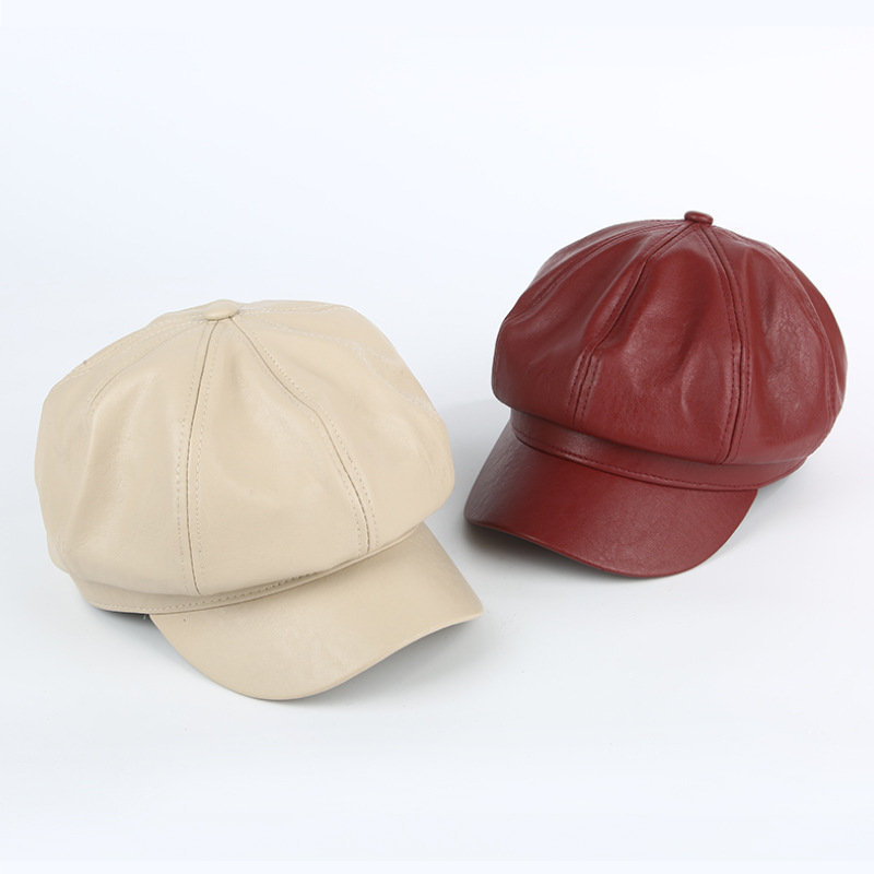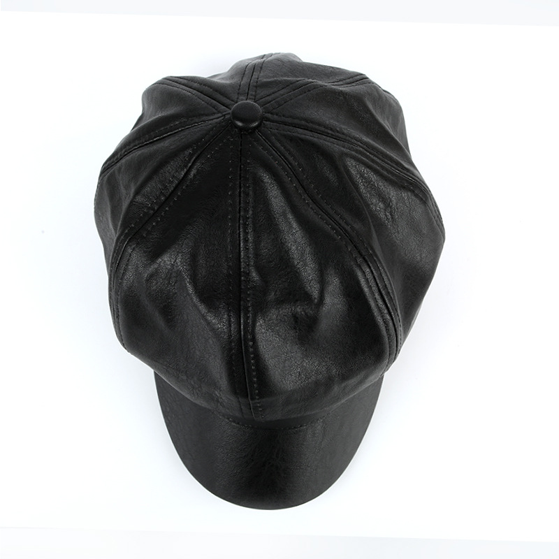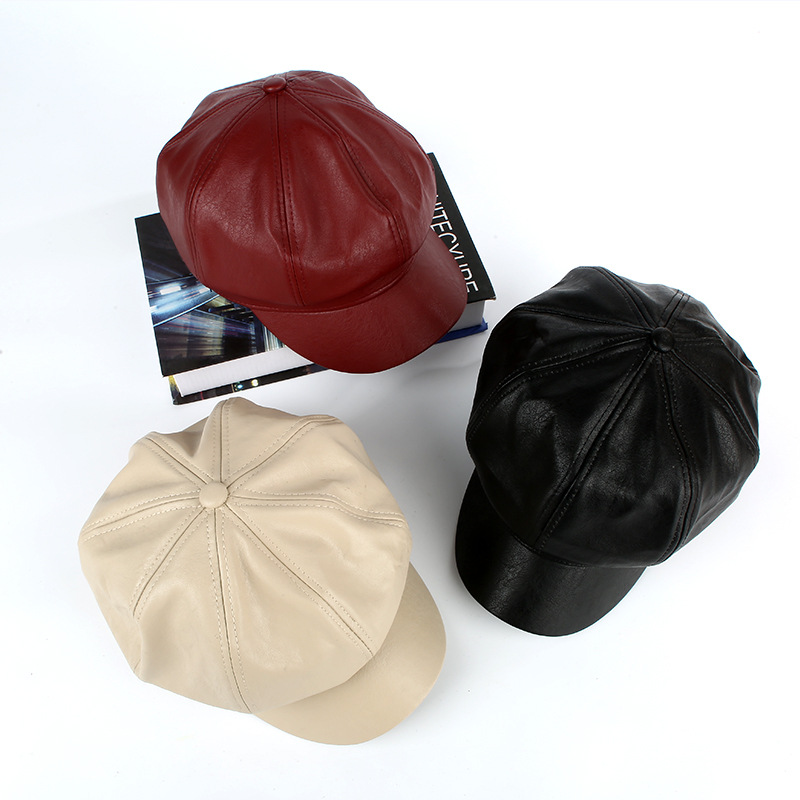 HBX-239秋冬新款韩版八角帽子男女百搭PU升级版八角帽画家帽皮帽