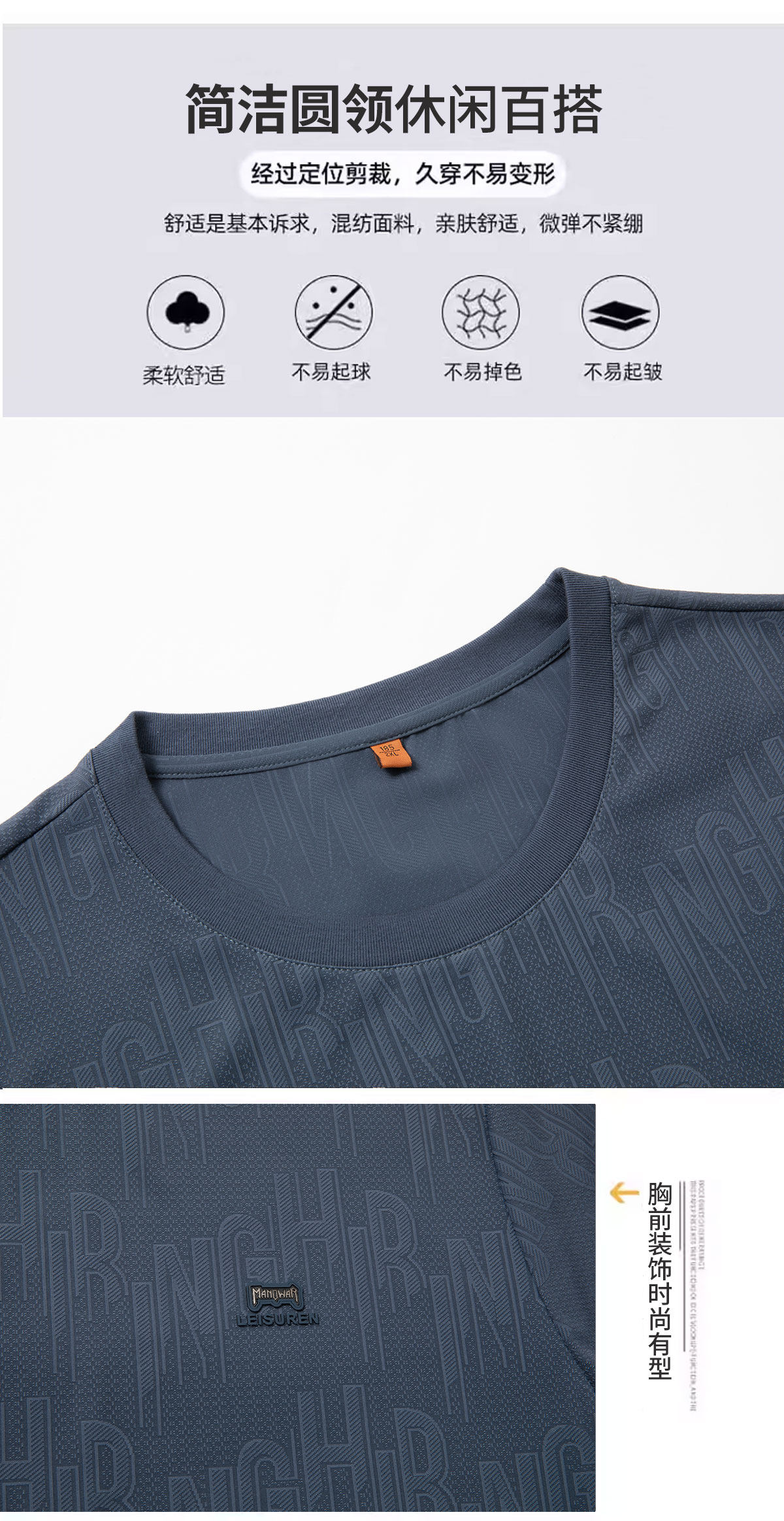 【DPS】大依优型大码男装夏季圆领短袖休闲运动简约透气凉感T恤上衣