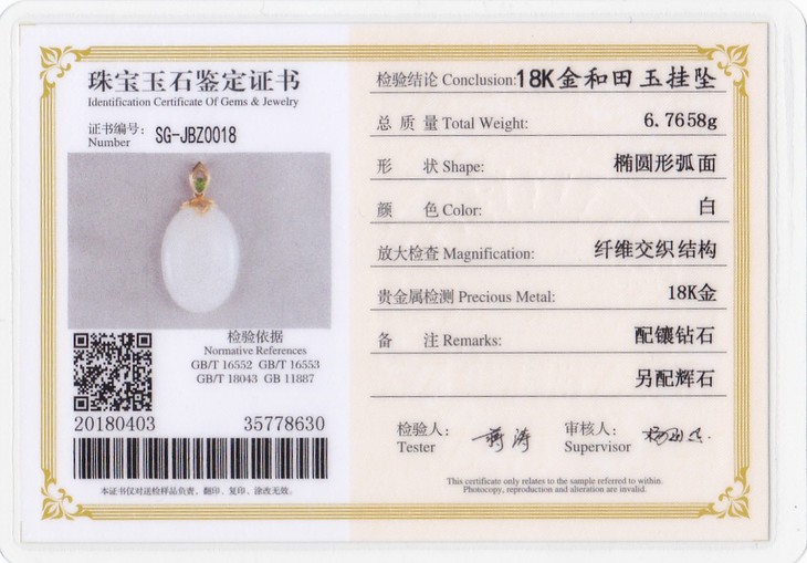 18K玫瑰金和田玉(白玉)镶钻吊坠