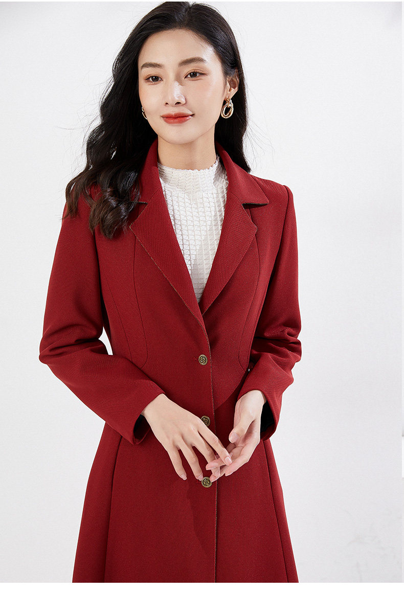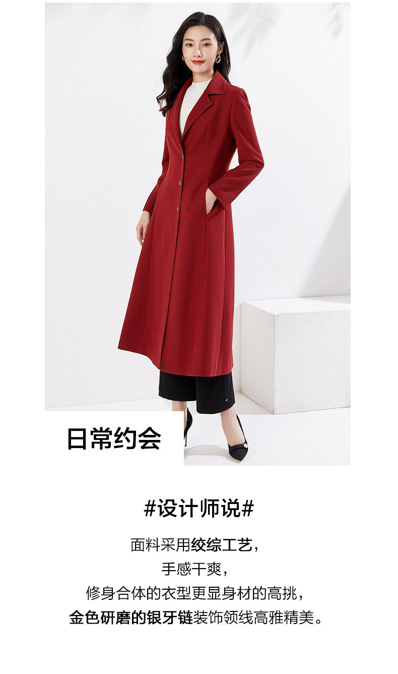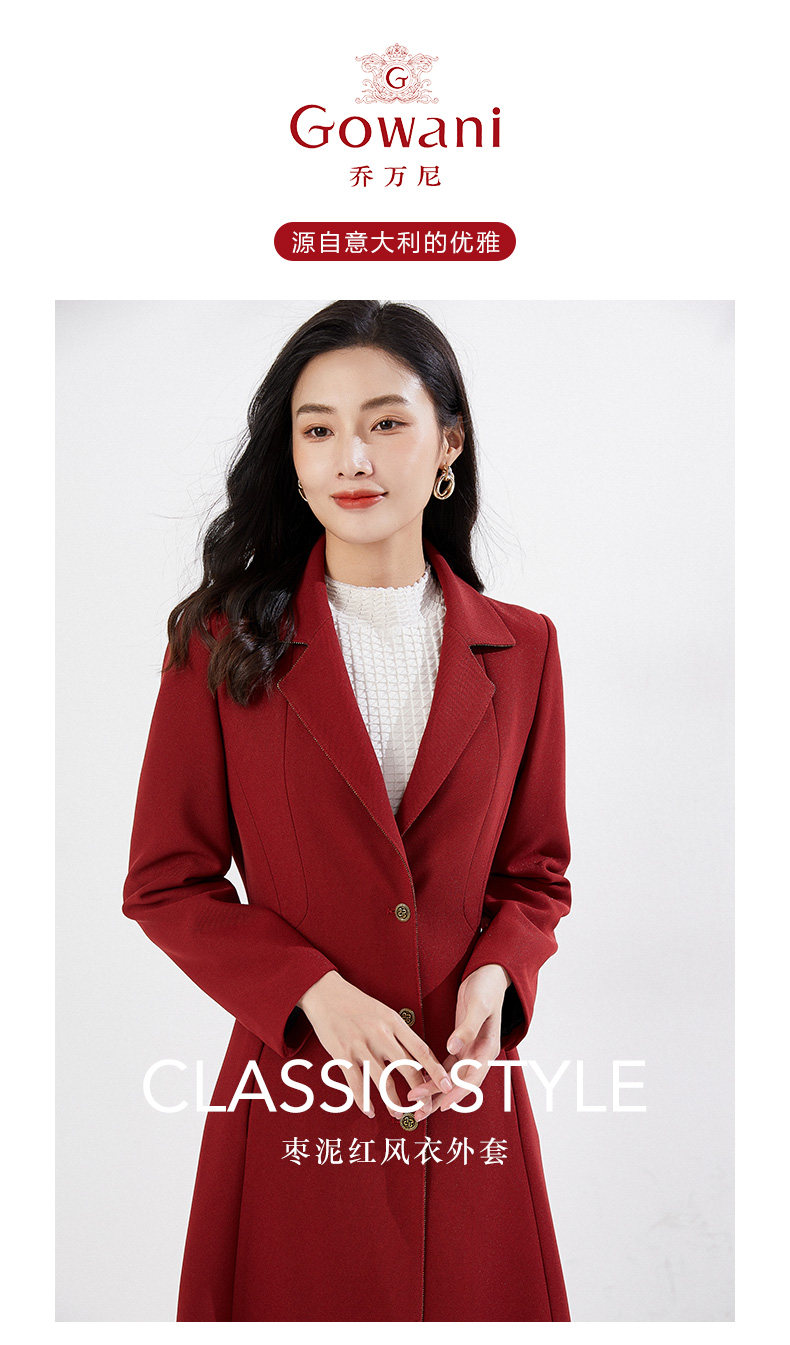 乔万尼新品风衣气质长款红色修身显瘦显白EI3A243