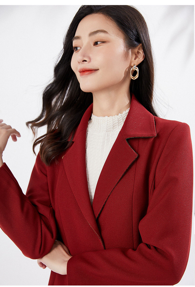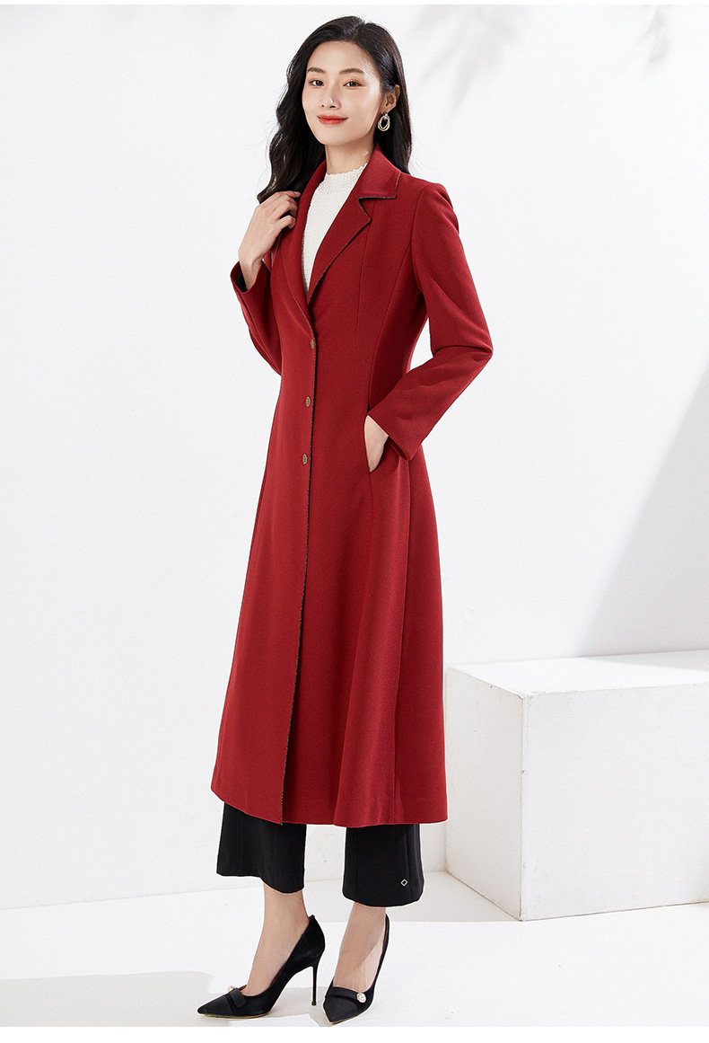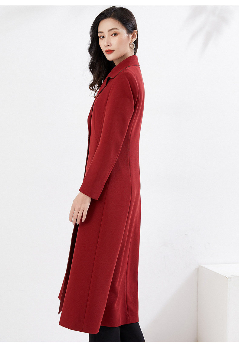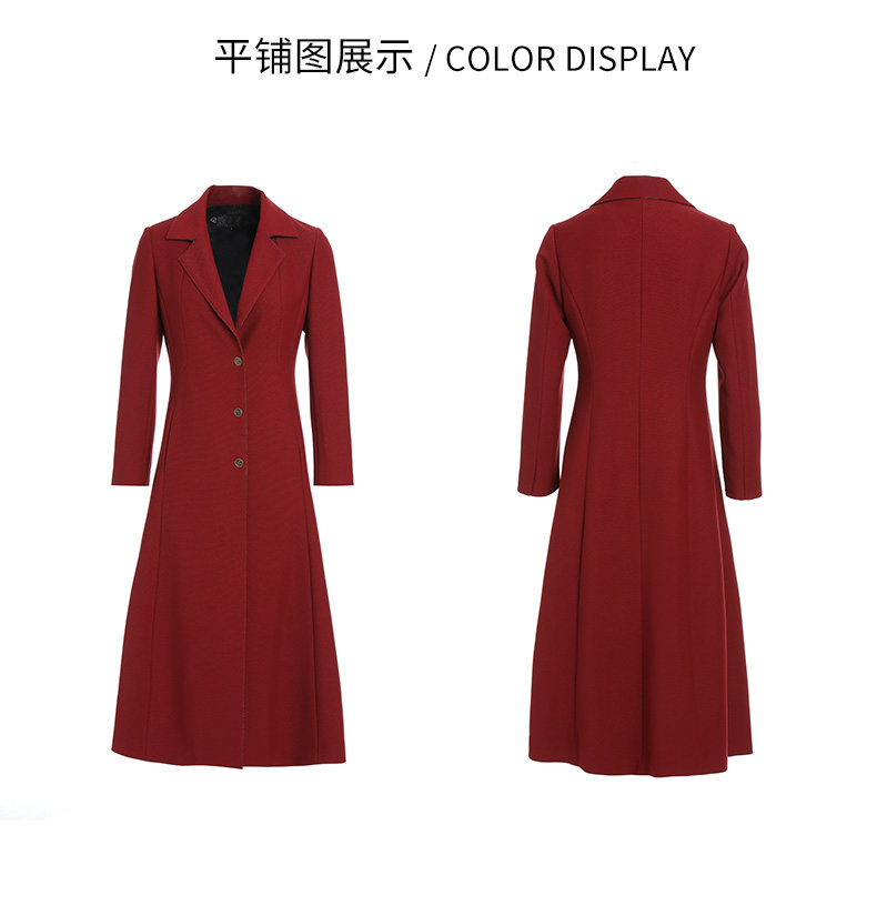 乔万尼新品风衣气质长款红色修身显瘦显白EI3A243