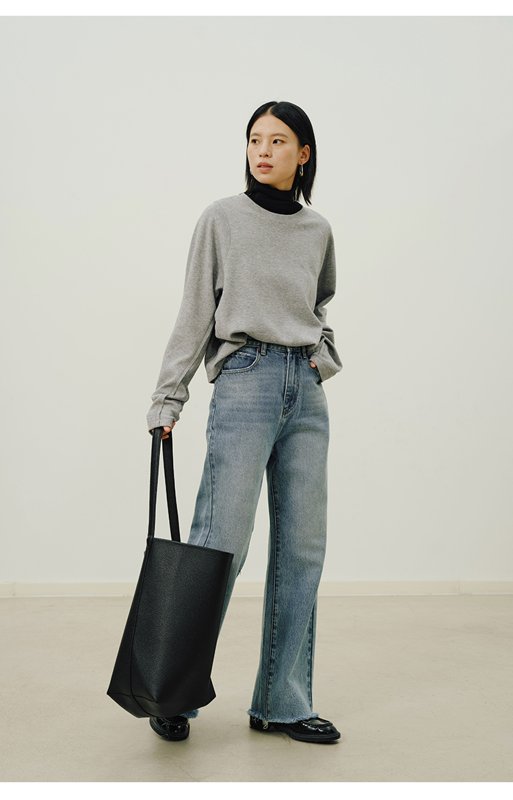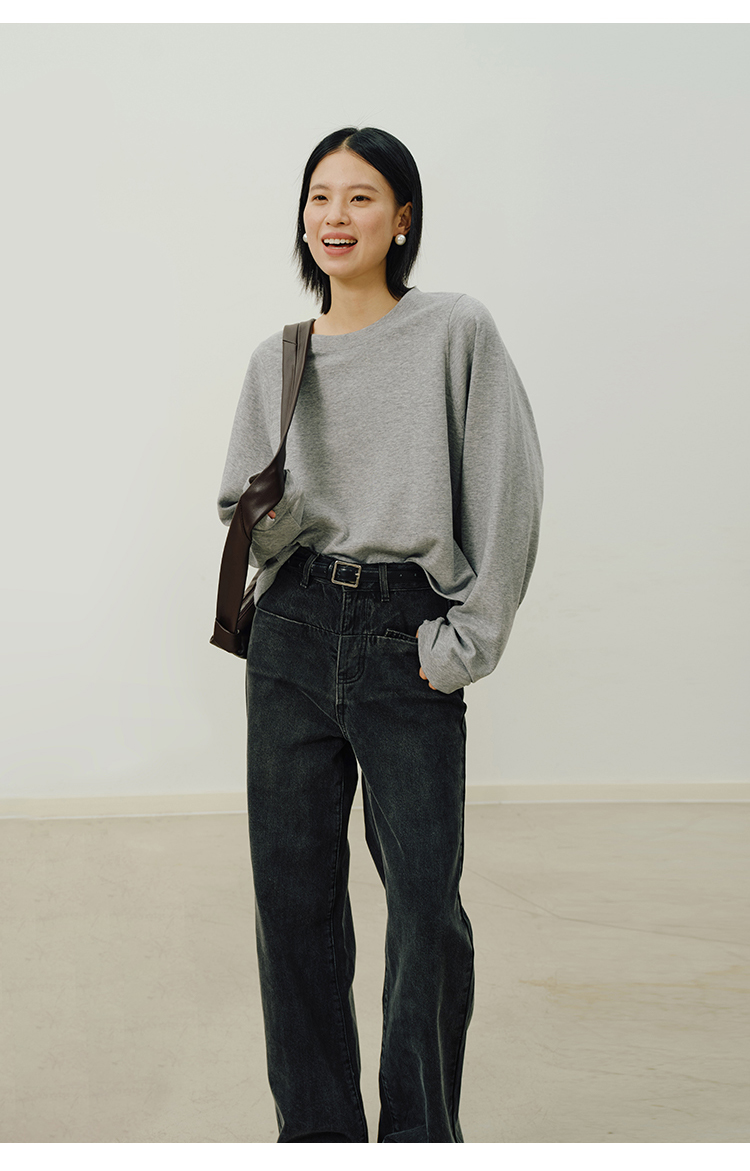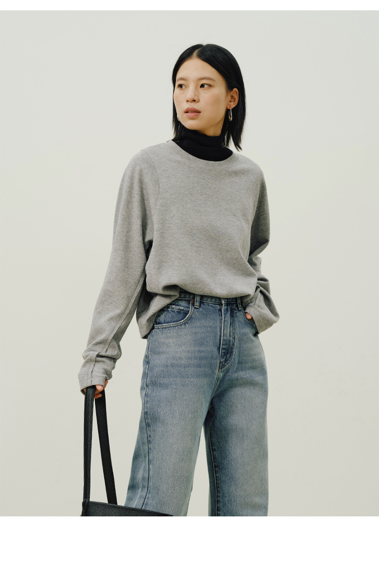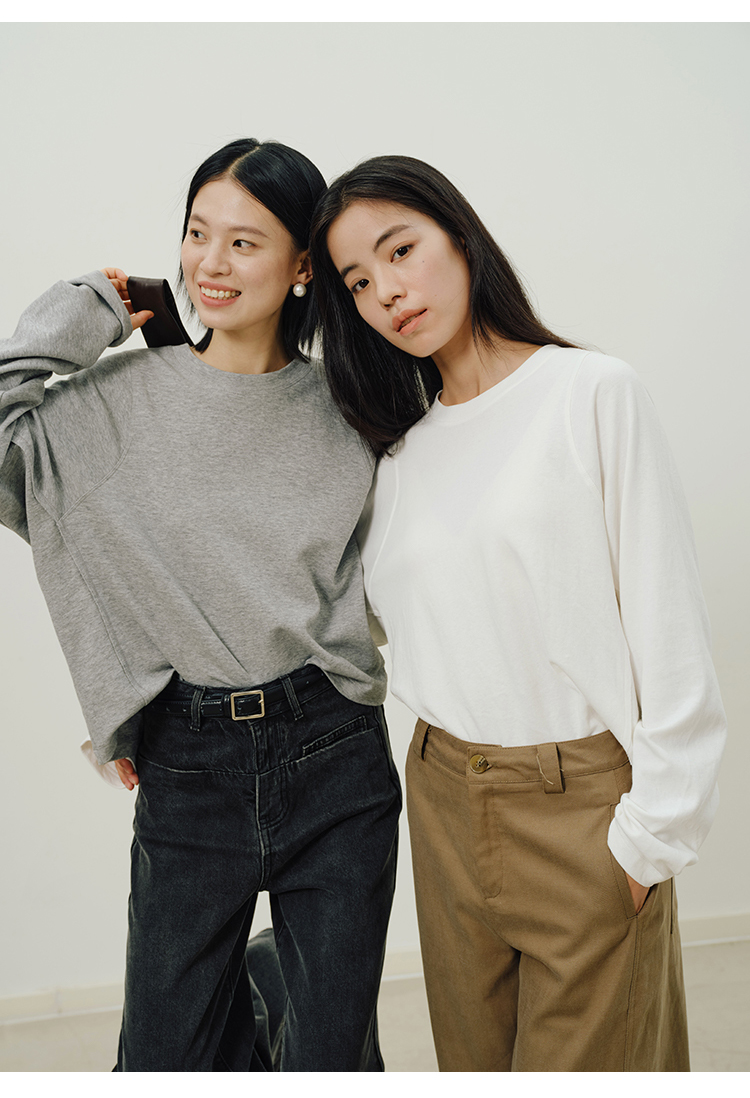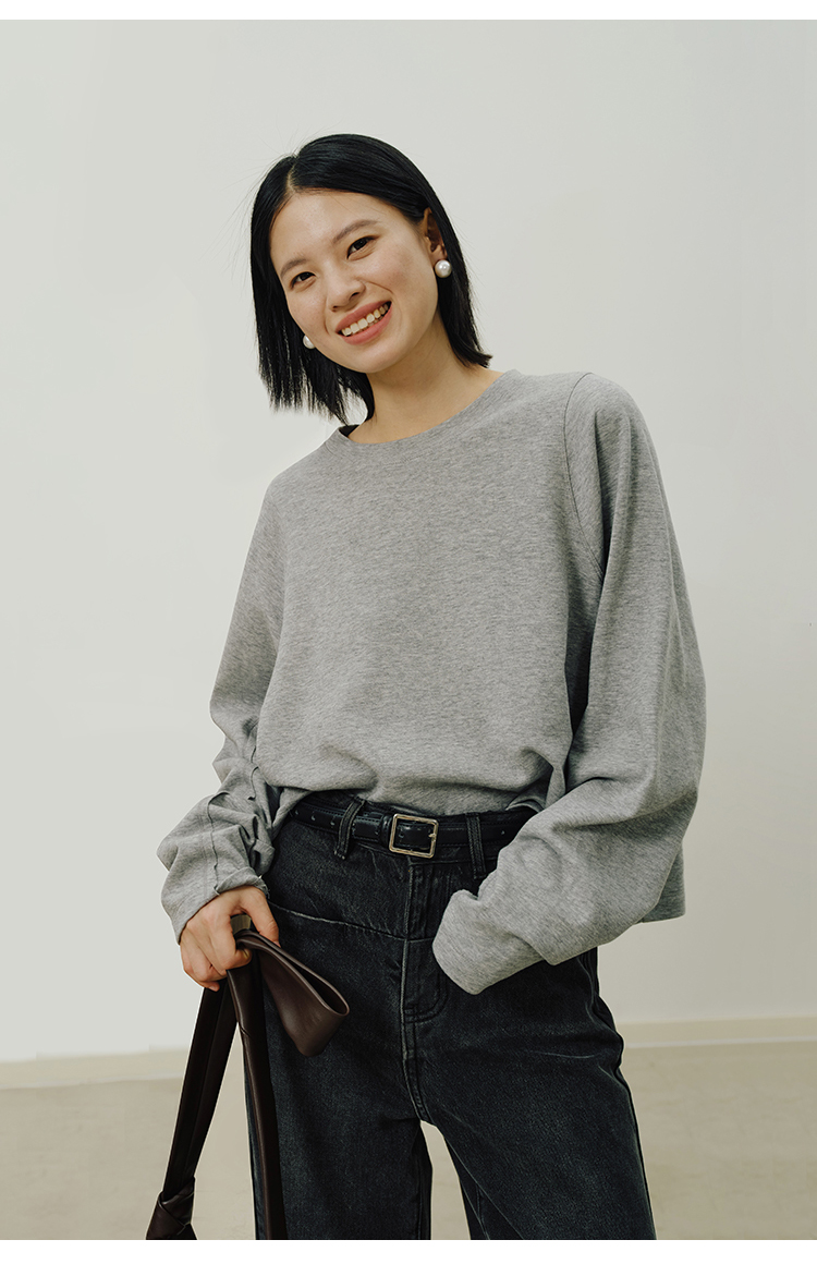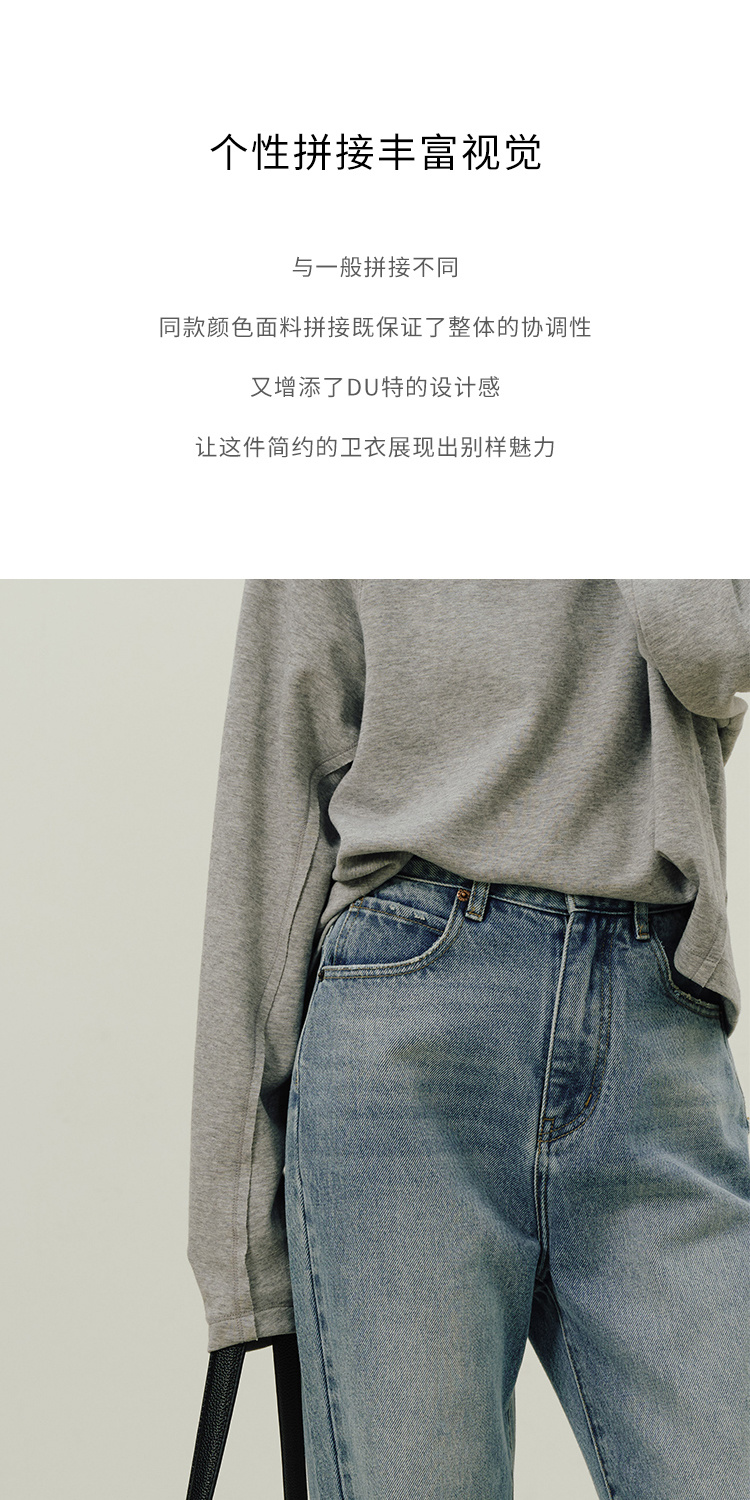 Heydress拼接弹力卫衣女秋季圆领休闲宽松简约松弛感百搭短款上衣