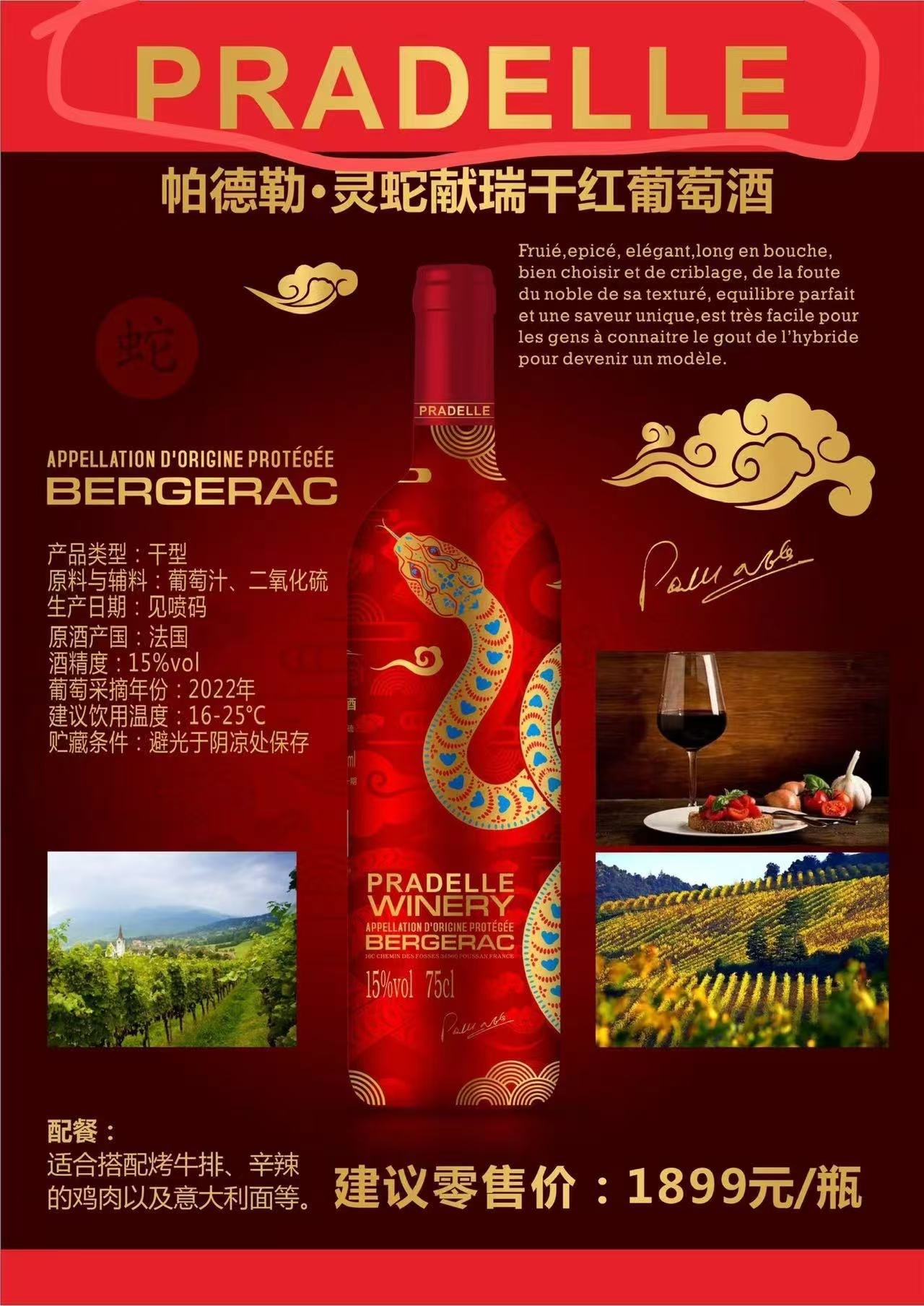 【帕德勒·灵蛇献瑞干红葡萄酒】帕德勒酒庄 蛇年纪念版干红葡萄酒 新年礼盒