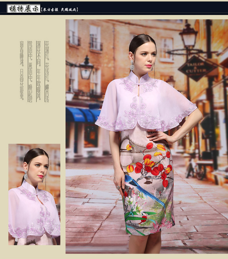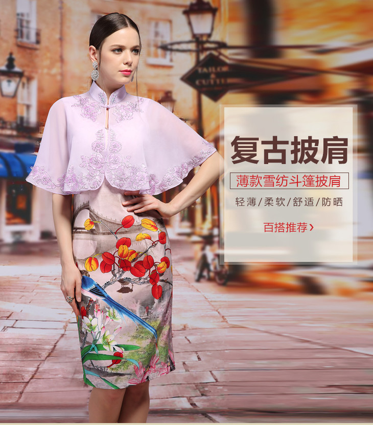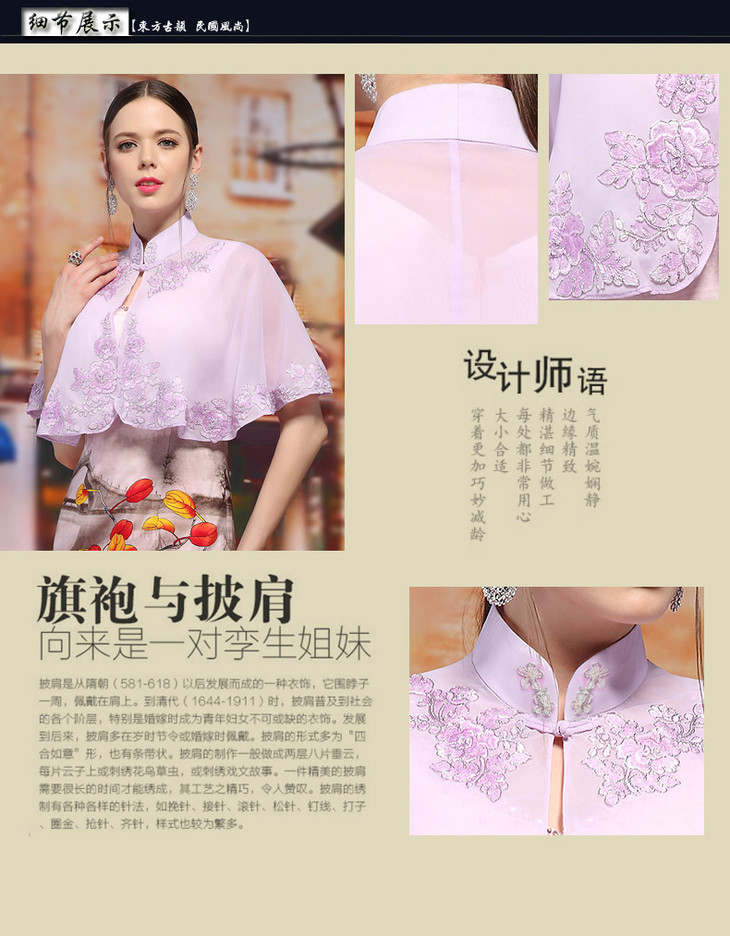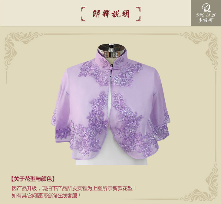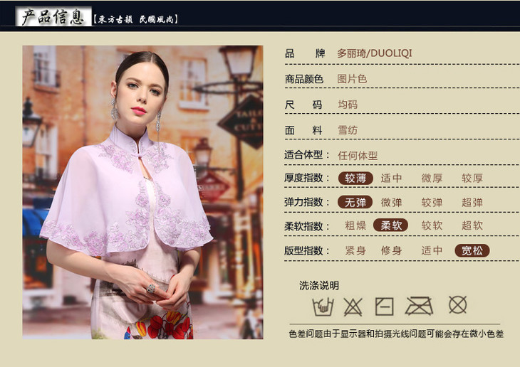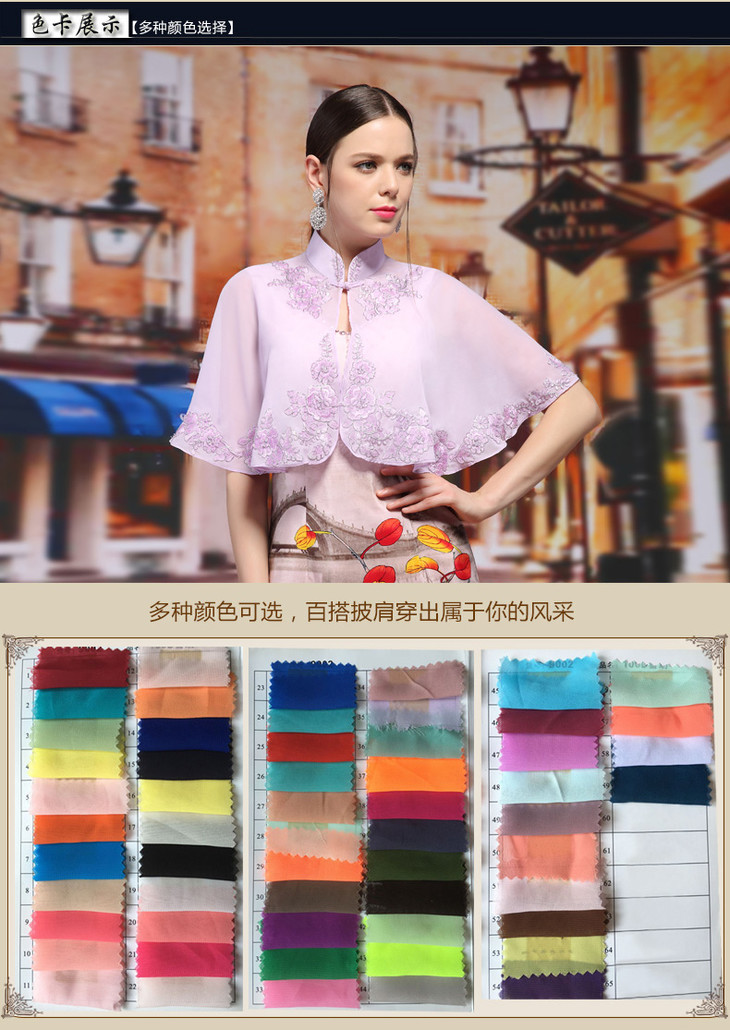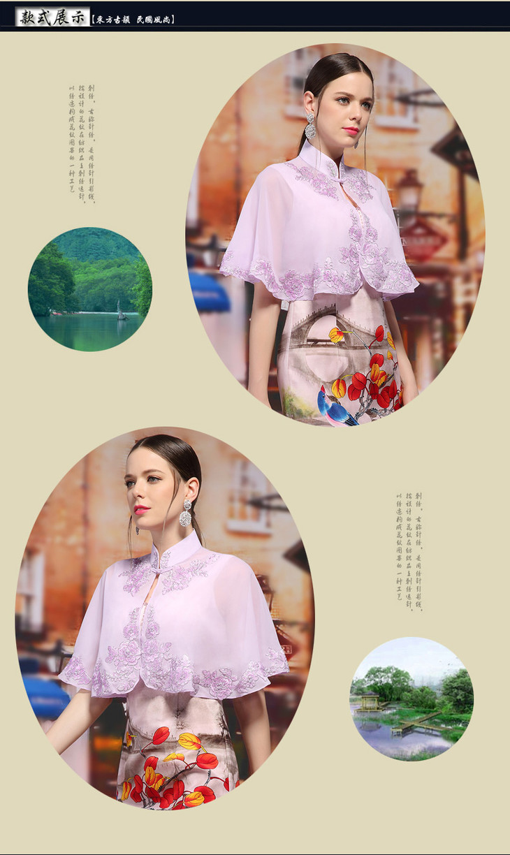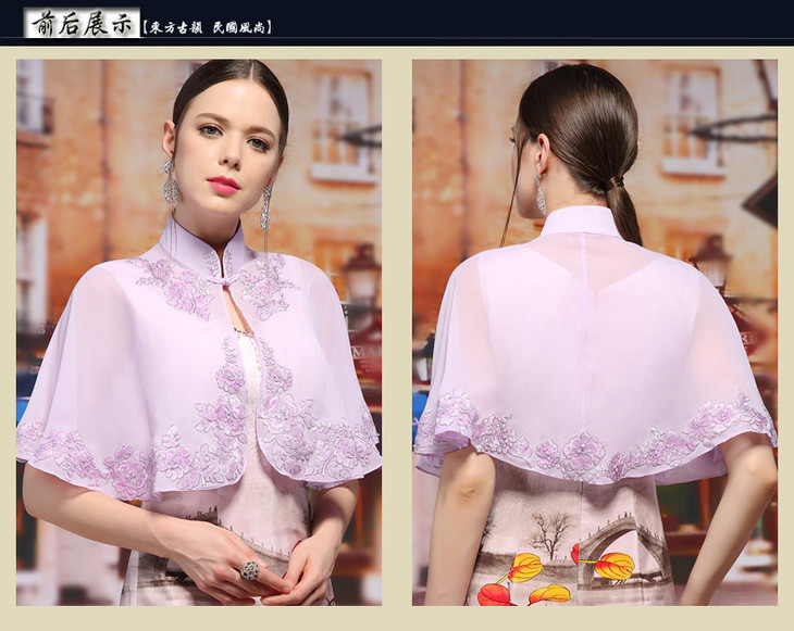 DLQ6177B新款防晒薄款复古雪纺绣花旗袍披肩