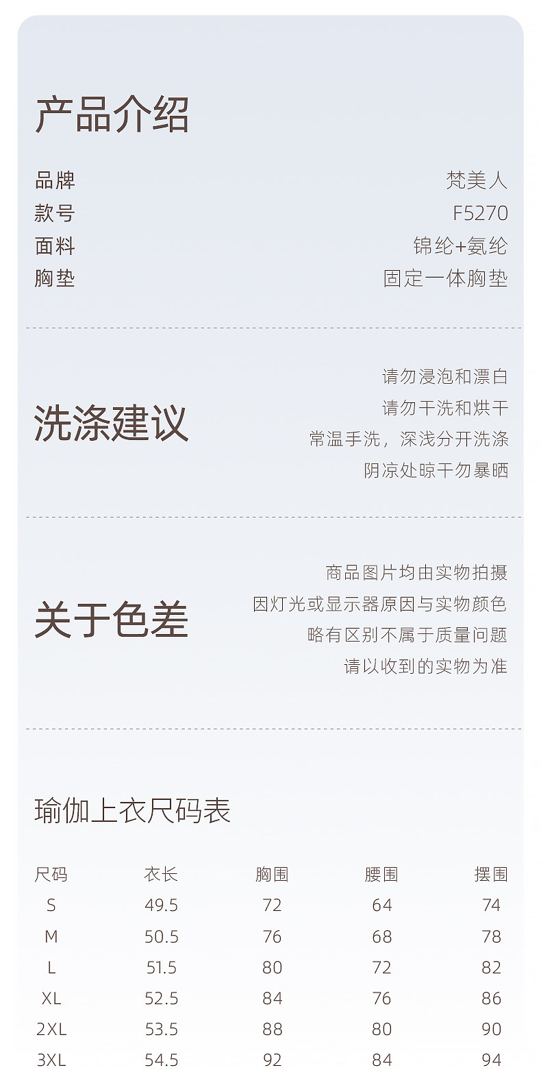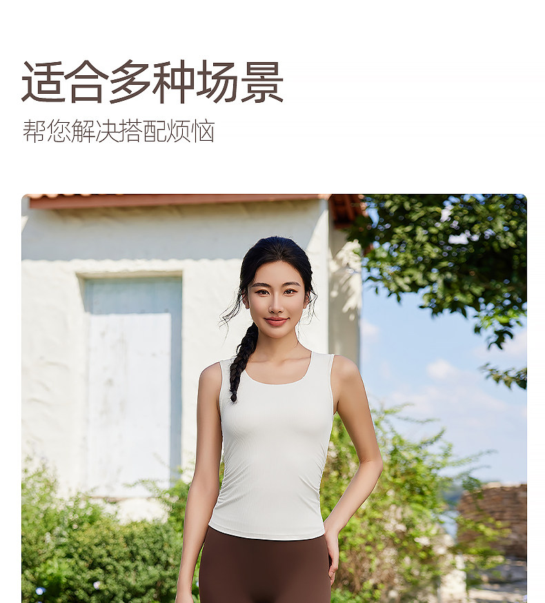 梵美人 F5270 瑜伽背心 一体胸垫 薄云螺纹