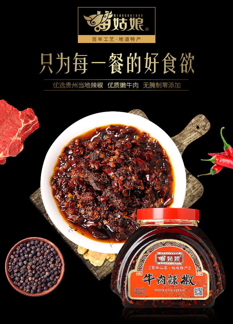 苗姑娘 牛肉辣椒酱 自制开胃菜下饭酱750g