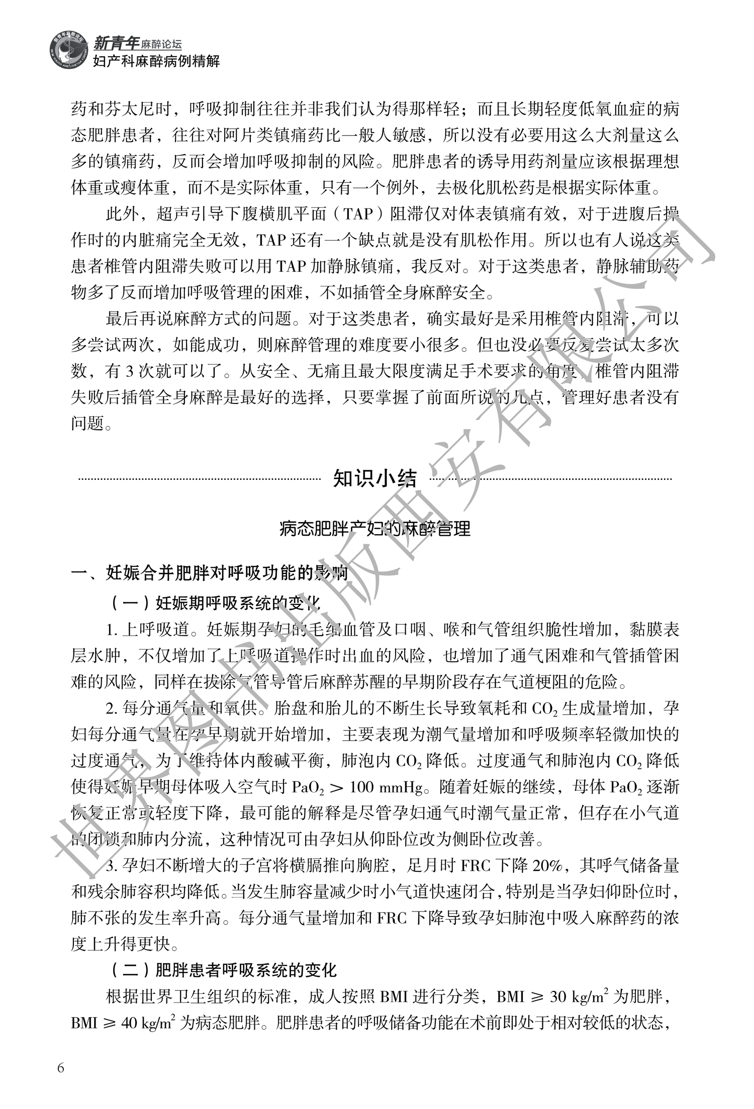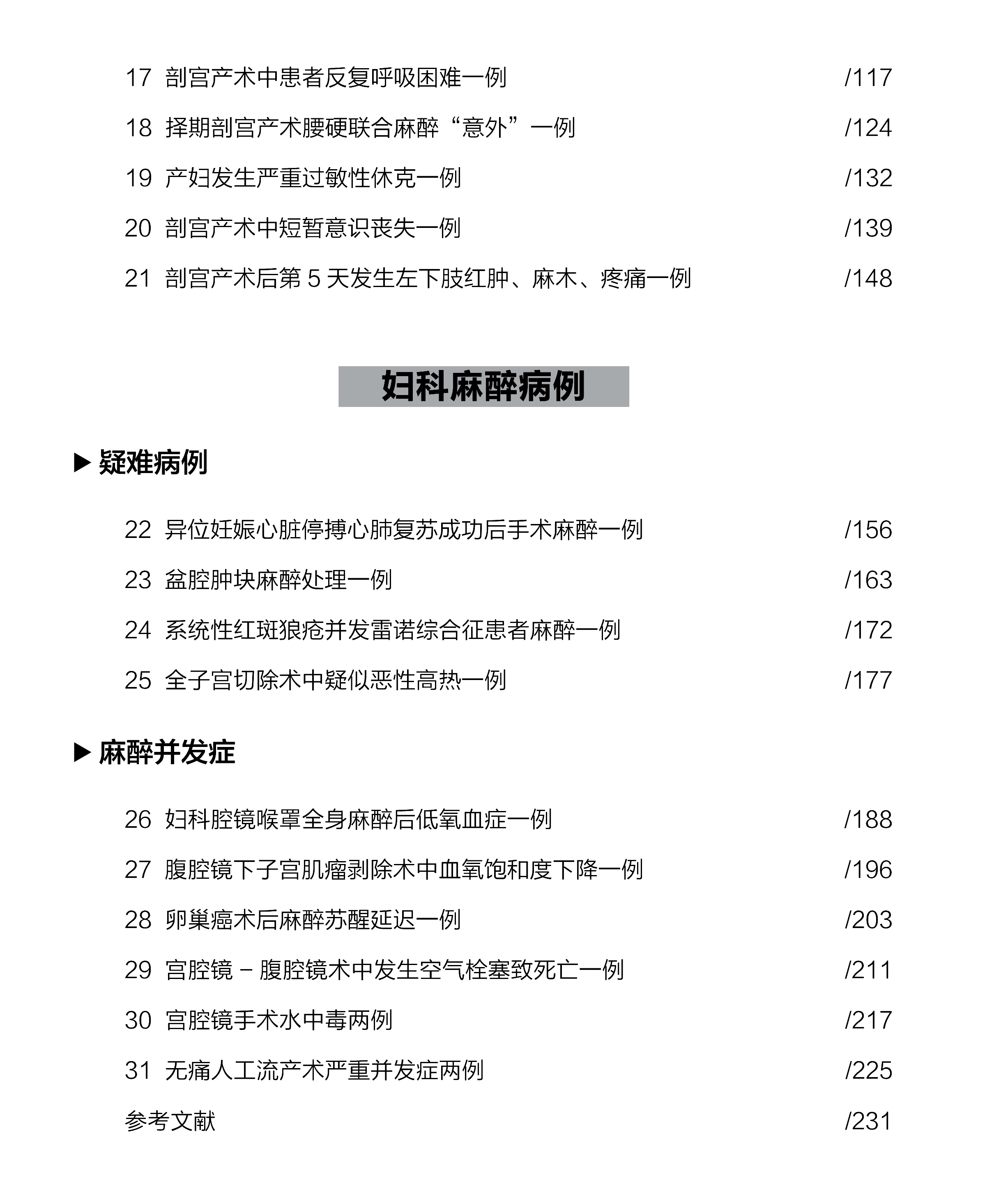 涉及异位妊娠心脏停搏心肺复苏成功后、系统性红斑狼疮并发雷诺综合征等妇科疑难重症的麻醉管理,解析分娩镇痛后顽固性头痛、腹腔镜术中发生空气栓塞等各种妇产科并发症发生的原因、处理方案及可能的预后等。