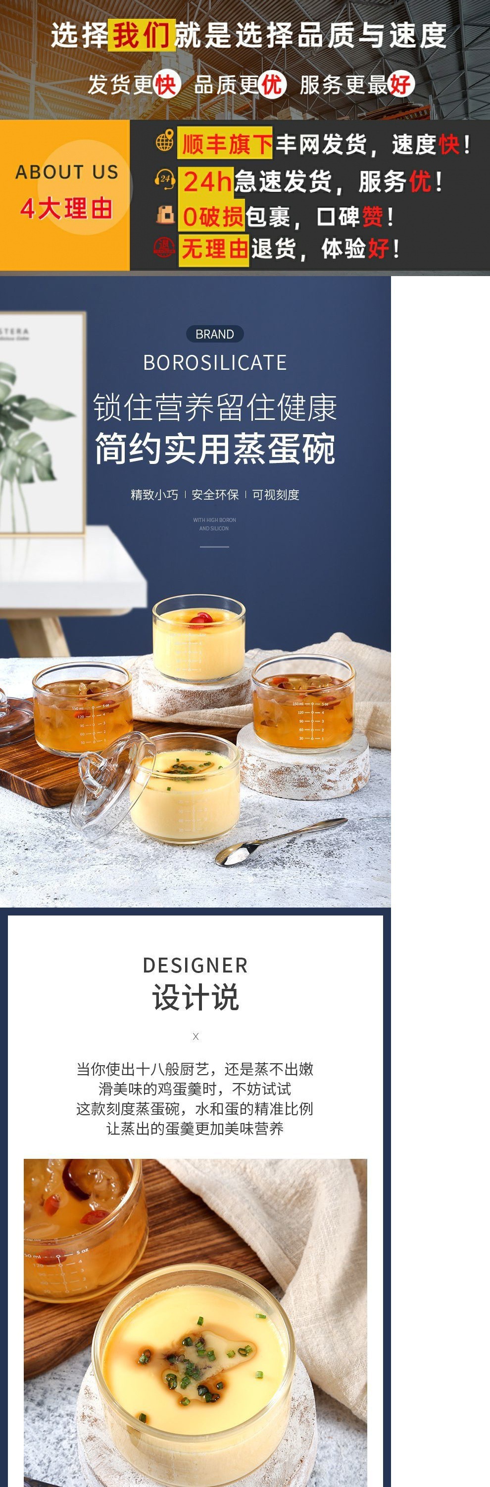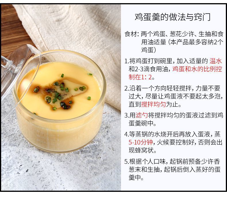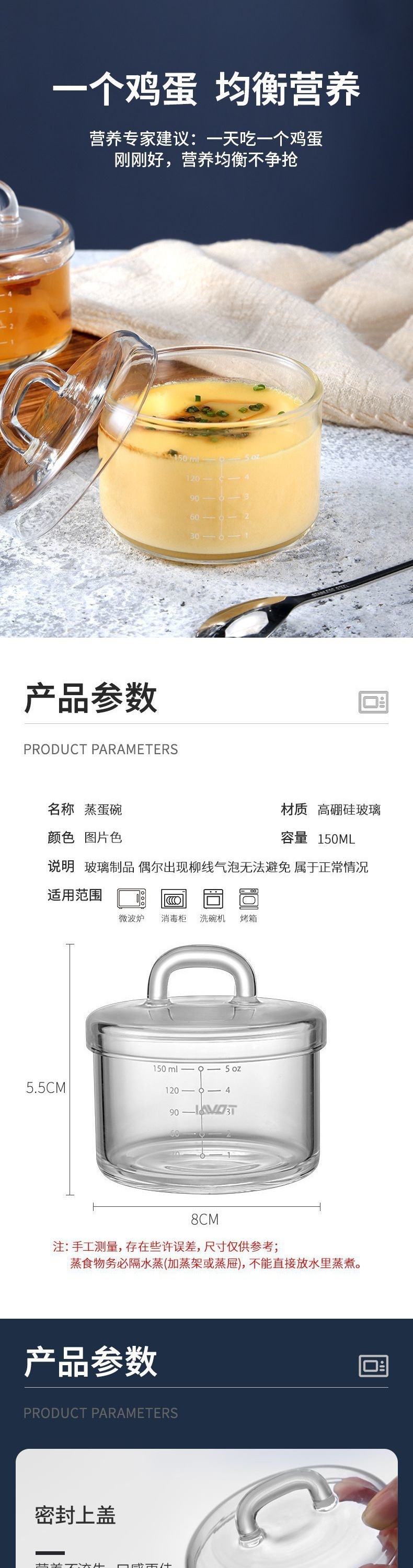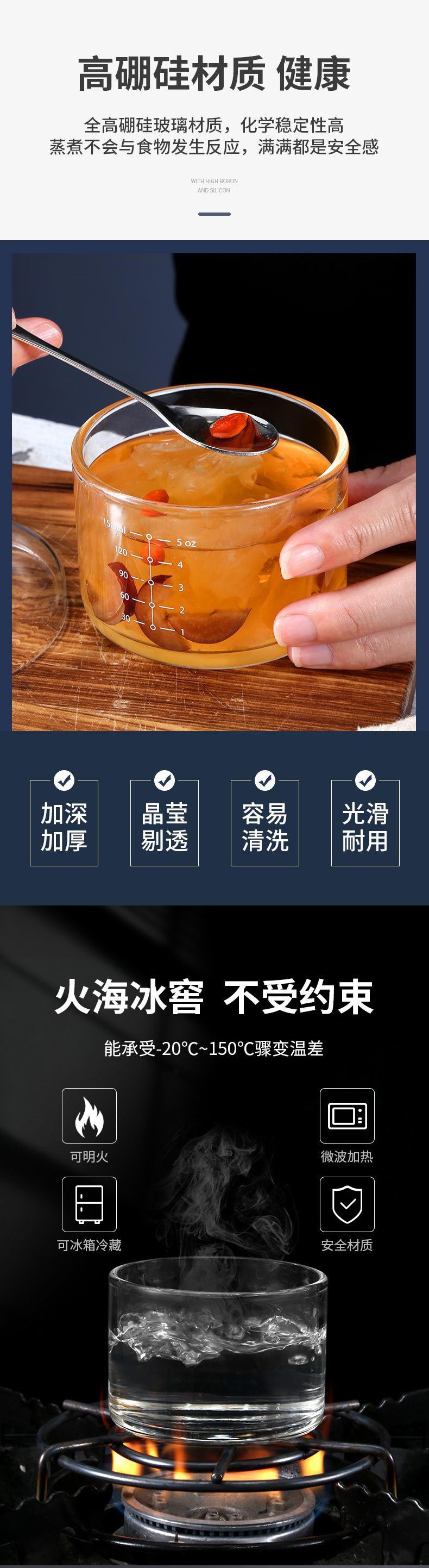 带刻度蒸蛋碗可微波宝宝玻璃碗透明带盖耐高温燕窝小炖盅隔水辅食蒸经济