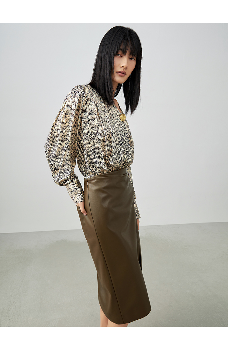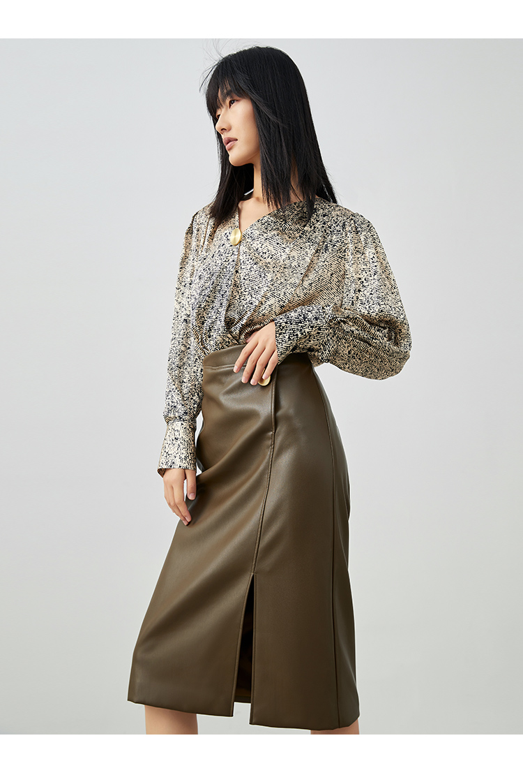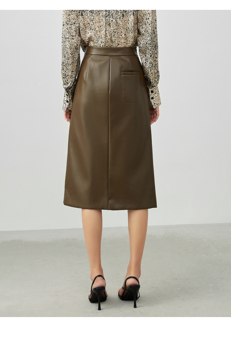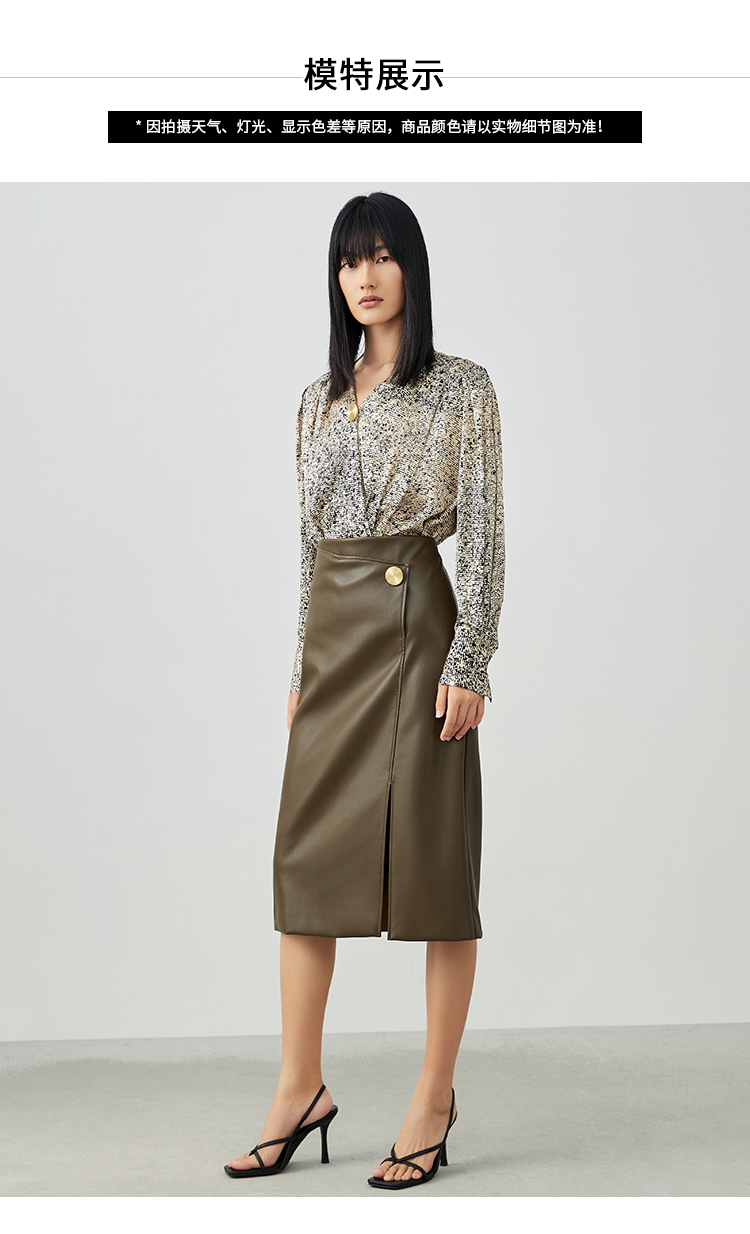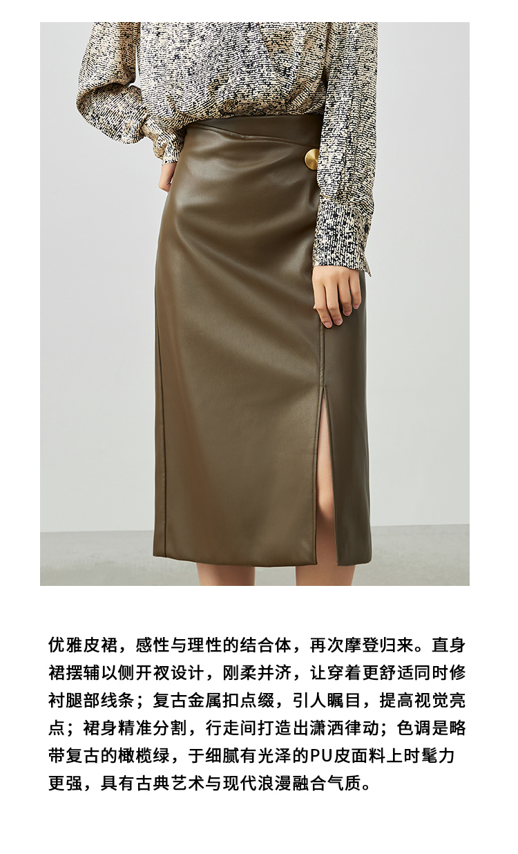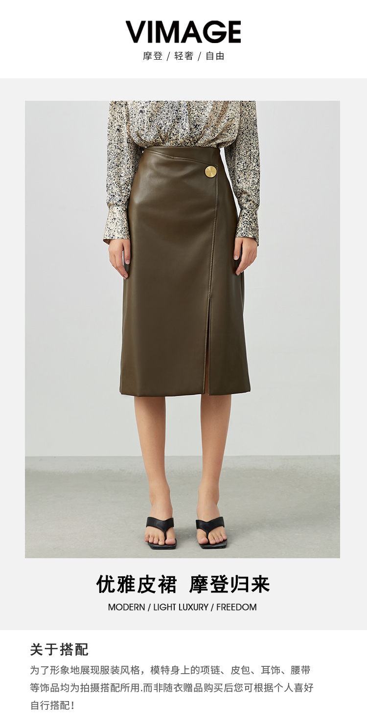 VIMAGE/纬漫纪春季新款气质包臀显瘦开叉时尚百搭半身裙皮裙V1706301