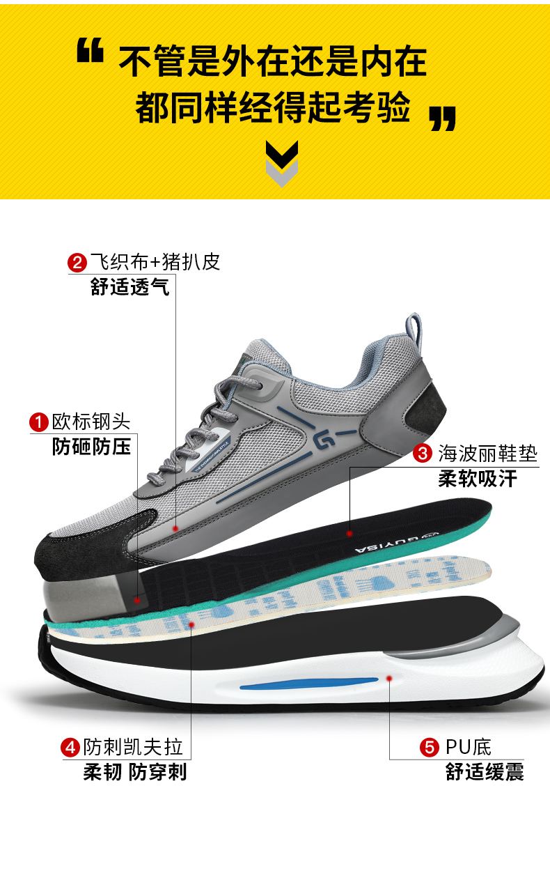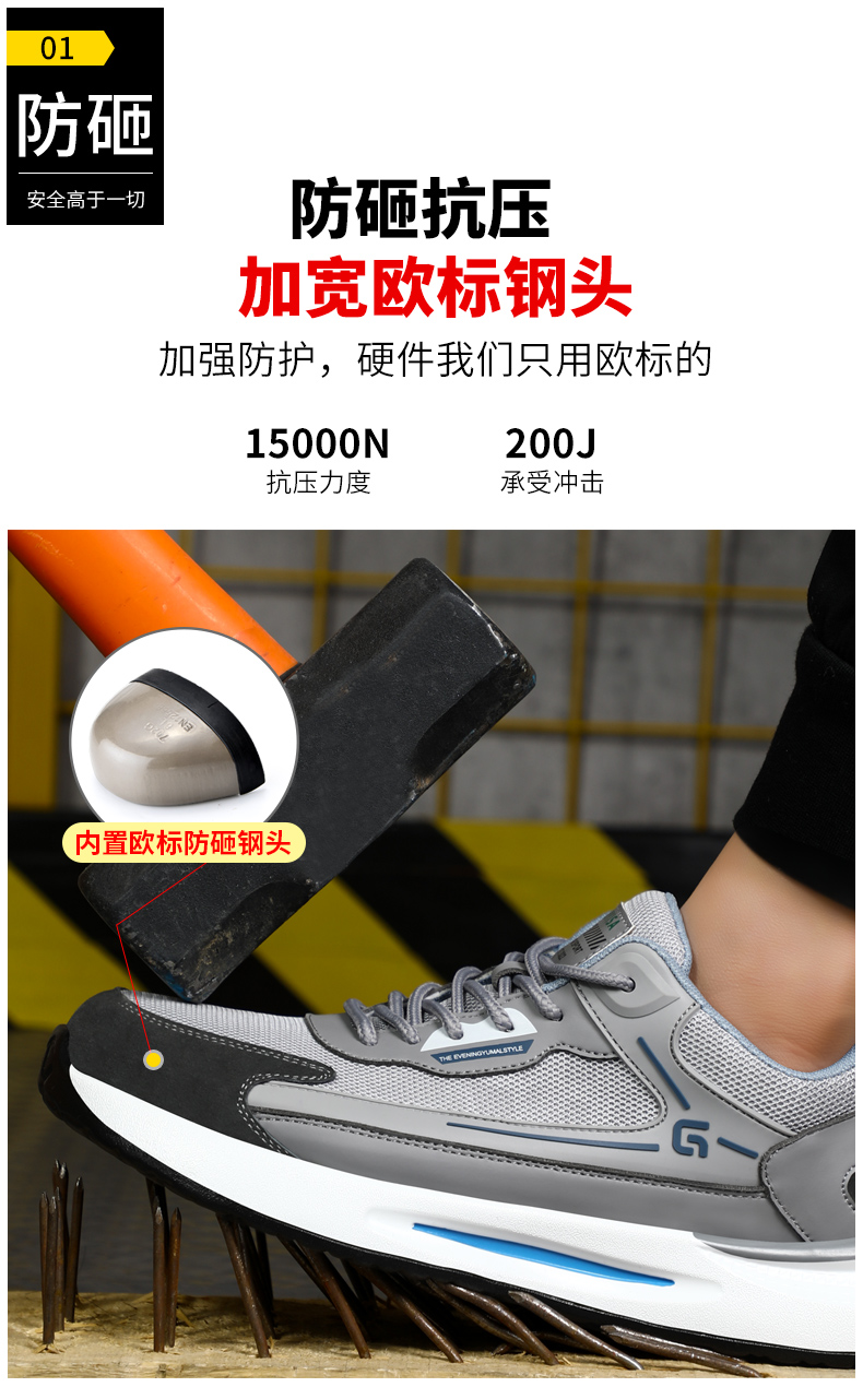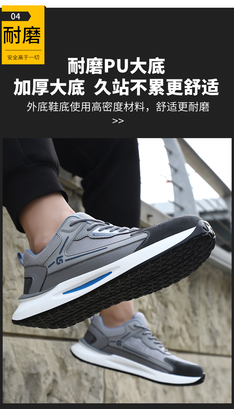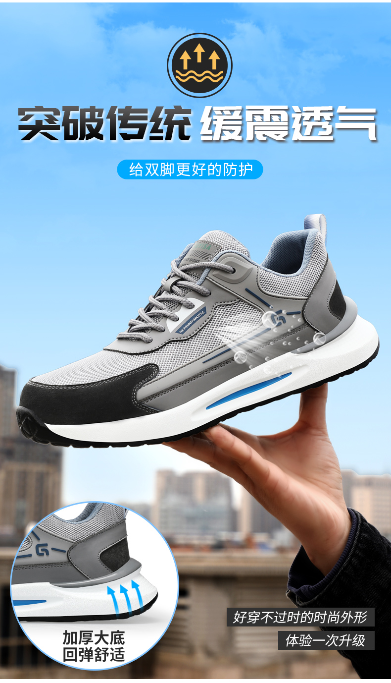 四季款猪皮劳保鞋男网布防砸防刺钢包头橡胶大底透气安全鞋工作鞋