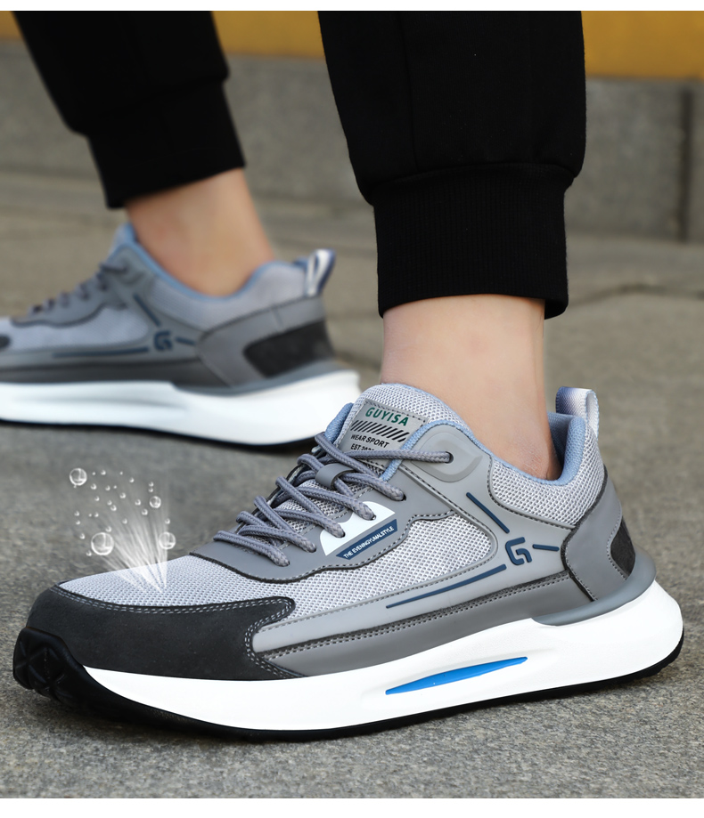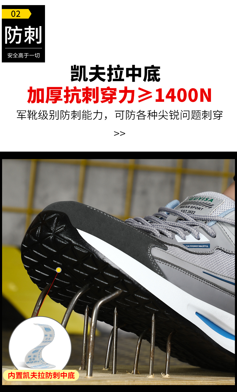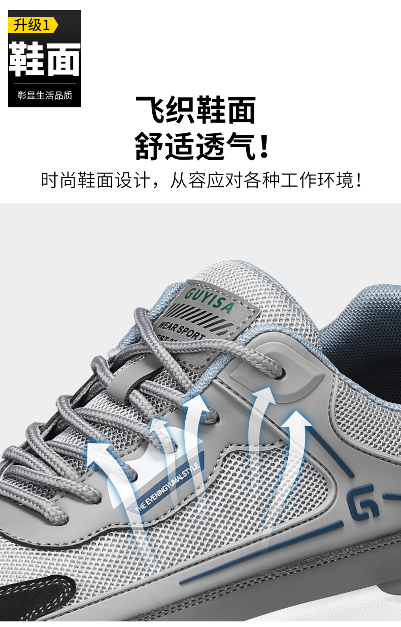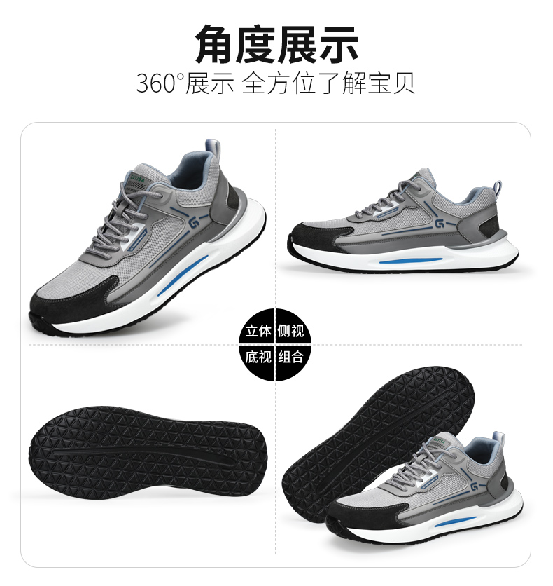四季款猪皮劳保鞋男网布防砸防刺钢包头橡胶大底透气安全鞋工作鞋