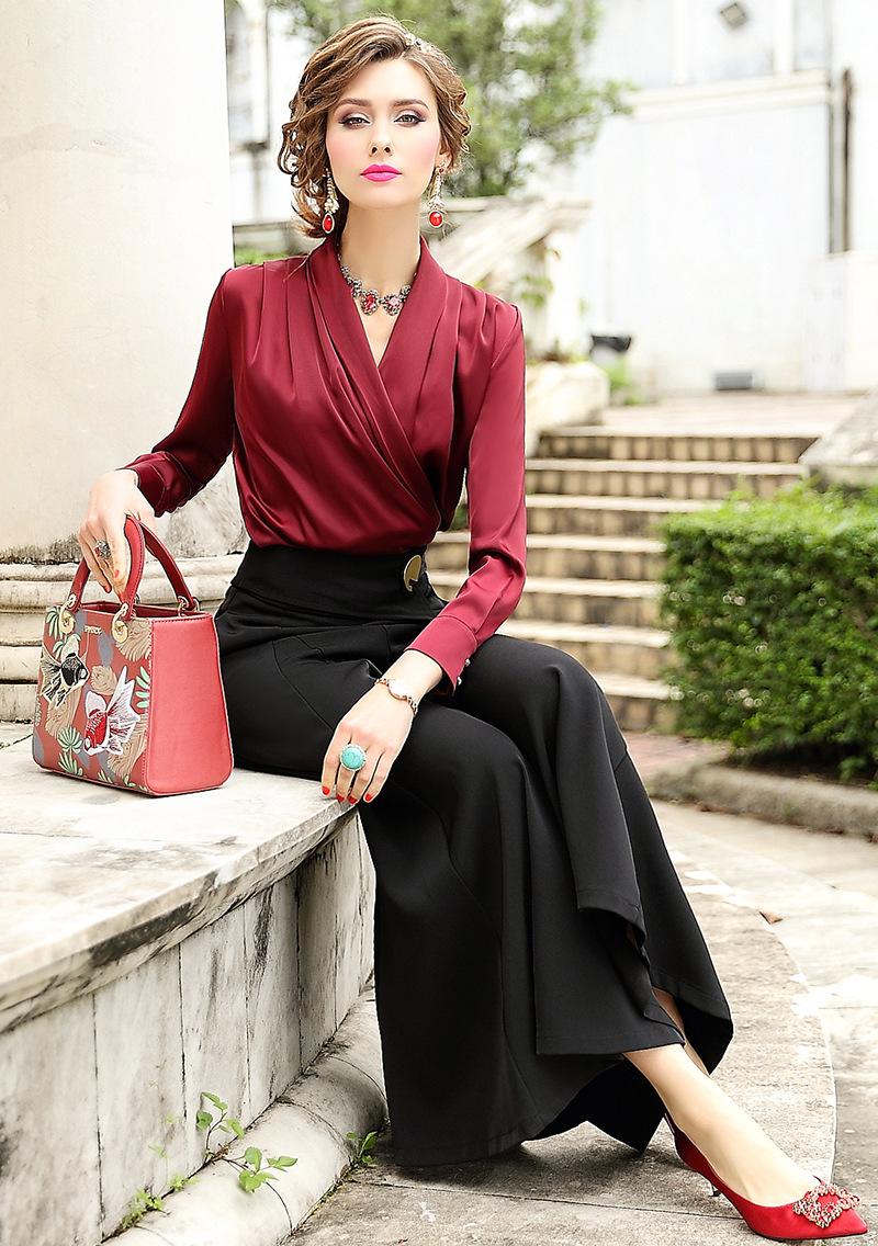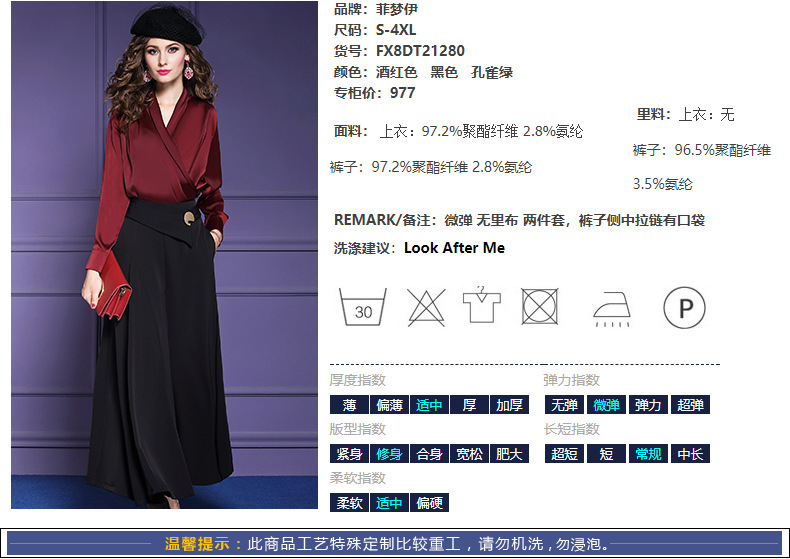 FMY-21280新款时尚气质上衣高腰阔腿裤两件套