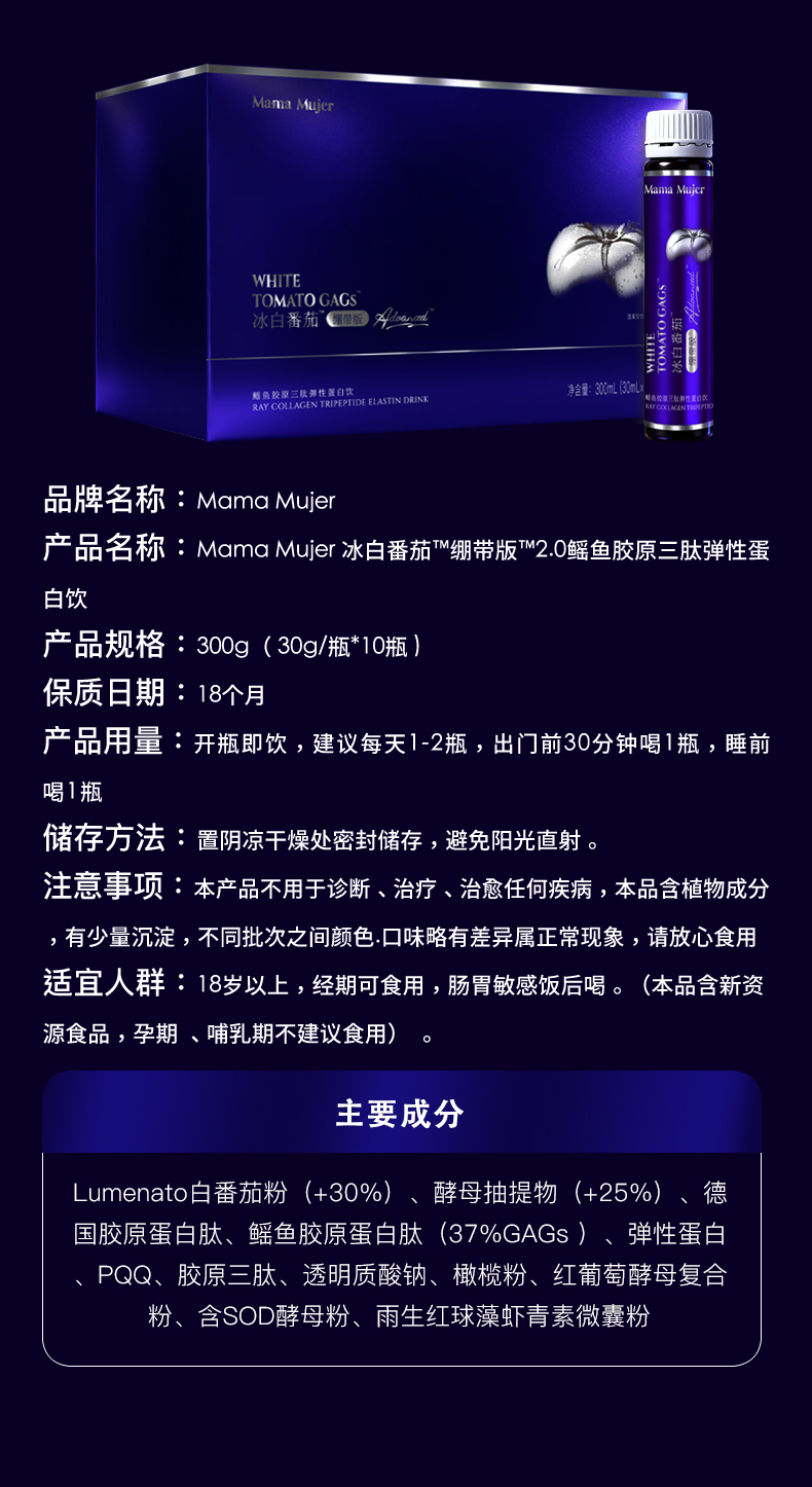【不参与双12满赠】【新升级】Mama Mujer 4代拉皮肽 拉皮版冰绷带 抗S版冰白绷带饮 德国拉皮肽鳐鱼肽轮廓 GAGs玻色因 10支/盒 MMMJ