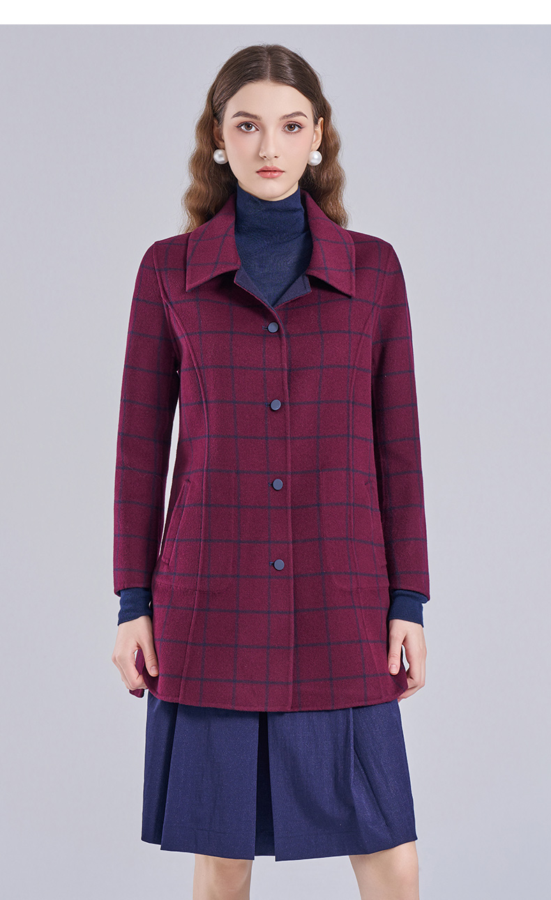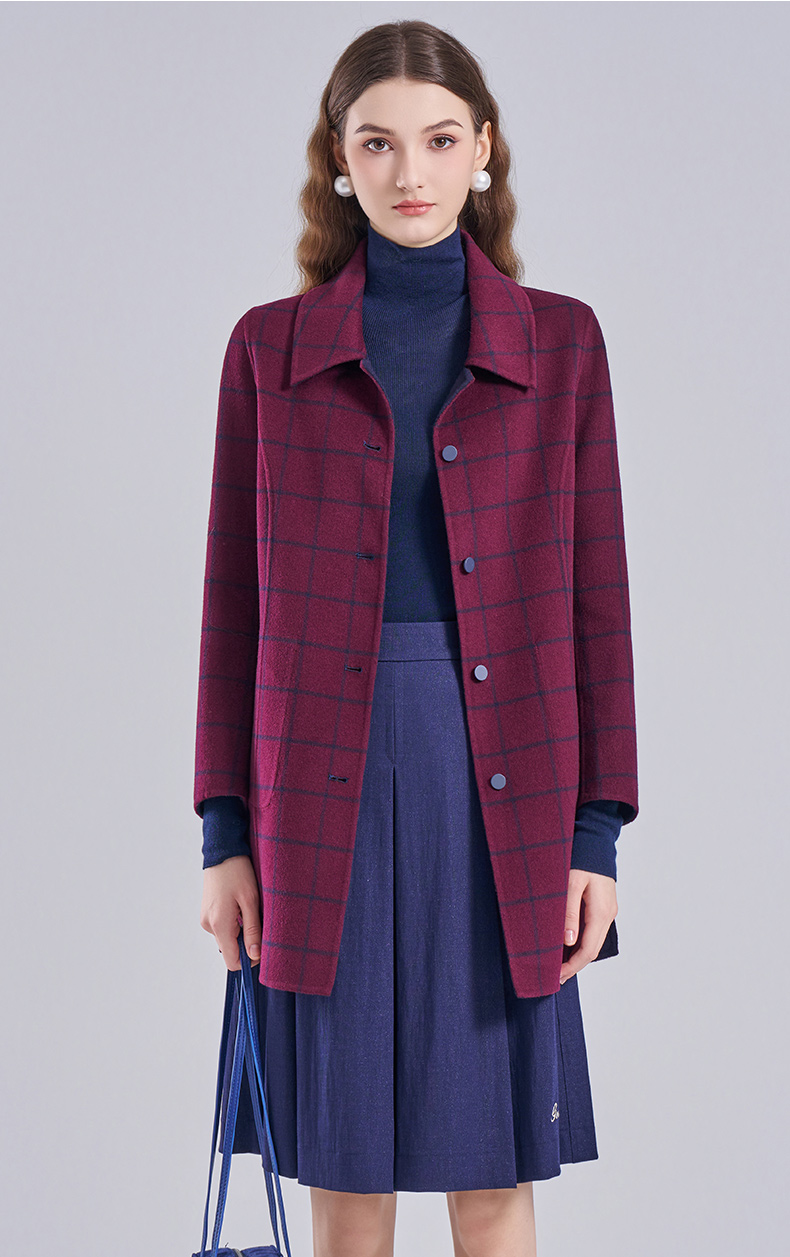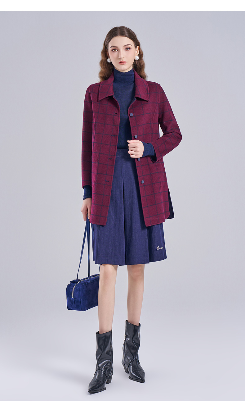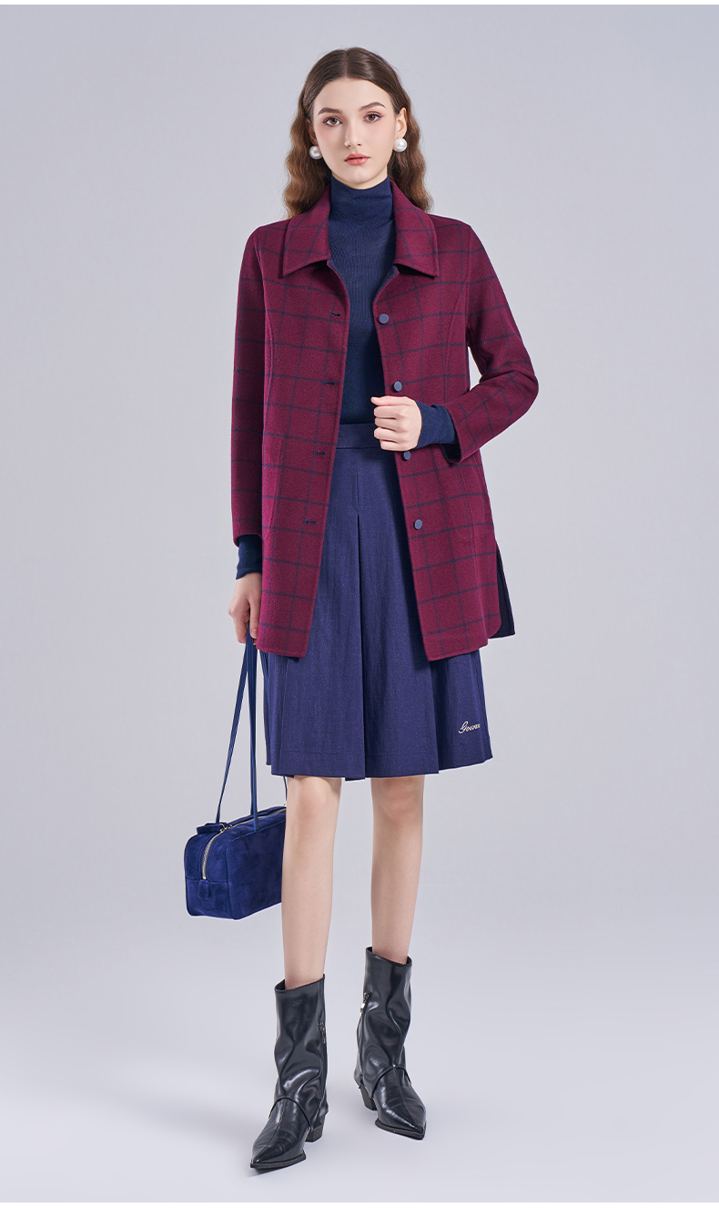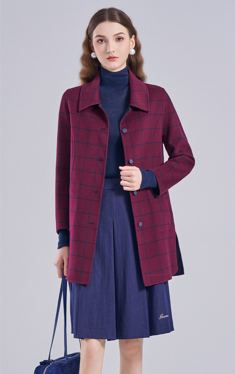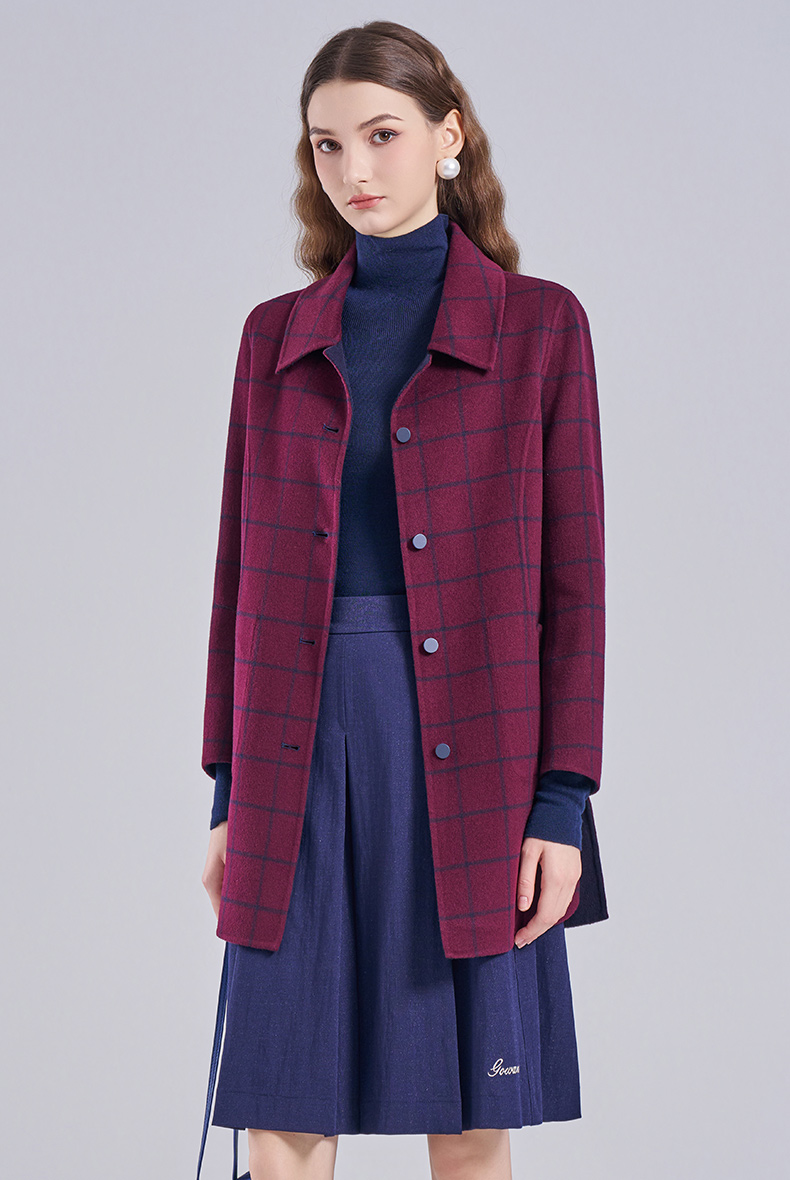 乔万尼新品绵羊毛大衣简约格纹设计感EI4A583
