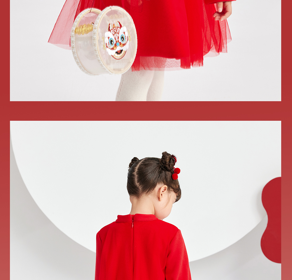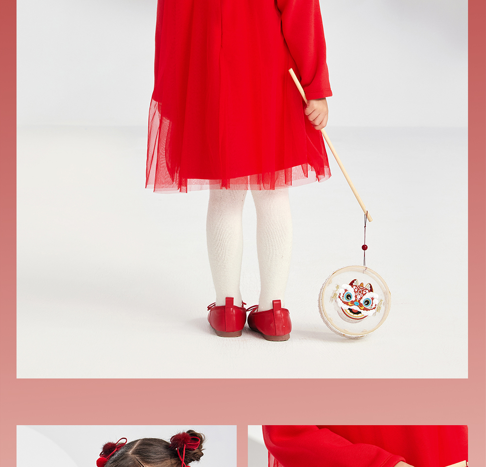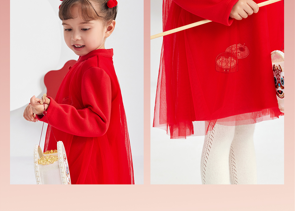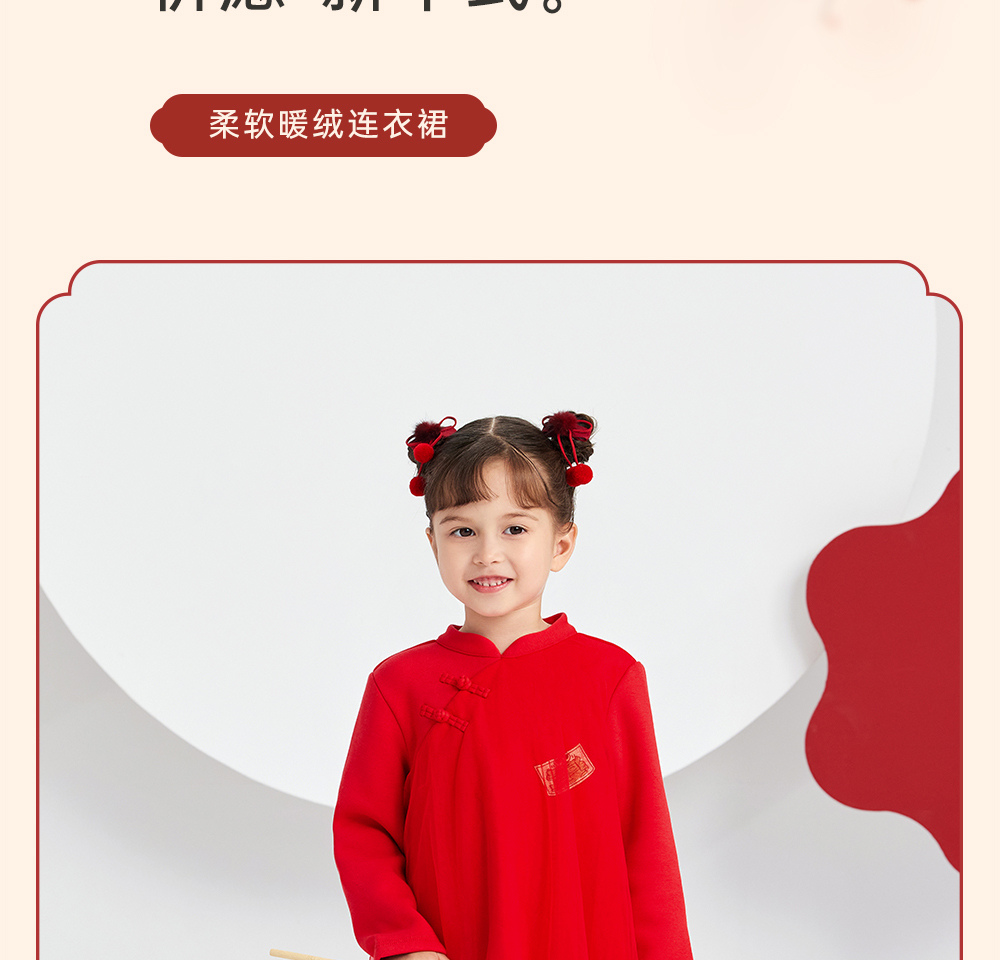 英氏新中式暖感加绒连衣裙女童秋装国风喜庆裙子