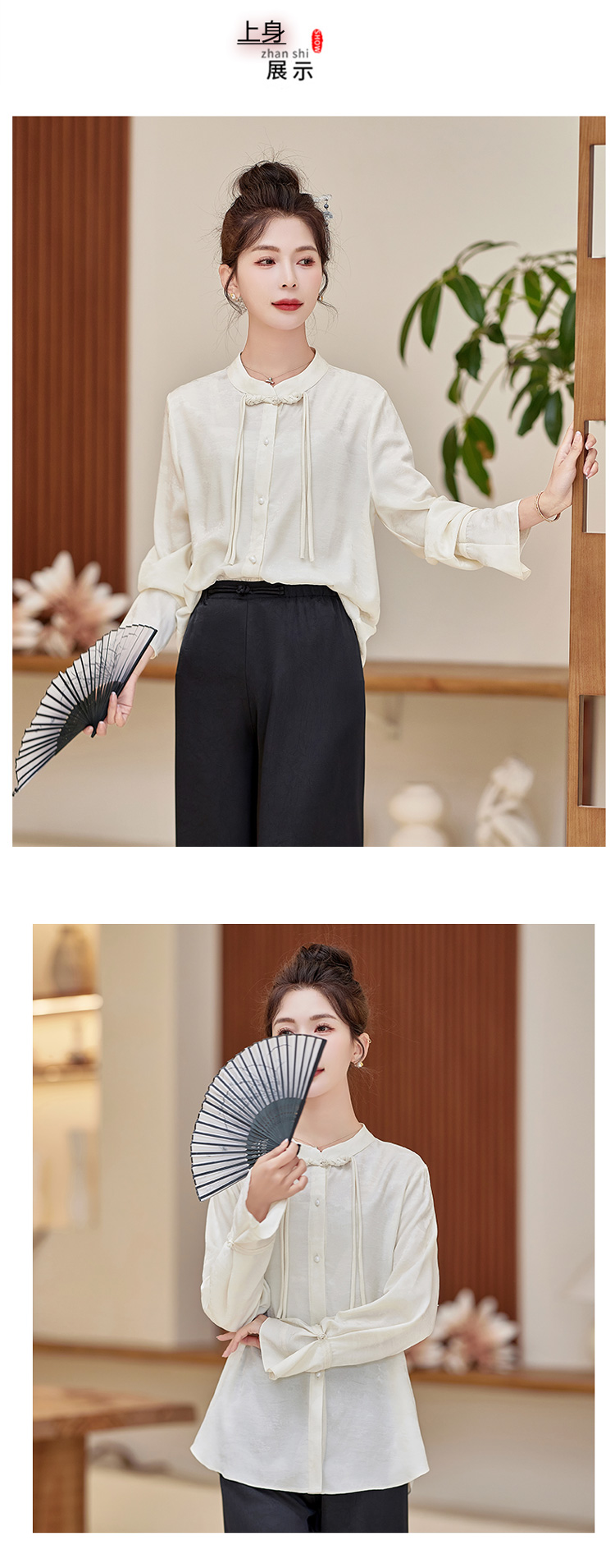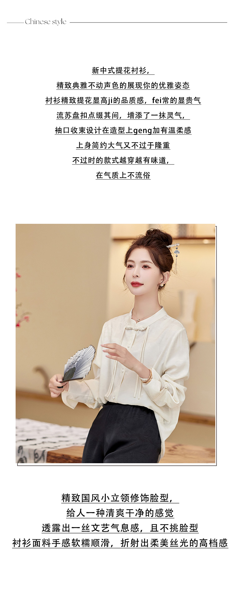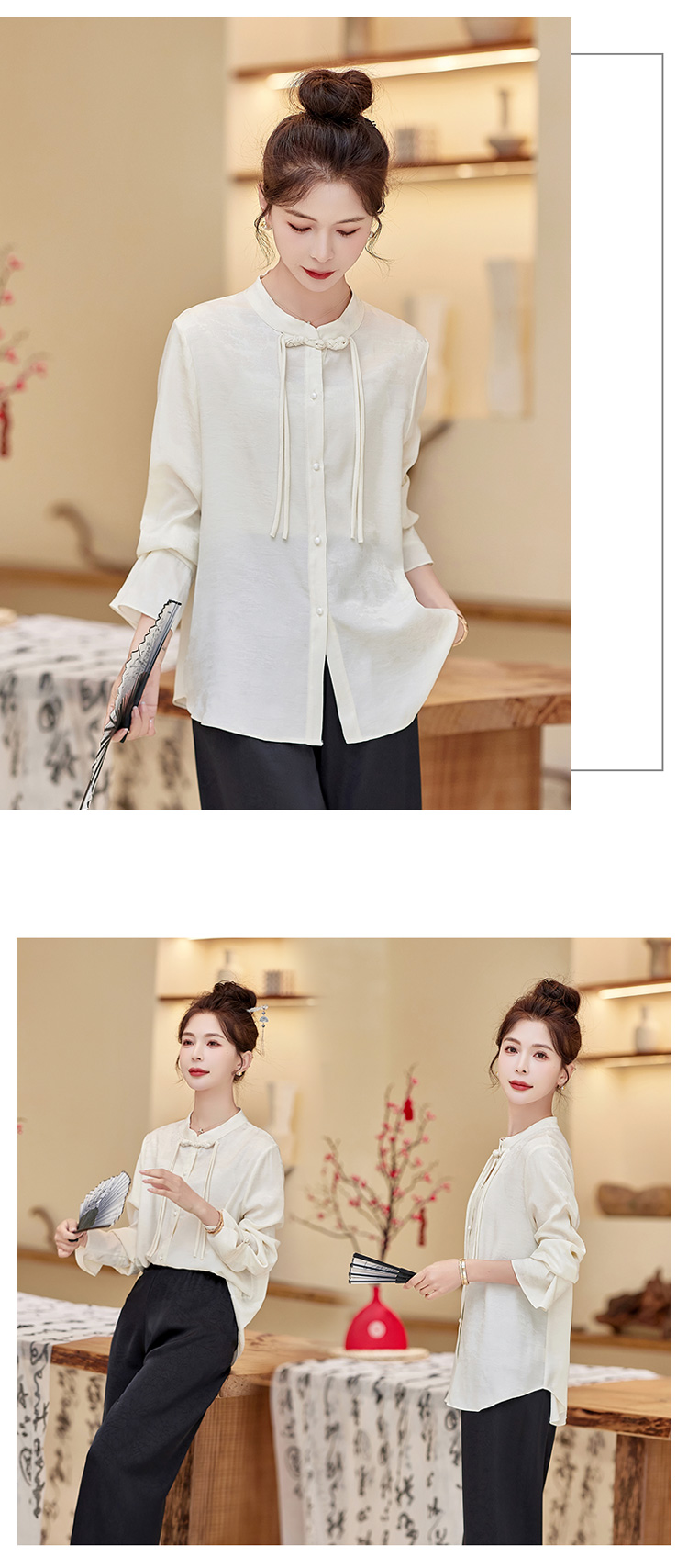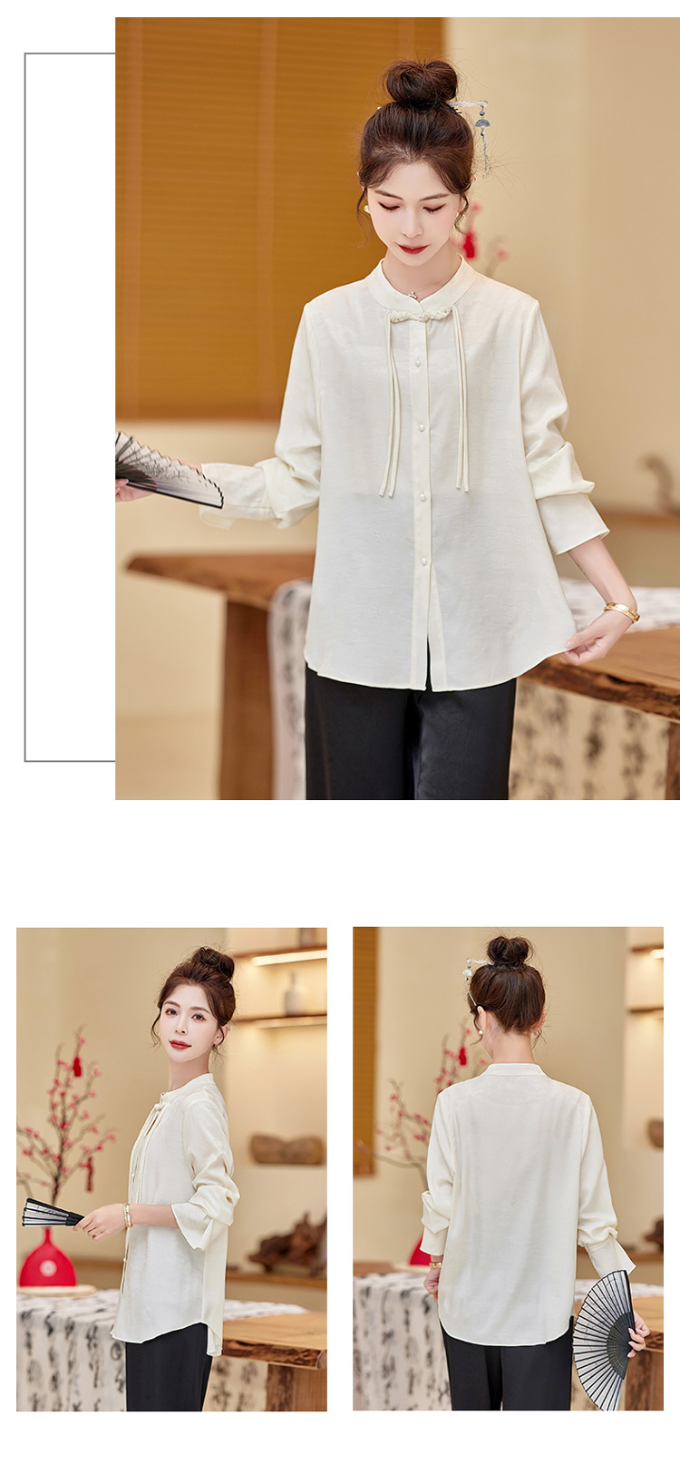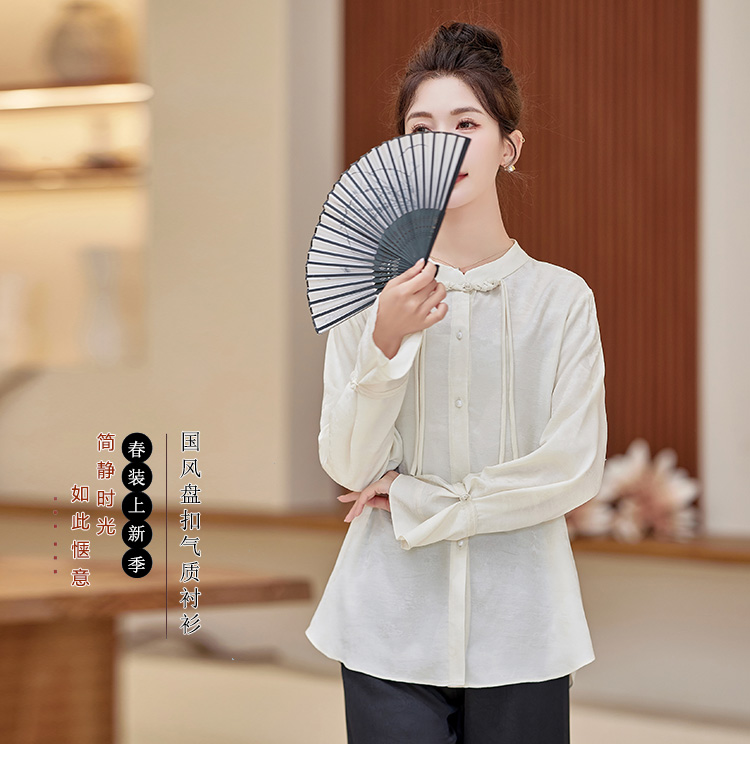 春装新款,新中式盘扣立领衬衫气质通勤长袖衬衫HR-XYYH6060