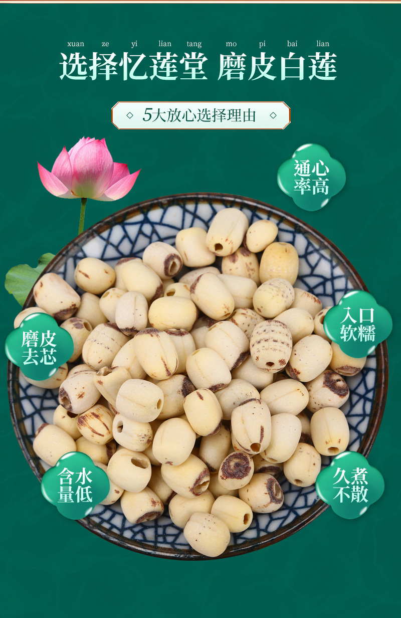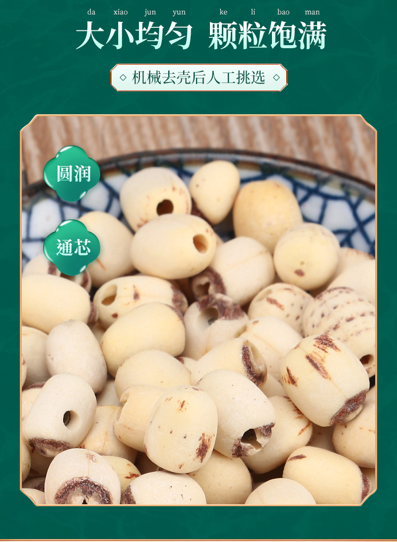 河谷上方 磨皮小白莲500g散装去芯白莲子磨皮无硫干货产地直供通芯莲子