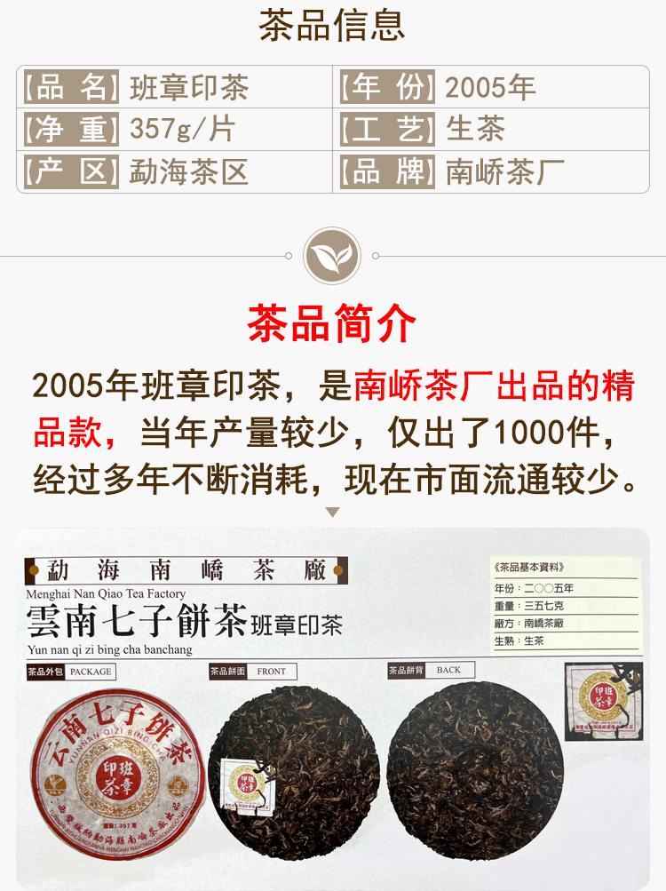 【经典好茶】2005年南峤茶厂班章印茶普洱茶老生茶 轻烟香好回甘好仓储 精品干仓高性价比