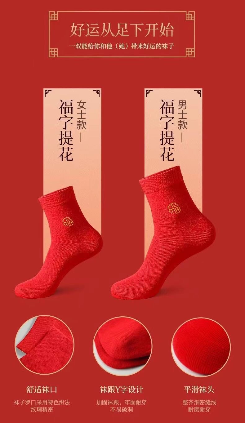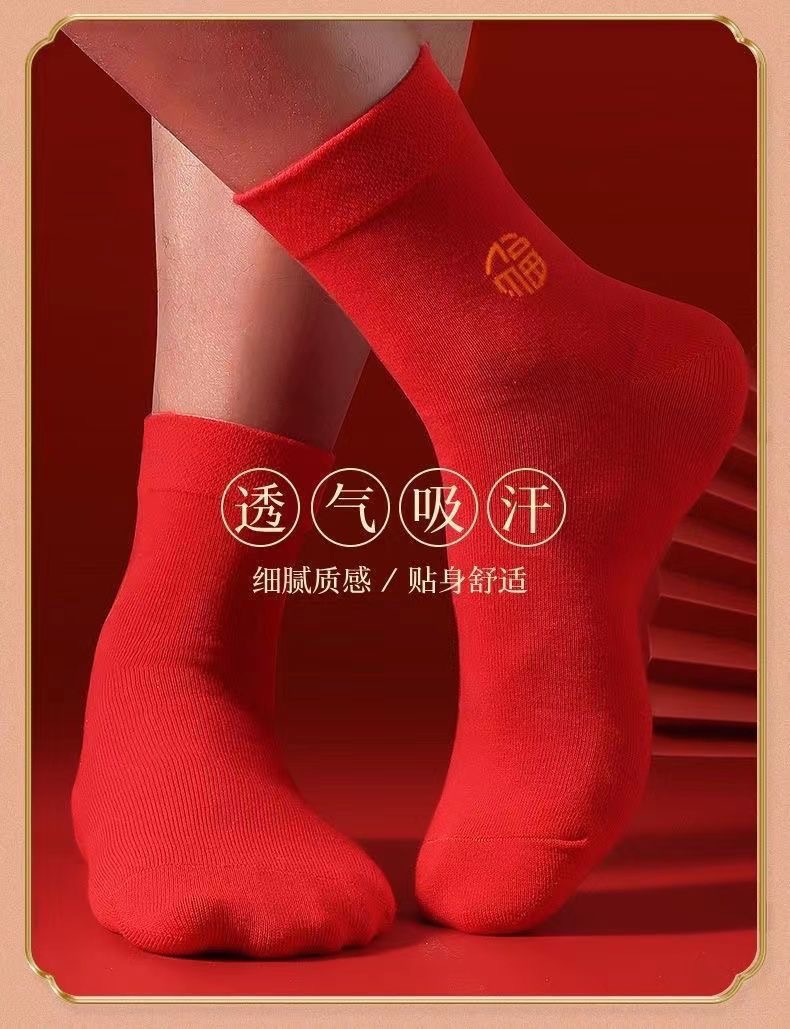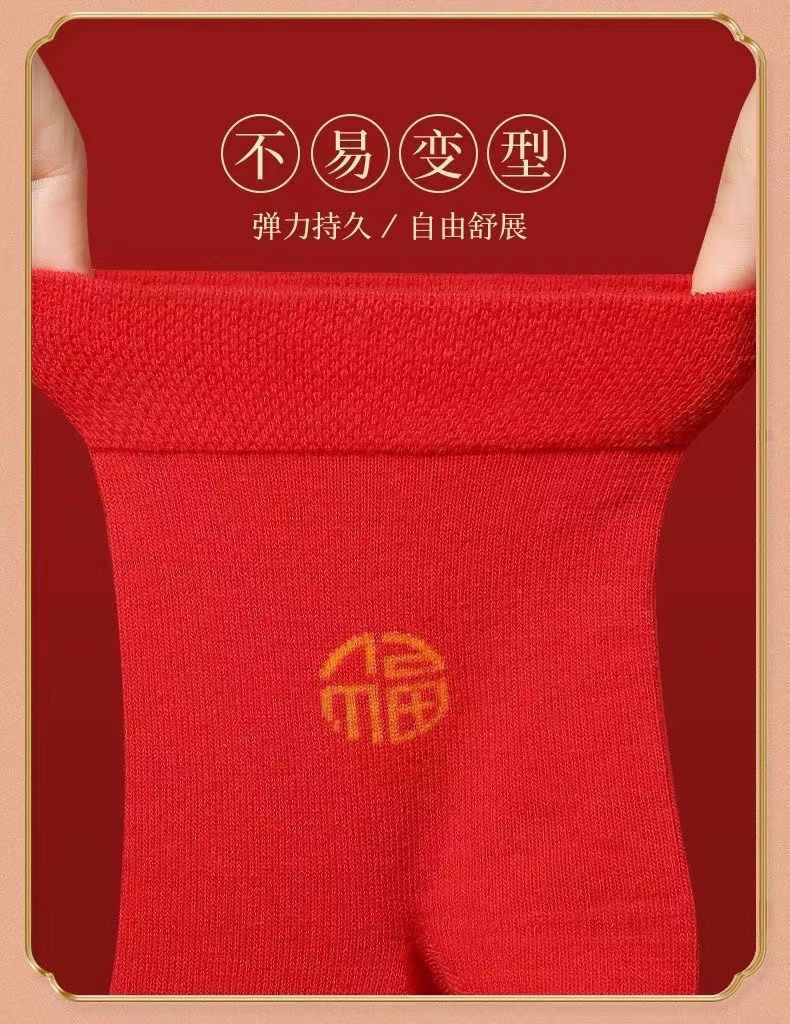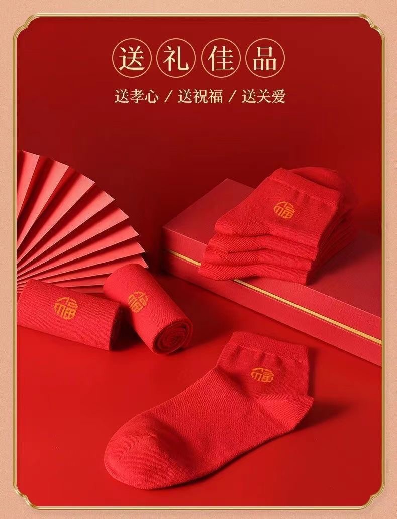 雀说 5双红袜子本命年袜子中筒棉袜福字大红袜男女情侣款红色女士袜子5ZF-10055