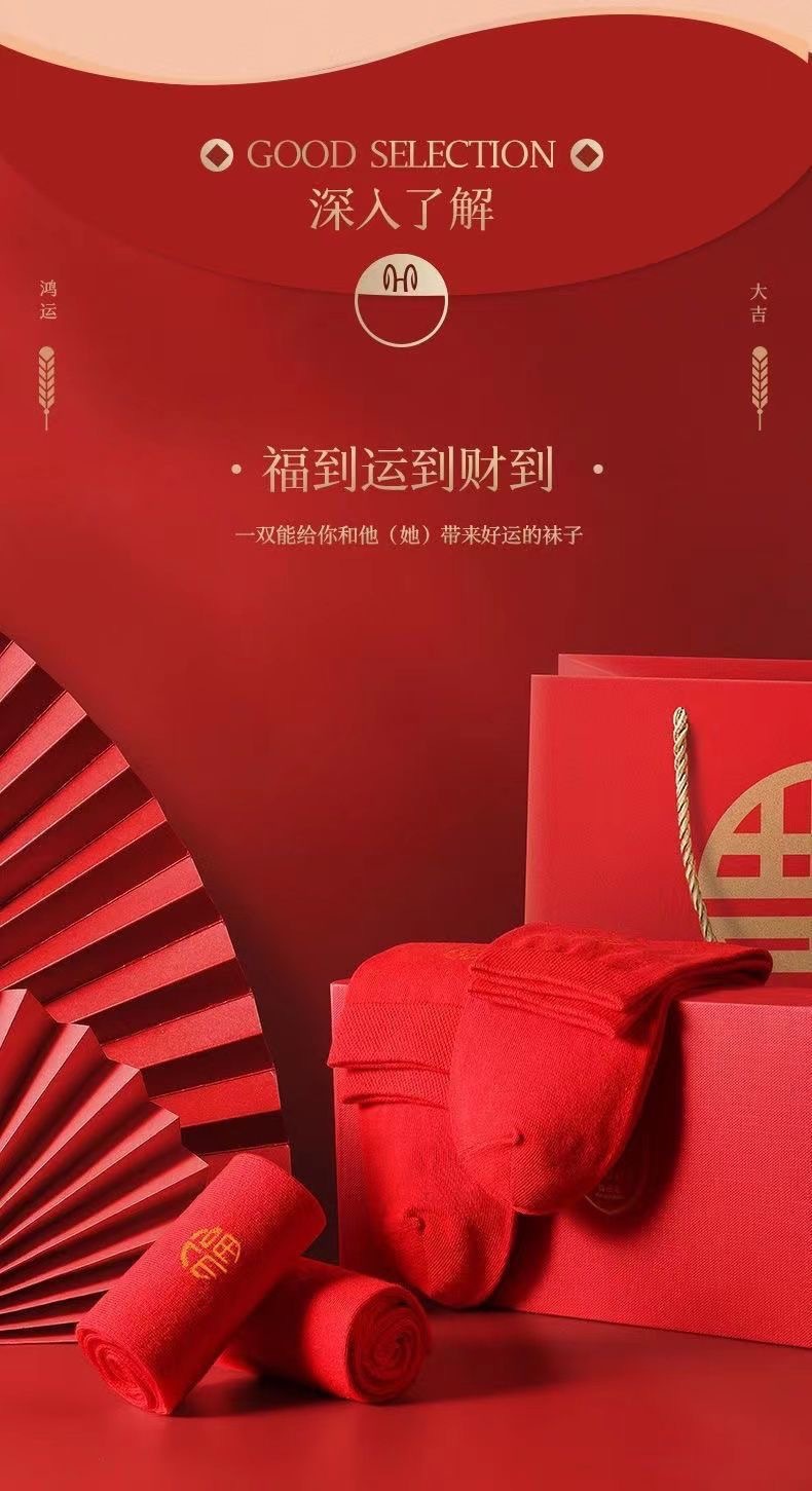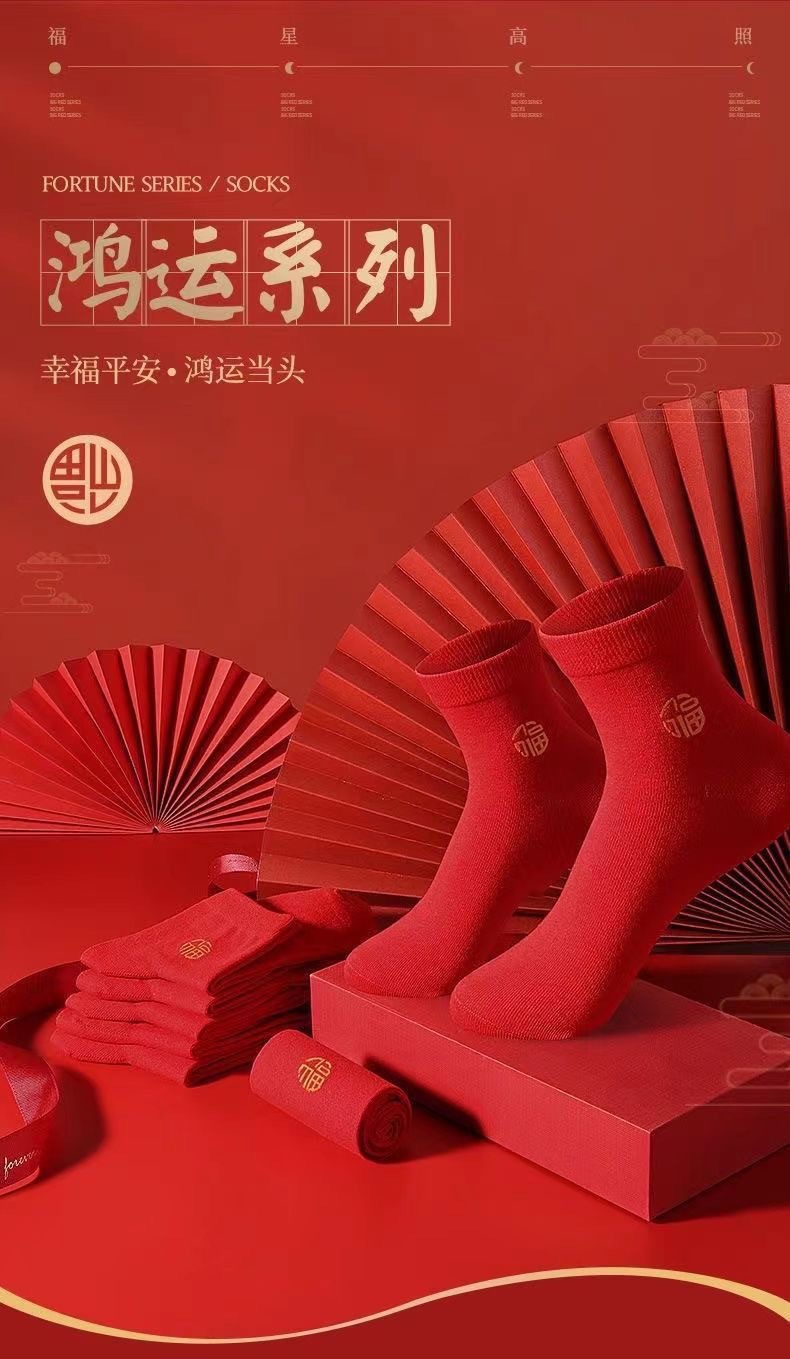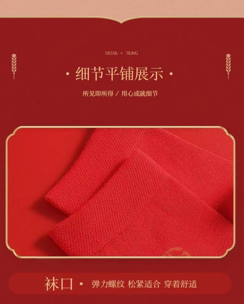 雀说 5双红袜子本命年袜子中筒棉袜福字大红袜男女情侣款红色女士袜子5ZF-10055