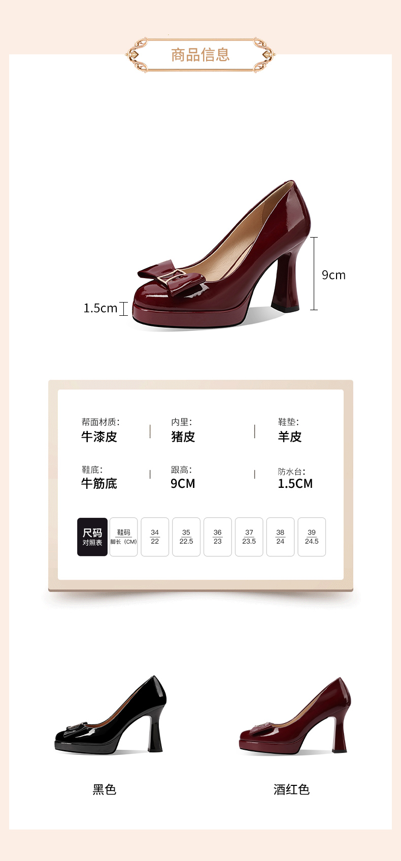 【跟 高】9cm(烤漆跟)