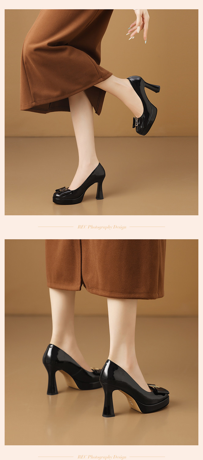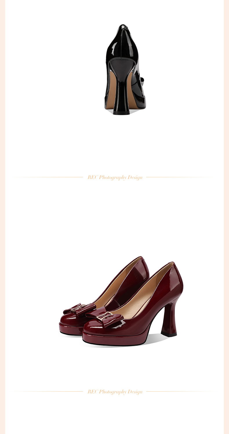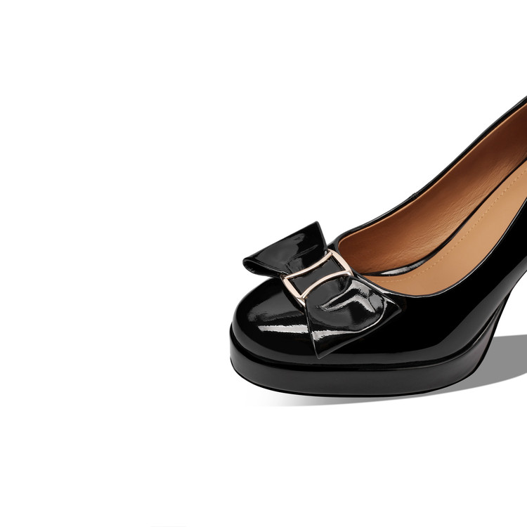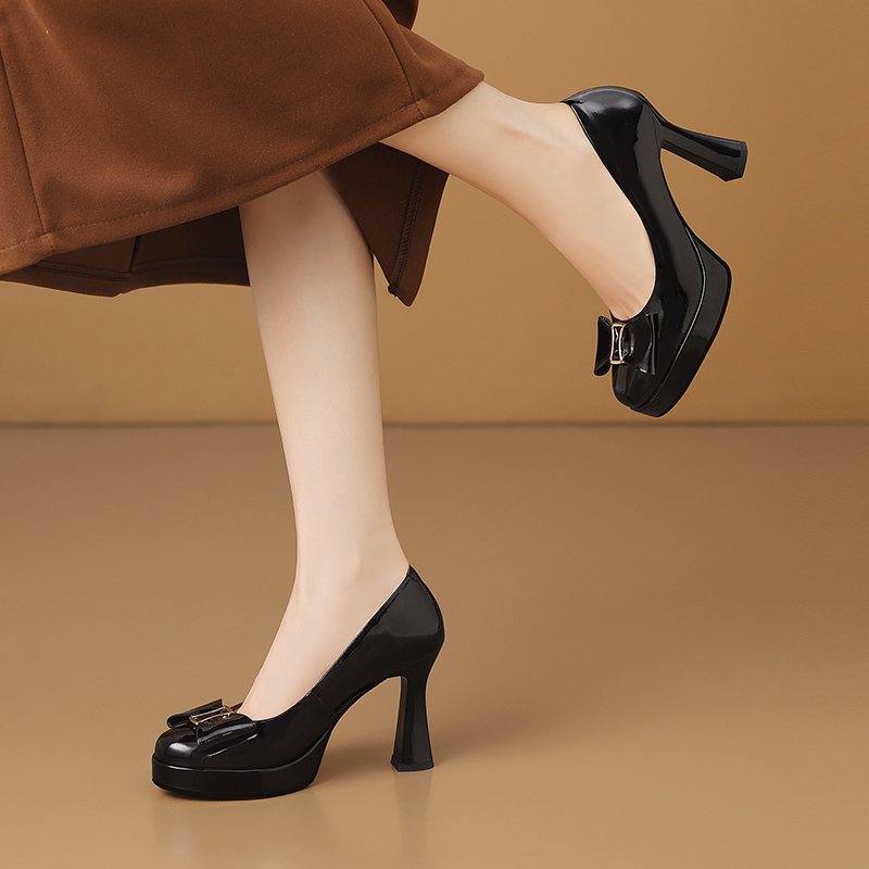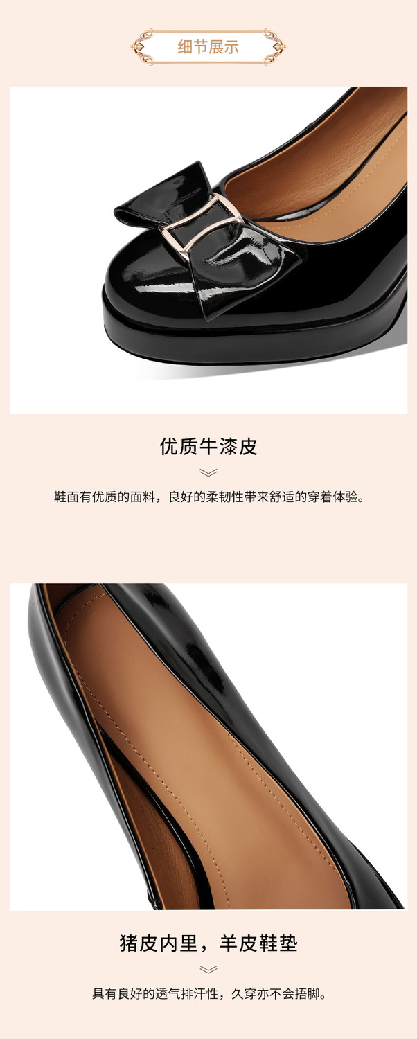 【预售5天】漆皮防水台高跟鞋圆头蝴蝶结浅口单鞋女小个子新款秋季时尚真皮鞋HY&H3707