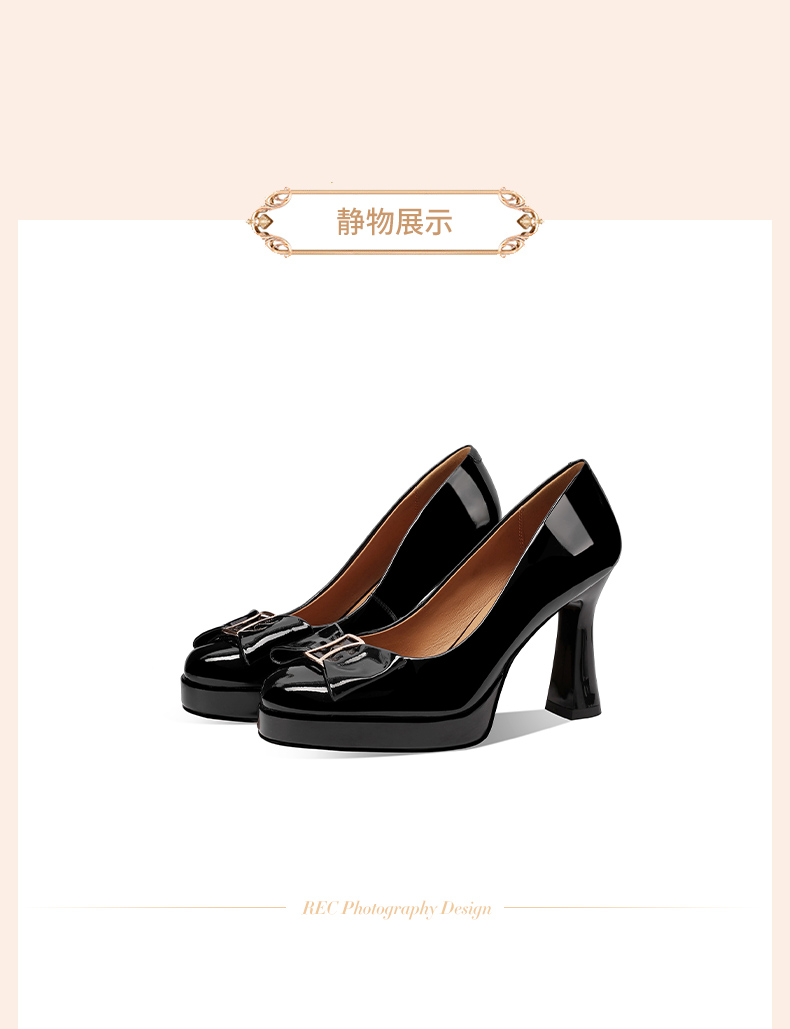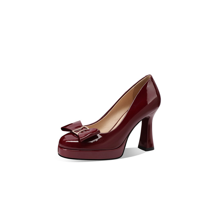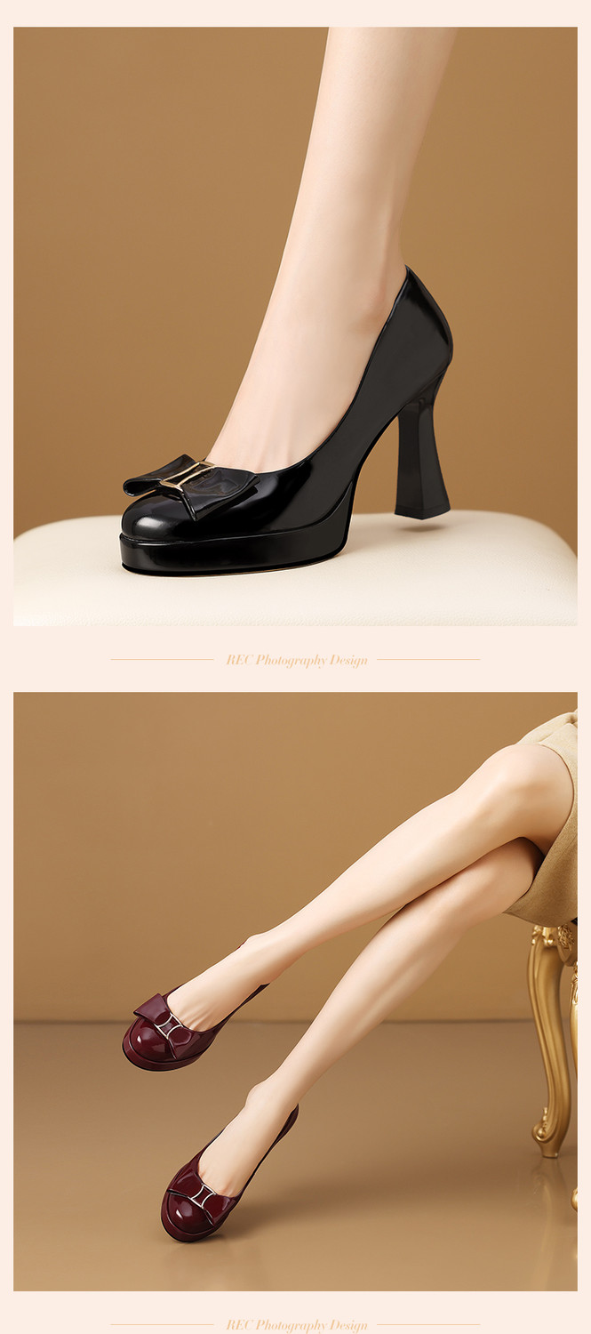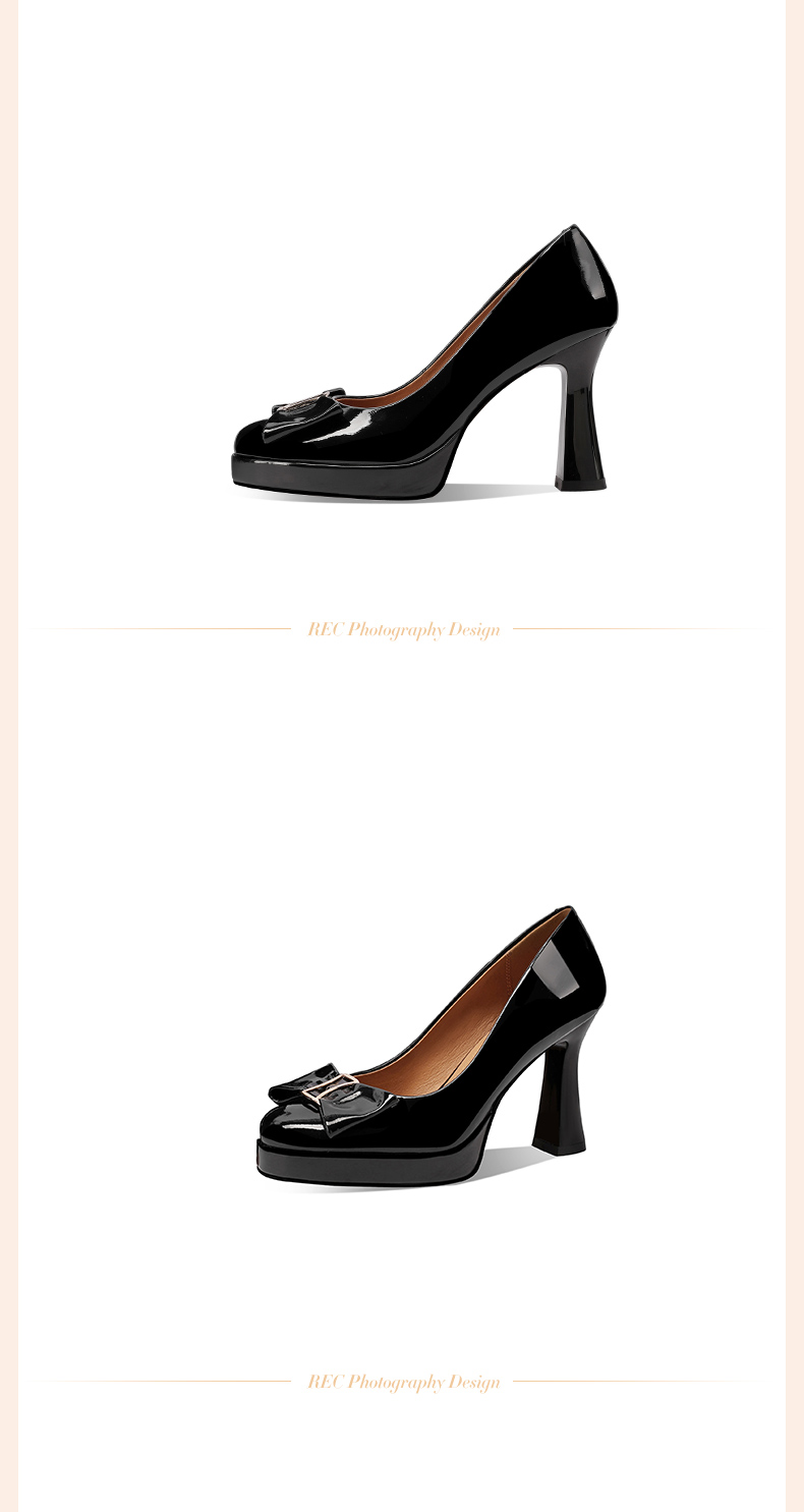 【预售5天】漆皮防水台高跟鞋圆头蝴蝶结浅口单鞋女小个子新款秋季时尚真皮鞋HY&H3707