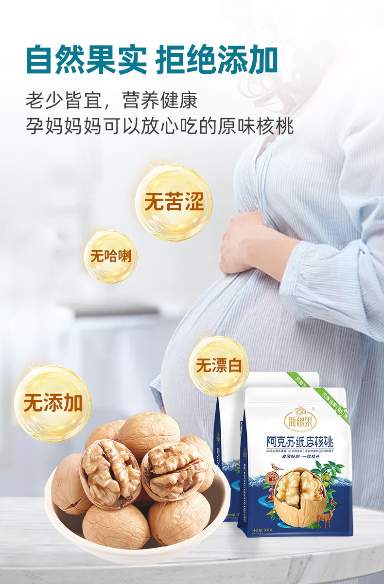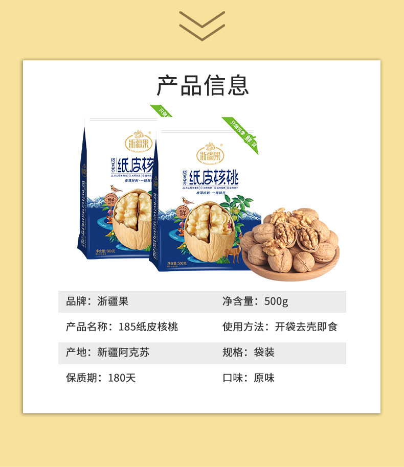 500g浙疆果185纸皮核桃(草本味袋装大果)壳薄好剥 颗粒饱满