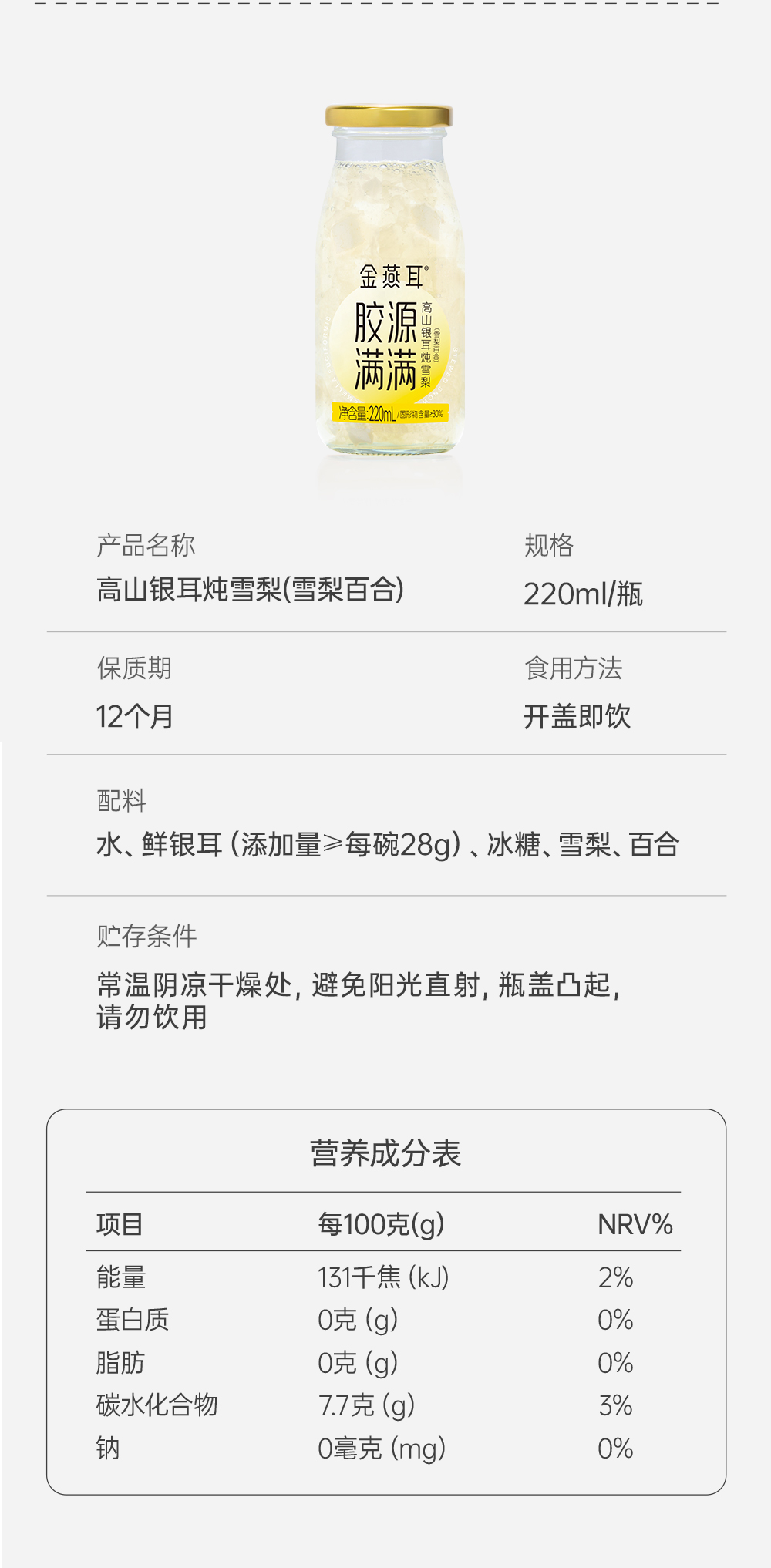 【滋补养生】金燕耳银耳鲜露 鲜炖银耳 开盖即食 一箱6瓶装(220ml/瓶)代餐饱腹银耳羹 (每箱单独快递,拍两件以上的仙女不要漏拿快递啦) 新旧包装随机发货