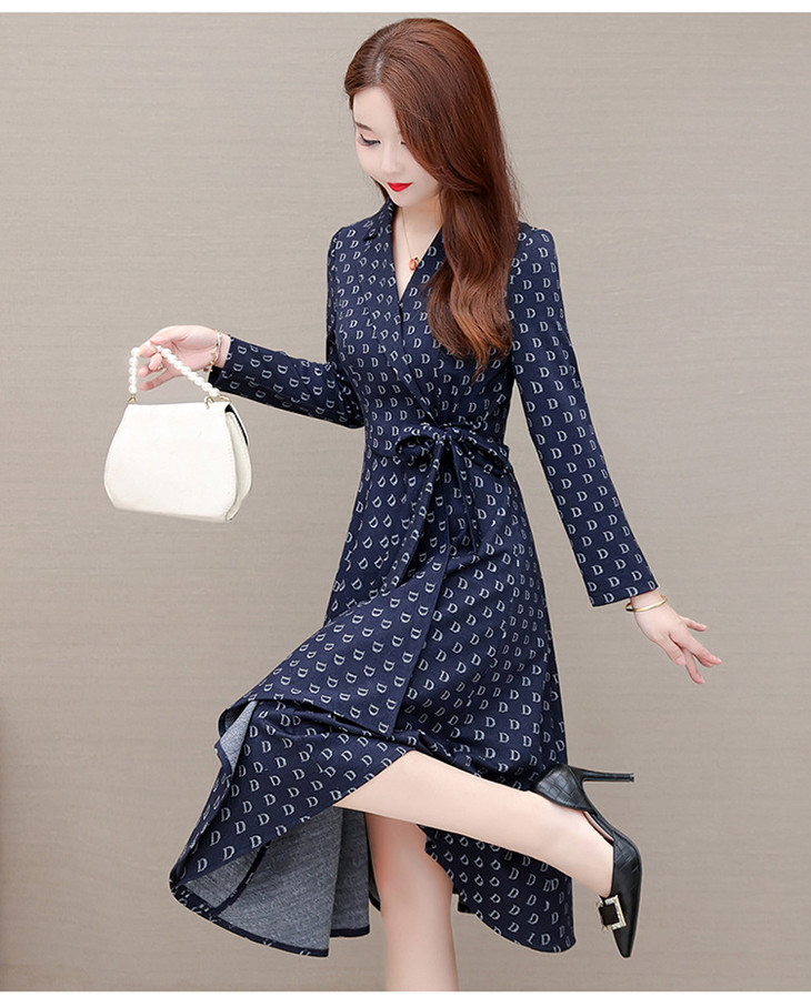 KLY1154 春夏新款气质两件套中腰修身印花七分袖连衣裙