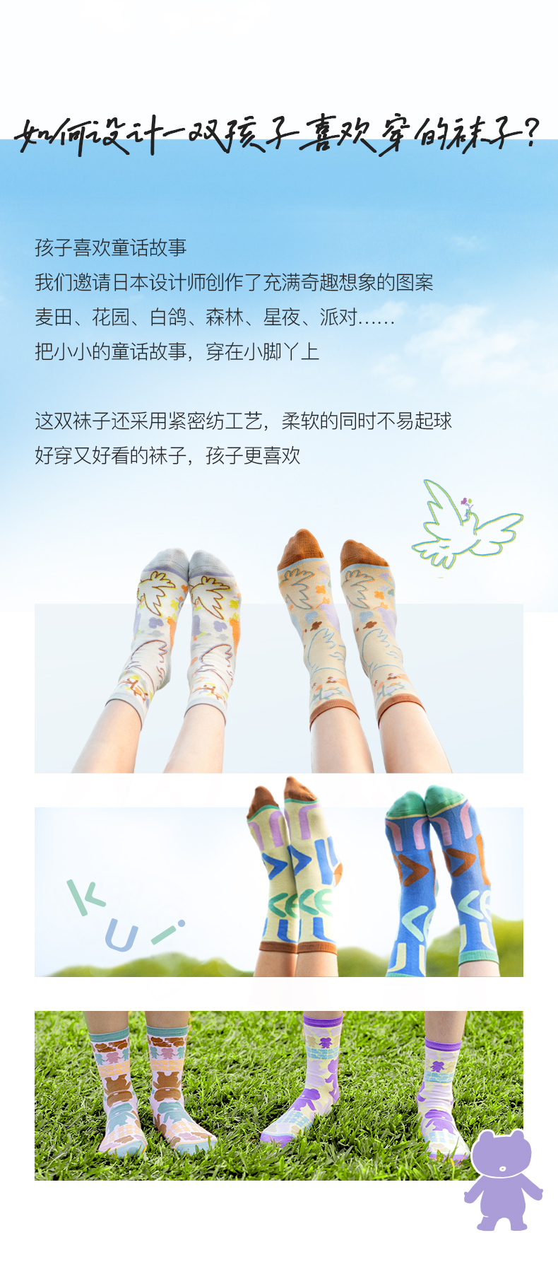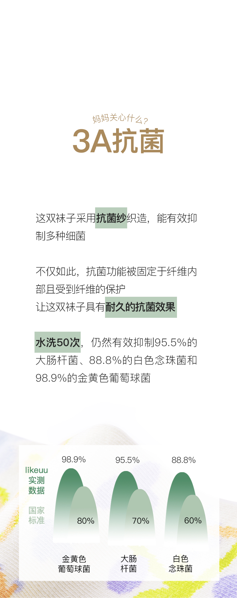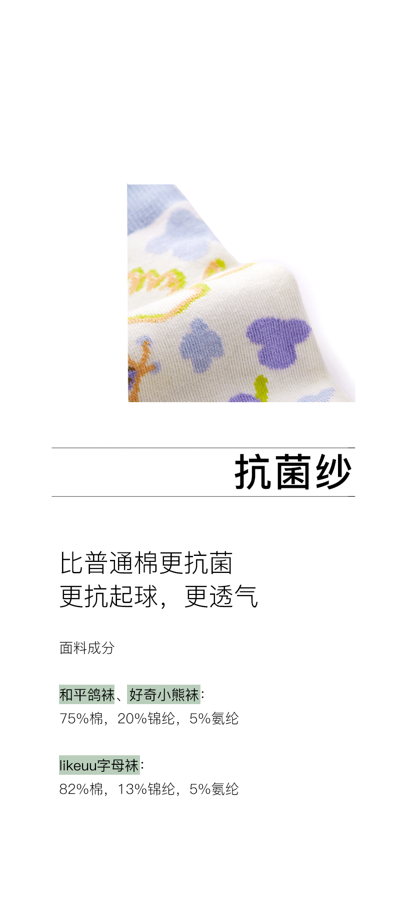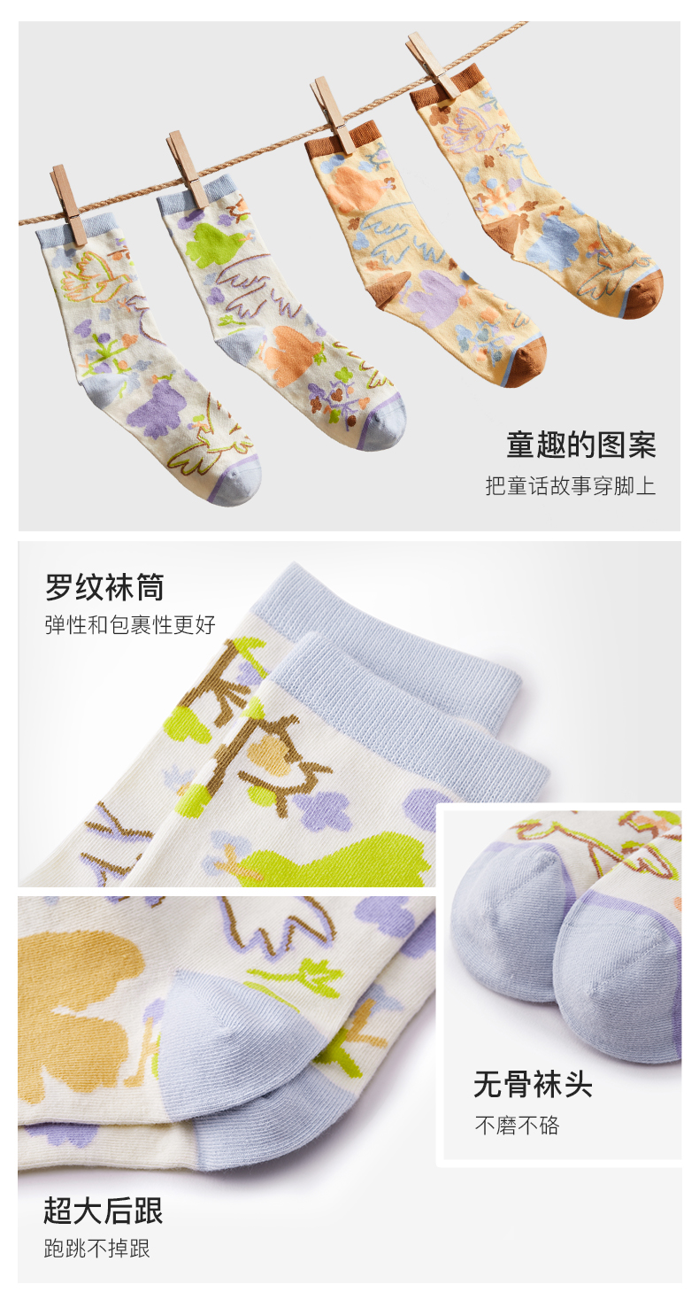 likeuu男女童袜子透气不易起球中筒袜两双装ZY