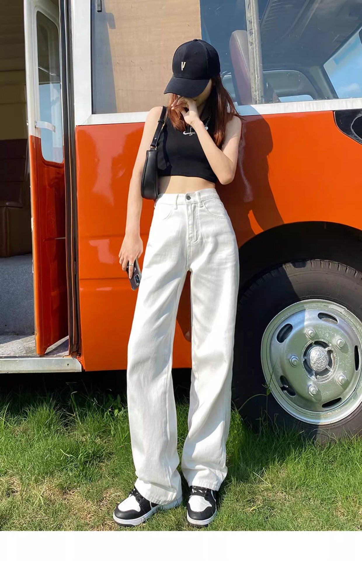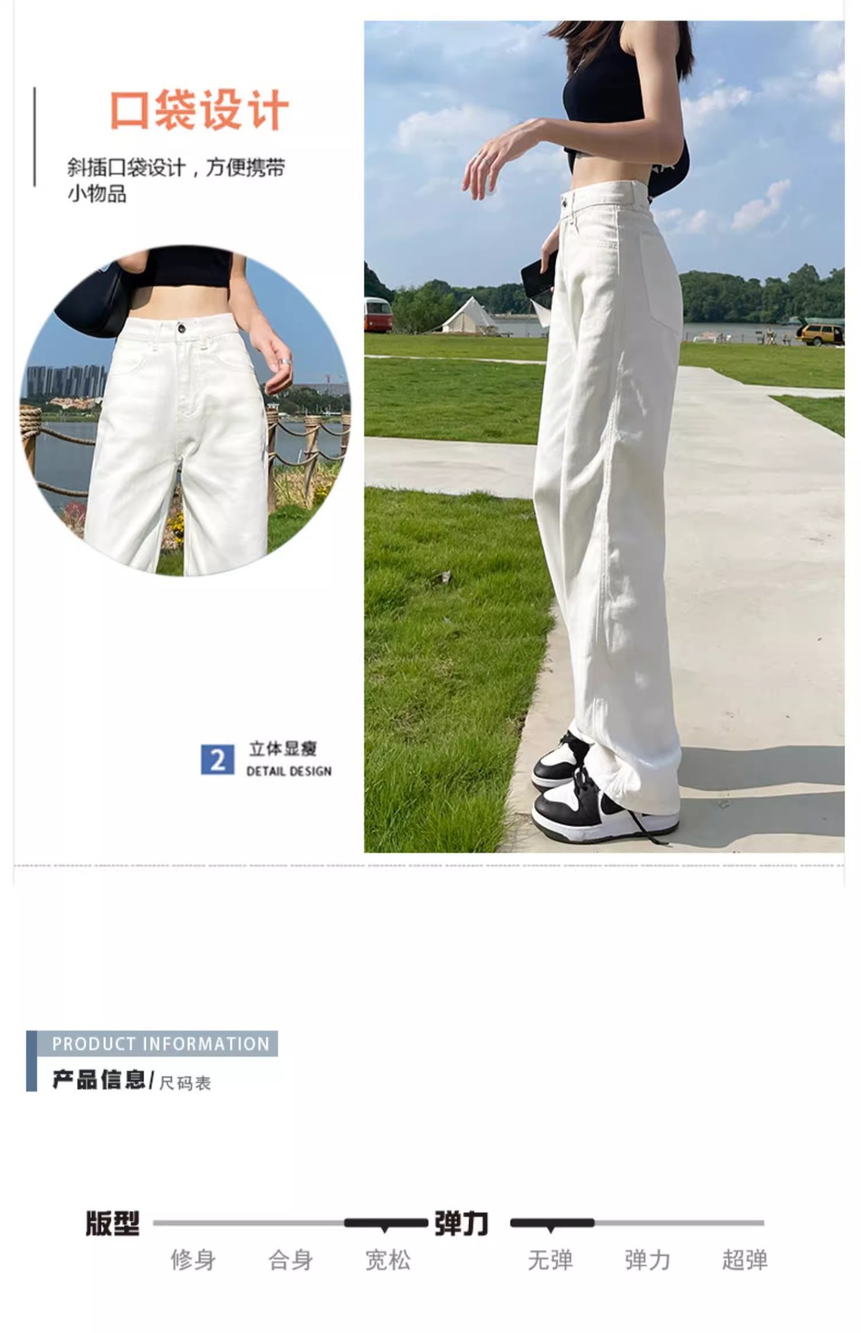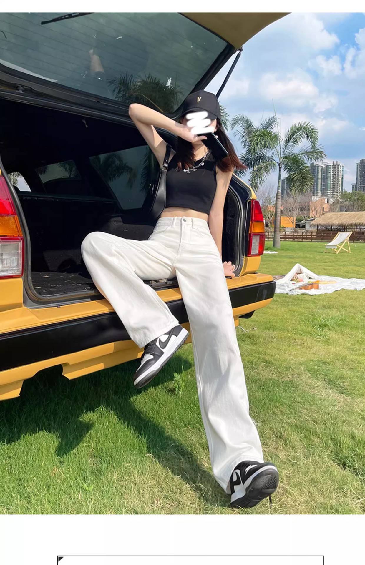 春夏新款【白色高腰窄版阔腿牛仔裤】显瘦直筒垂感拖地长裤子