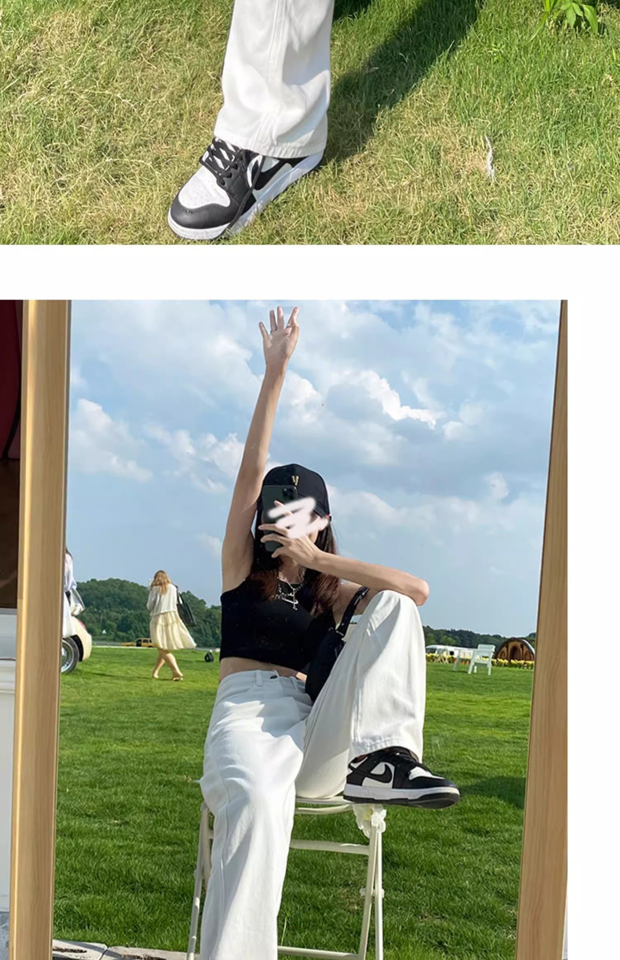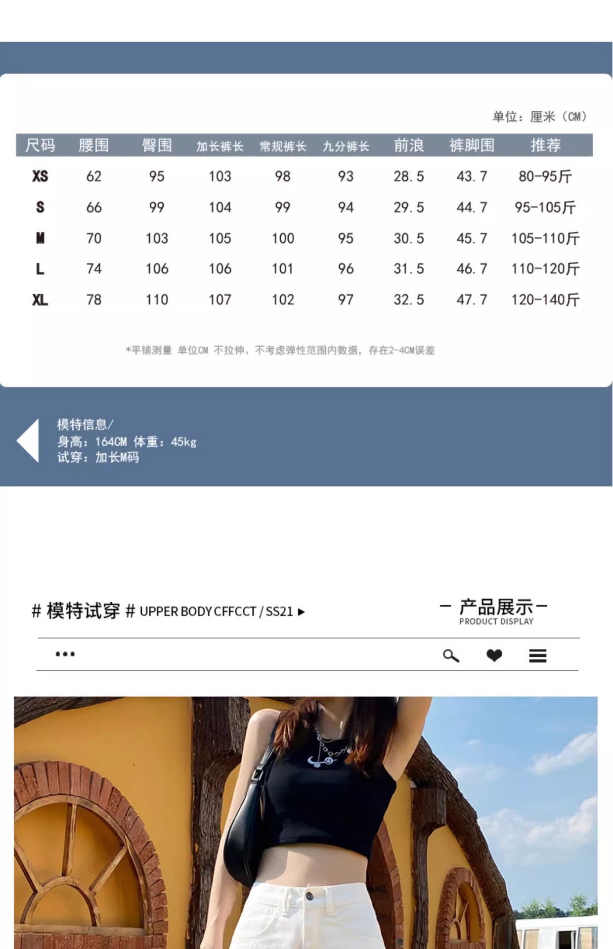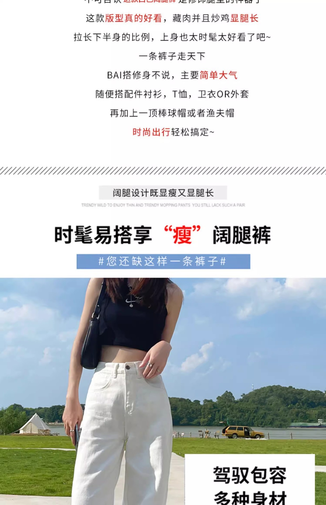 春夏新款【白色高腰窄版阔腿牛仔裤】显瘦直筒垂感拖地长裤子