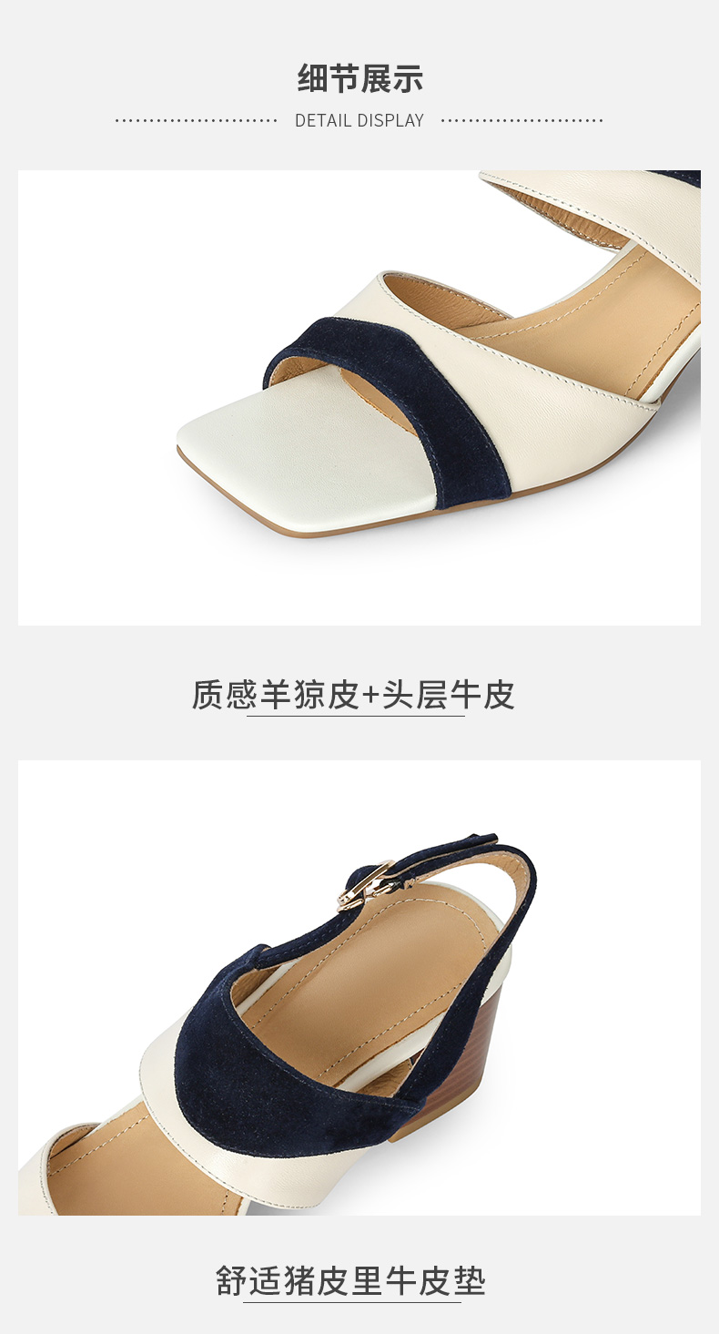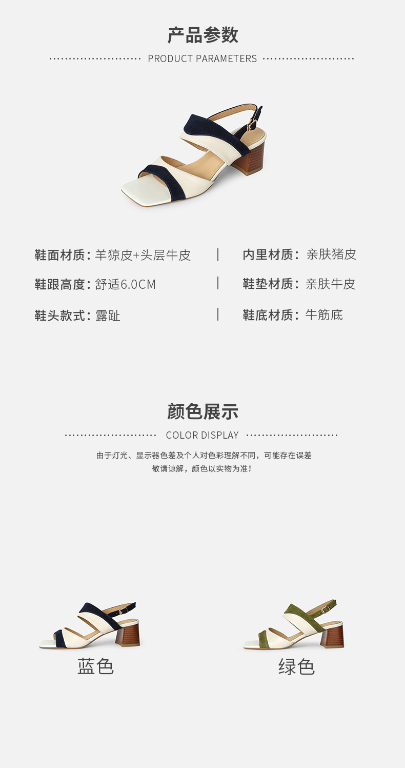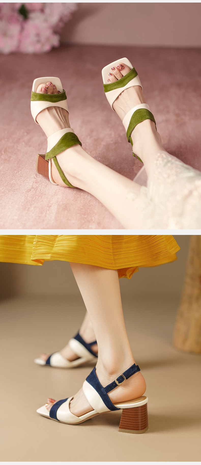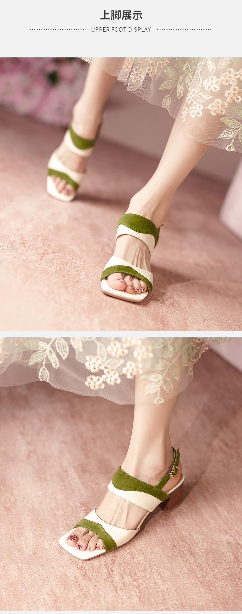 绝美优雅,法式拼色粗跟露趾凉鞋LCC-C9193