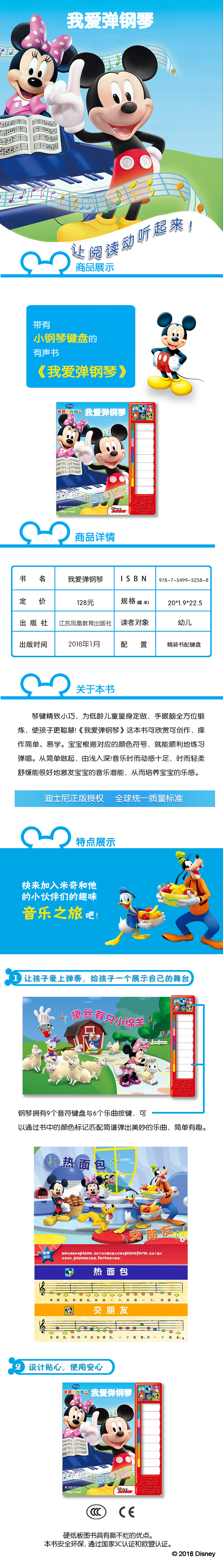 可发声、可弹奏、有乐谱的钢琴小书。选取经典的迪士尼公主歌曲,可按乐谱演奏,可按发声毽听曲子,是方便携带、适合孩子操作的可弹钢琴书。