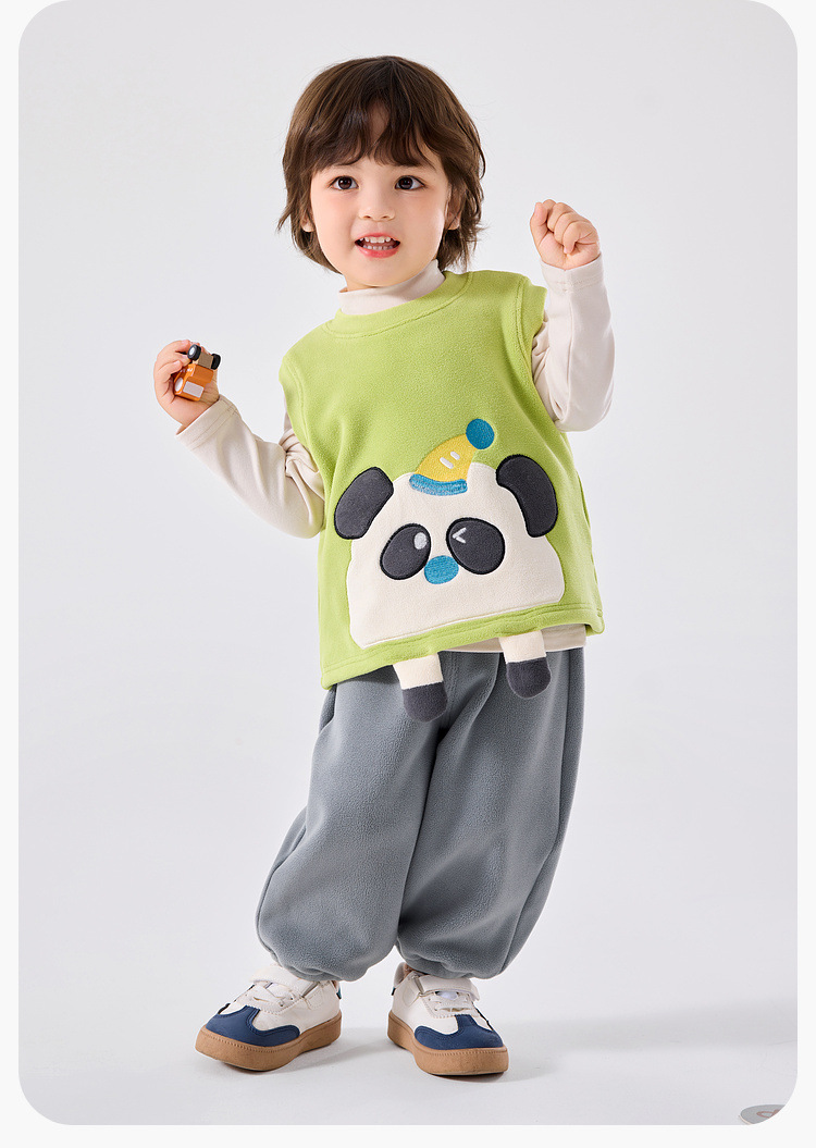 嘟嘟家宝宝套装秋款男童三件套卡通儿童马甲裤子女童衣服秋季新款