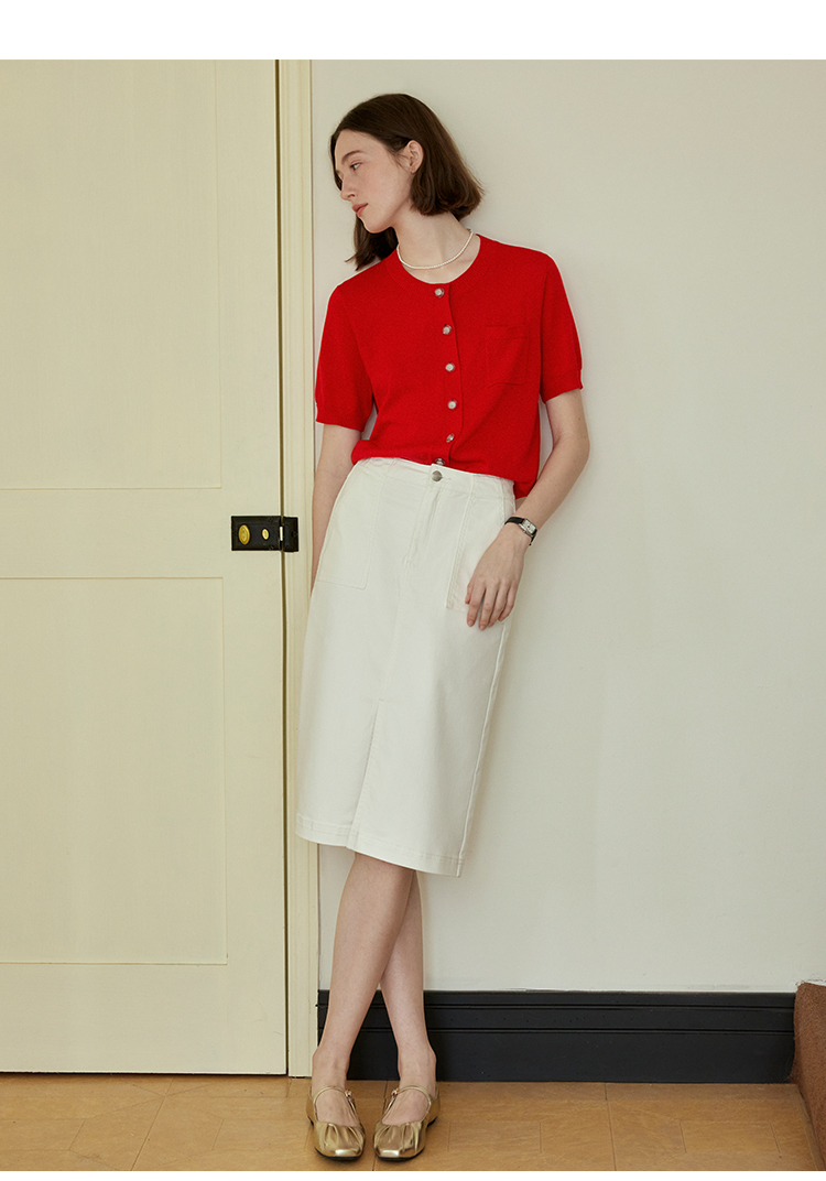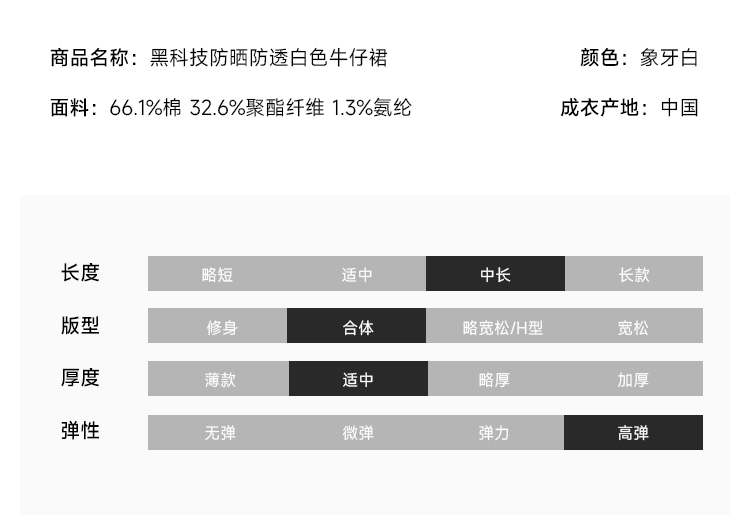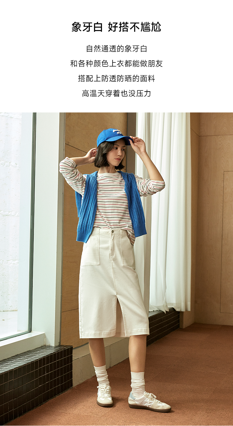 防晒防透白色牛仔裙FCE2JEN011