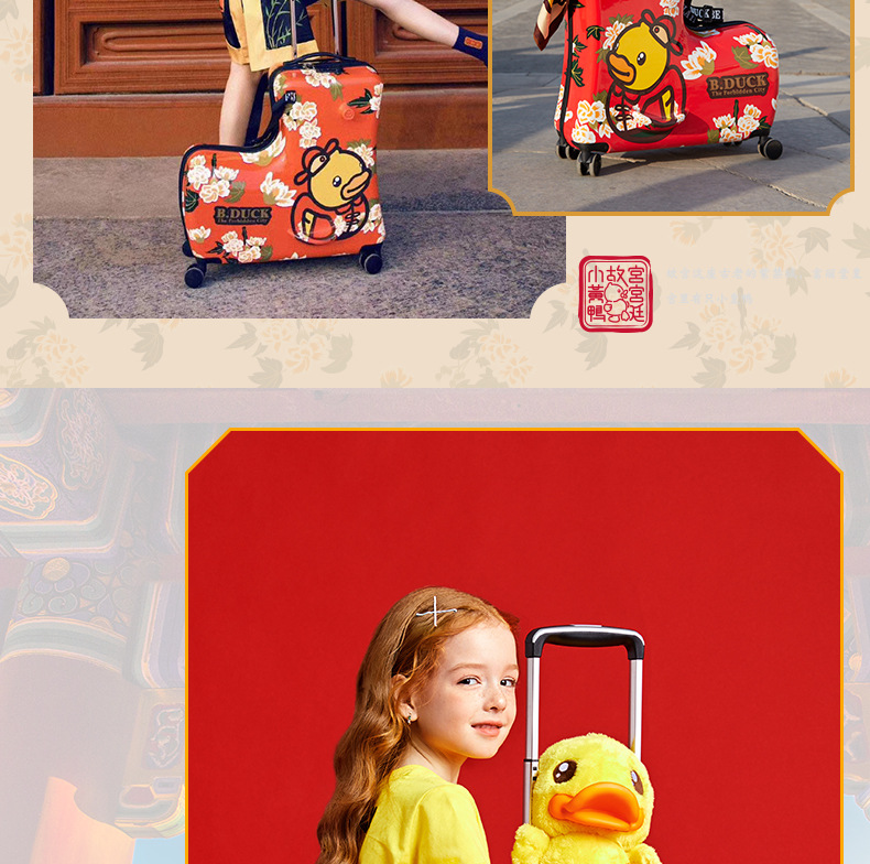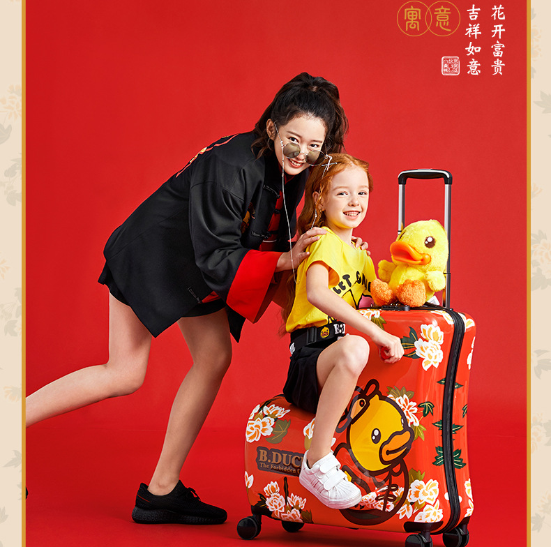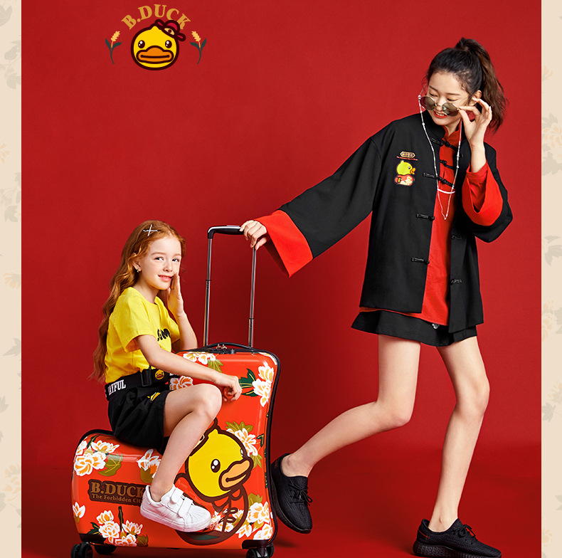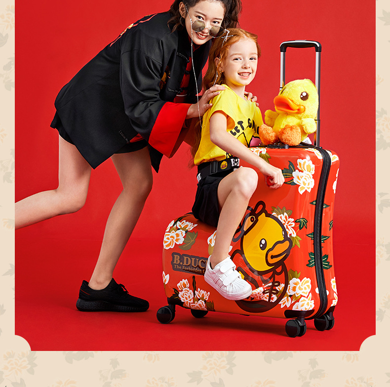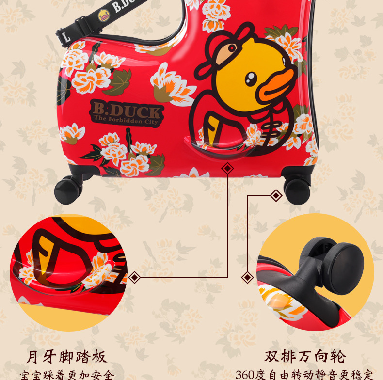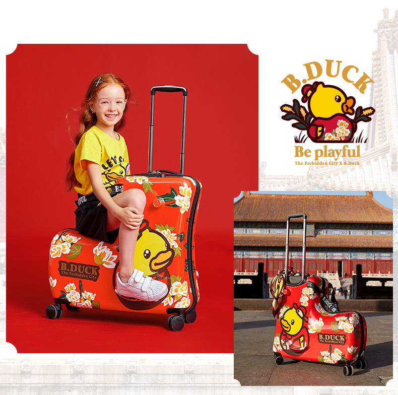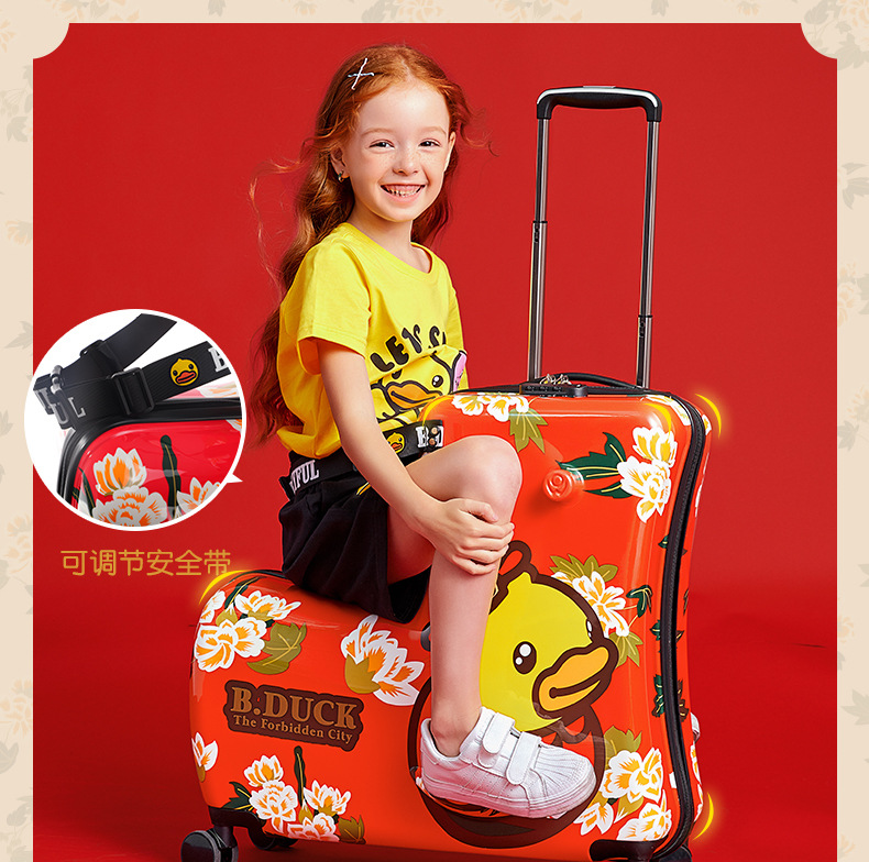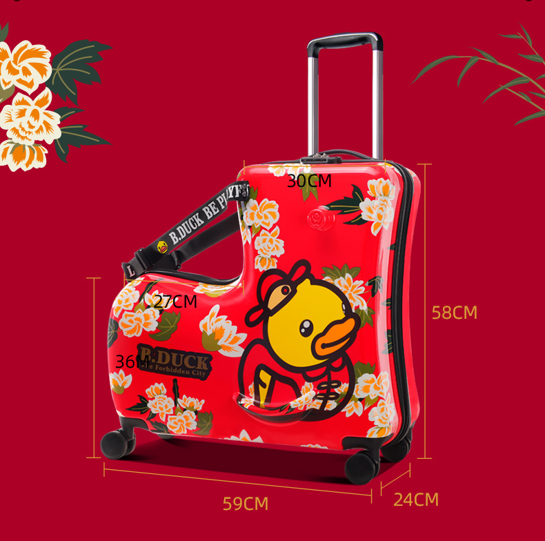 宫廷文化小黄鸭联名可坐骑儿童行李箱万向轮拉杆箱旅行箱