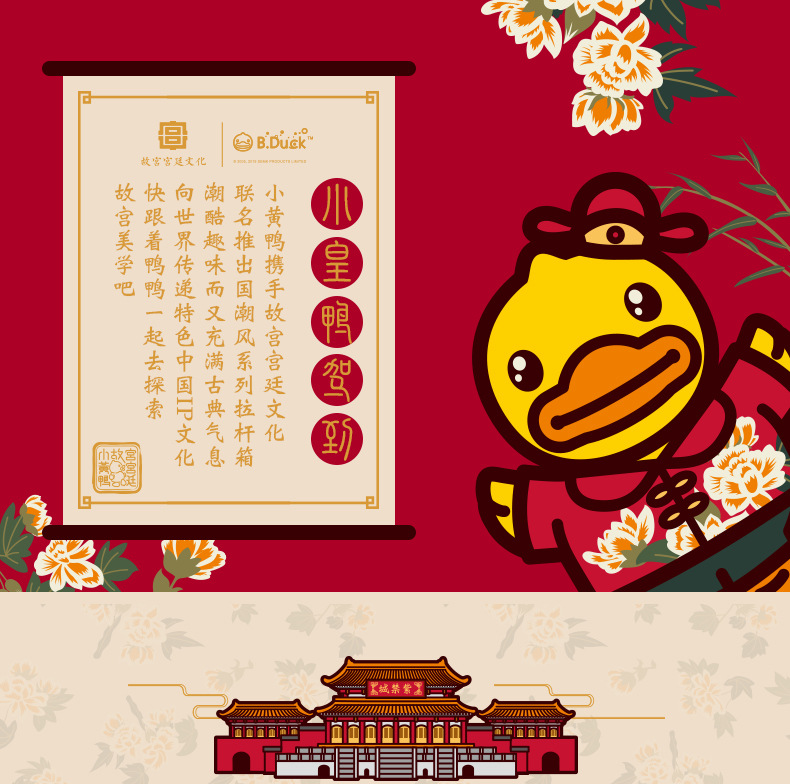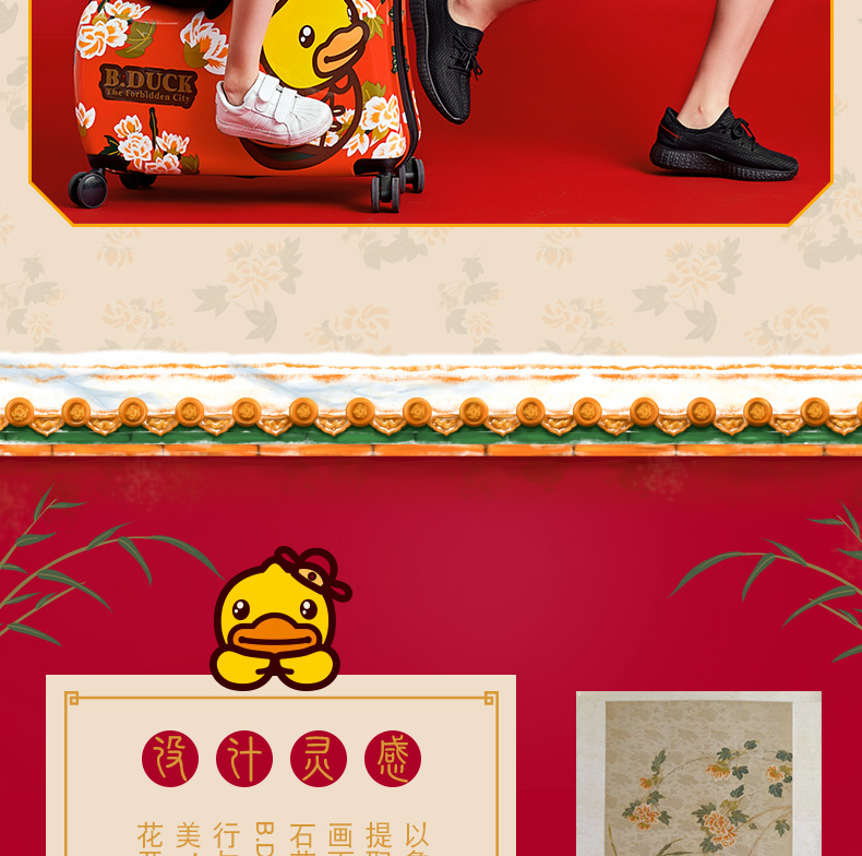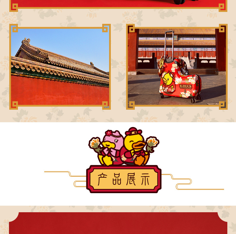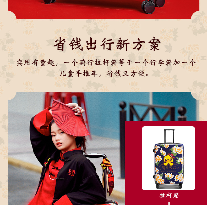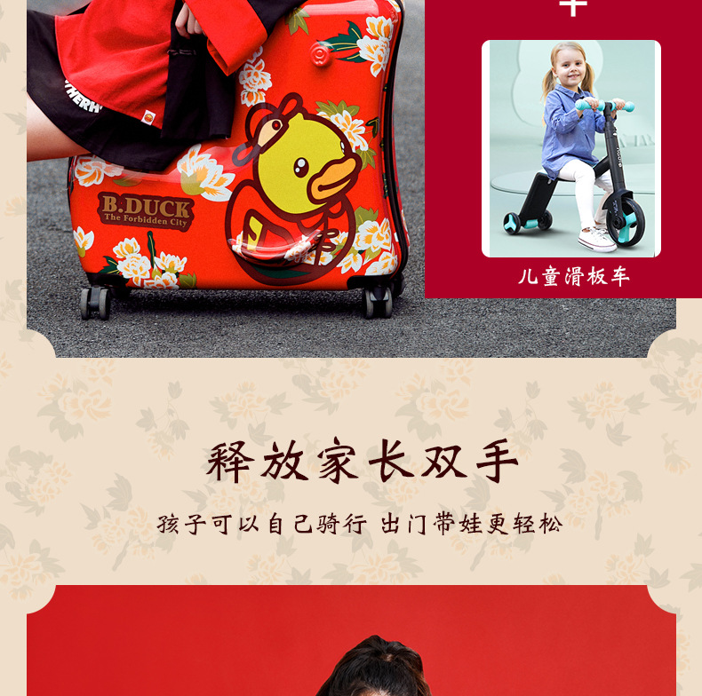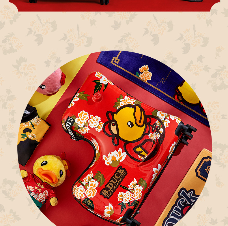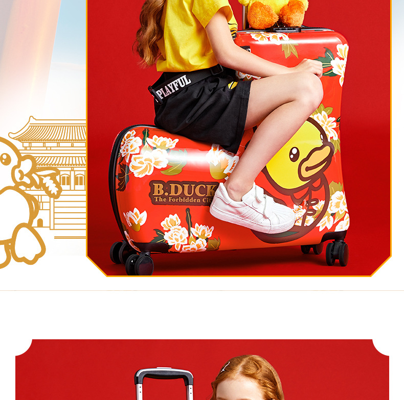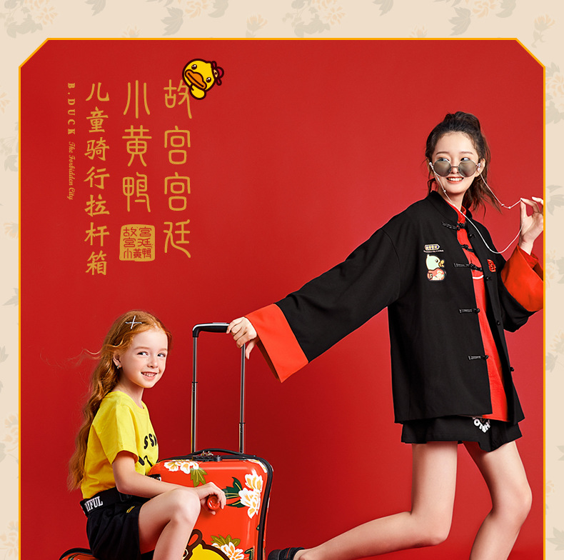 宫廷文化小黄鸭联名可坐骑儿童行李箱万向轮拉杆箱旅行箱