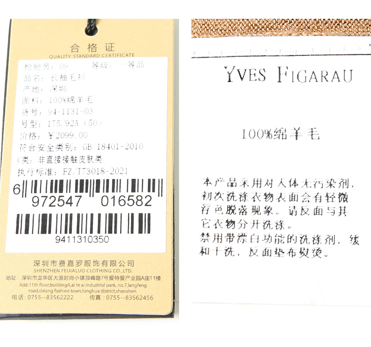 YvesFigarau伊夫·费嘉罗秋冬新款100%绵羊毛休闲毛衣941131