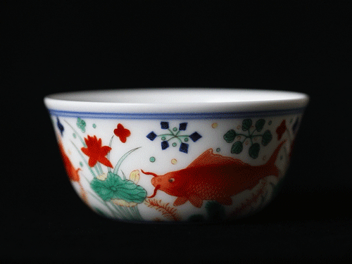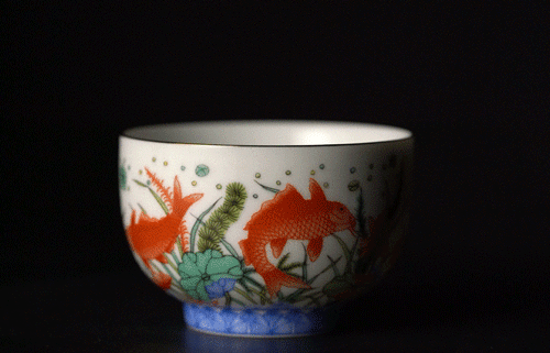 阳士琦大师,也同样以这鱼藻纹为灵感来源,亲自设计、监制出你眼前的青花五彩鱼藻纹缸杯。
