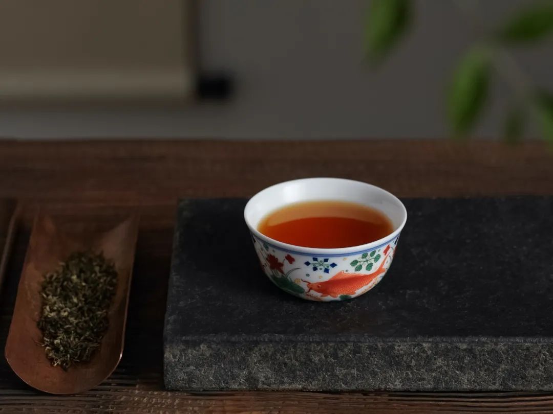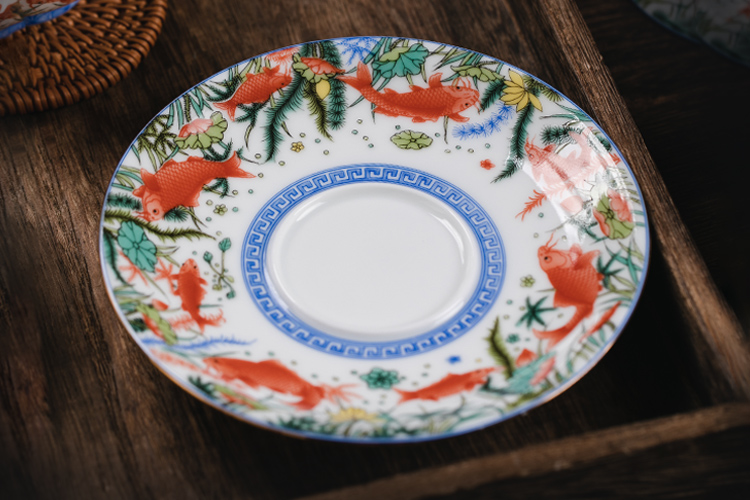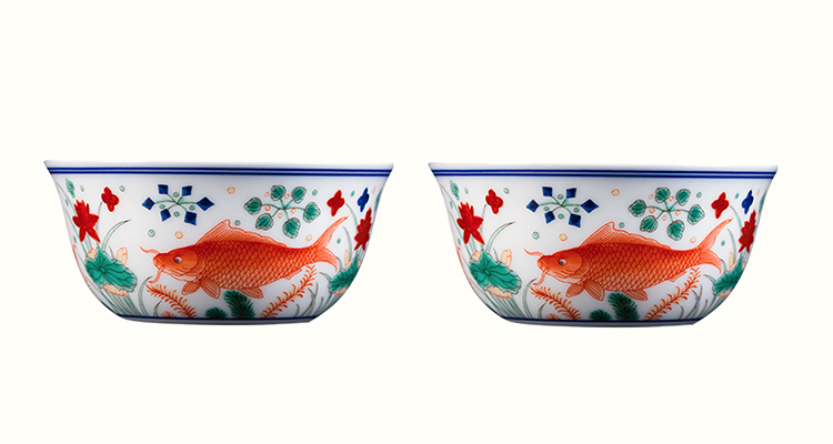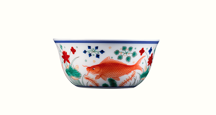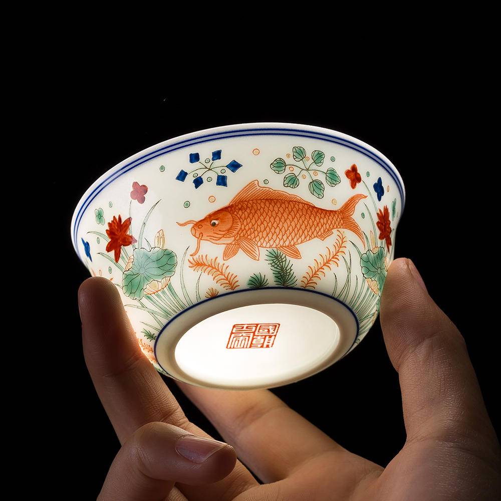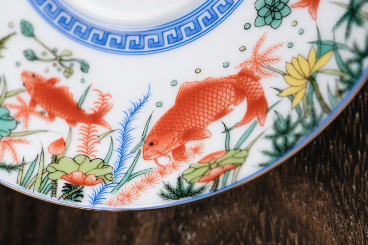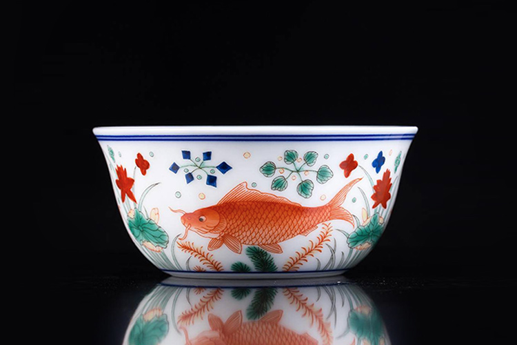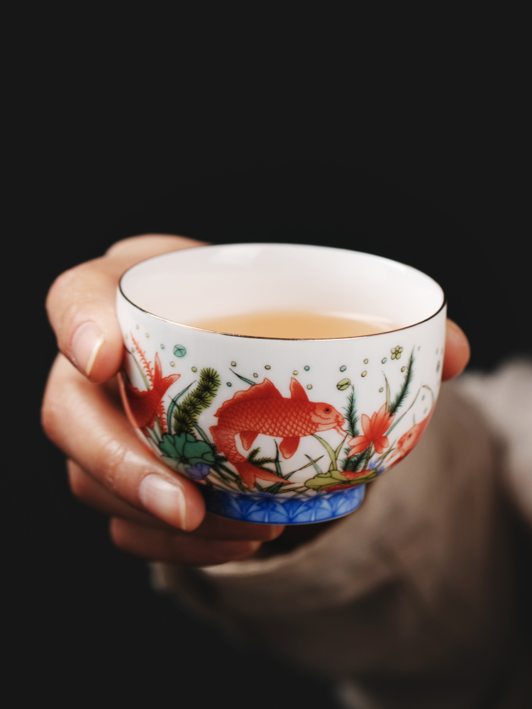 它以明代皇室御用瓷器——成化鸡缸杯为杯型,并绘以鱼藻纹,集两大经典集于一身,风雅无比。