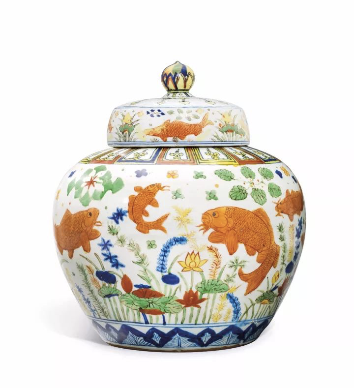 这一年,收藏家曹兴诚,竟花了4404万港元,在苏富比拍下了一个明嘉靖五彩鱼藻纹盖罐,创下当时至贵瓷器身价。