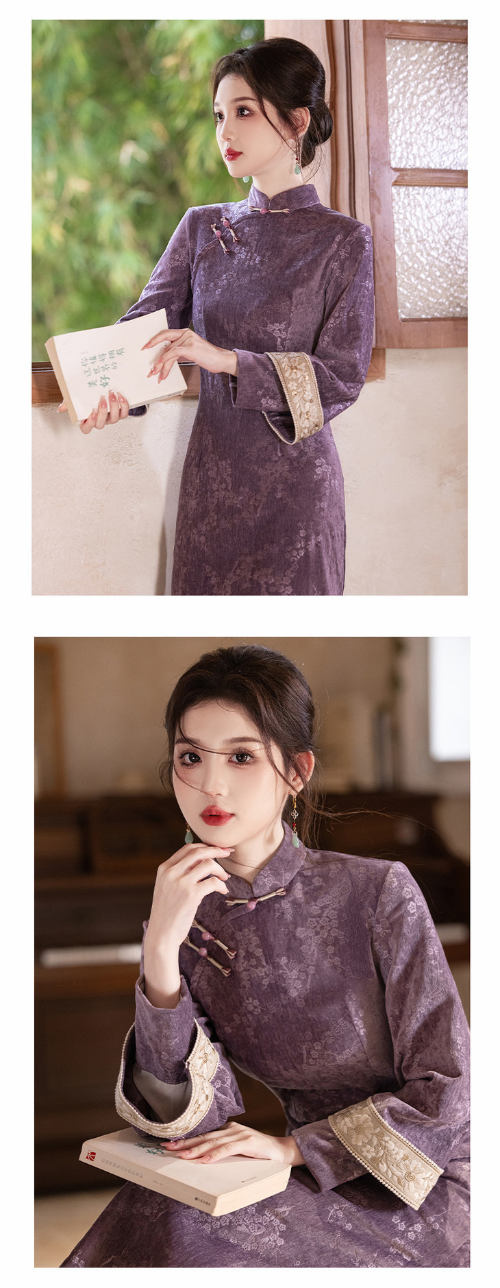 紫色素雅淑女范新中式改良倒大袖旗袍YG2475