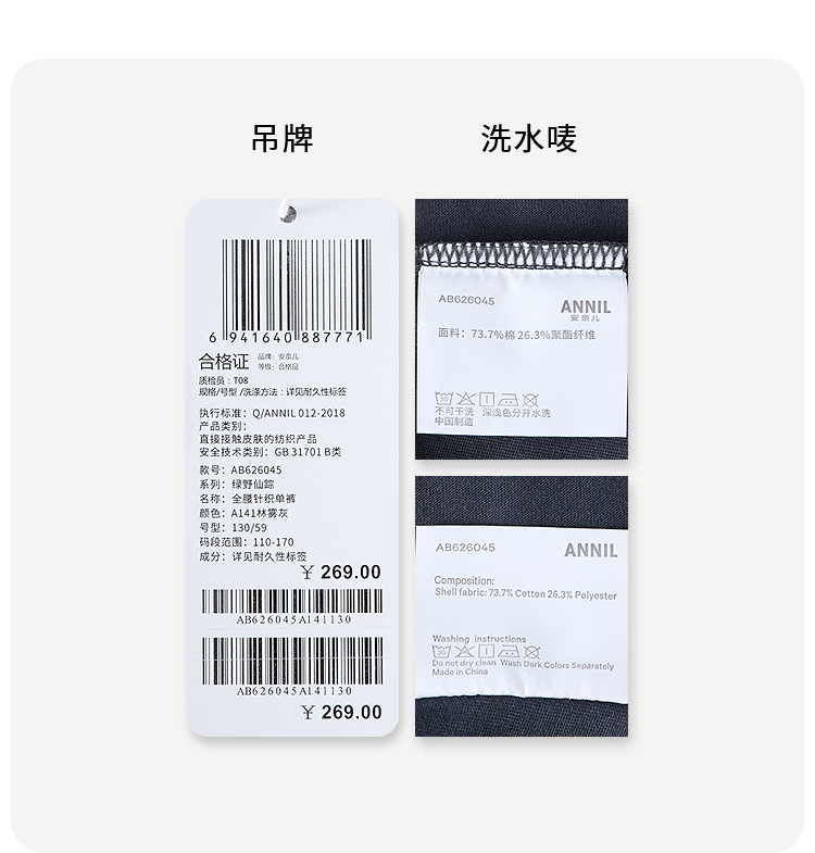 【实体店同款】男童全腰针织单裤夏季新款安奈儿童装AB626045