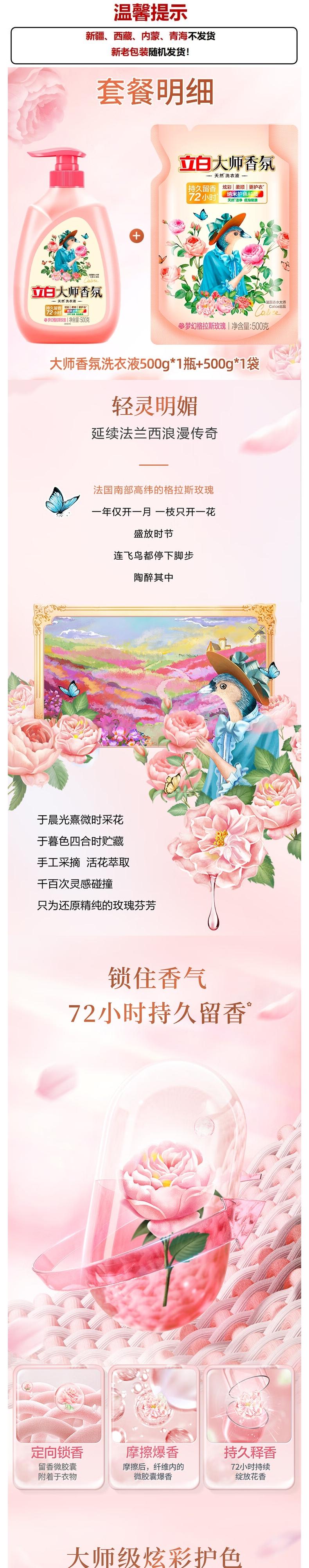 立白 大师香氛玫瑰洗衣液500g*1瓶+500g*1袋 BODSM512J