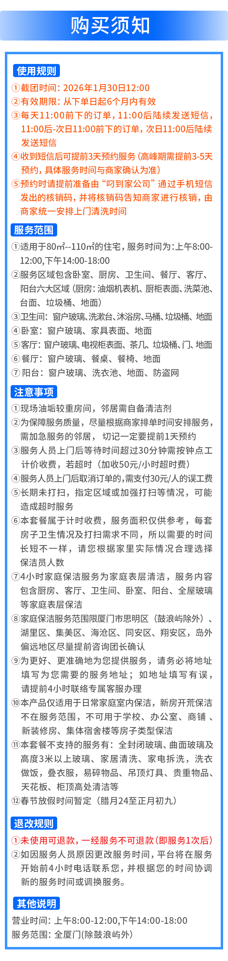 「洁卫巧匠」4小时80㎡-120㎡家庭保洁6次卡/1份(年底大扫除不加价)【叼生活】